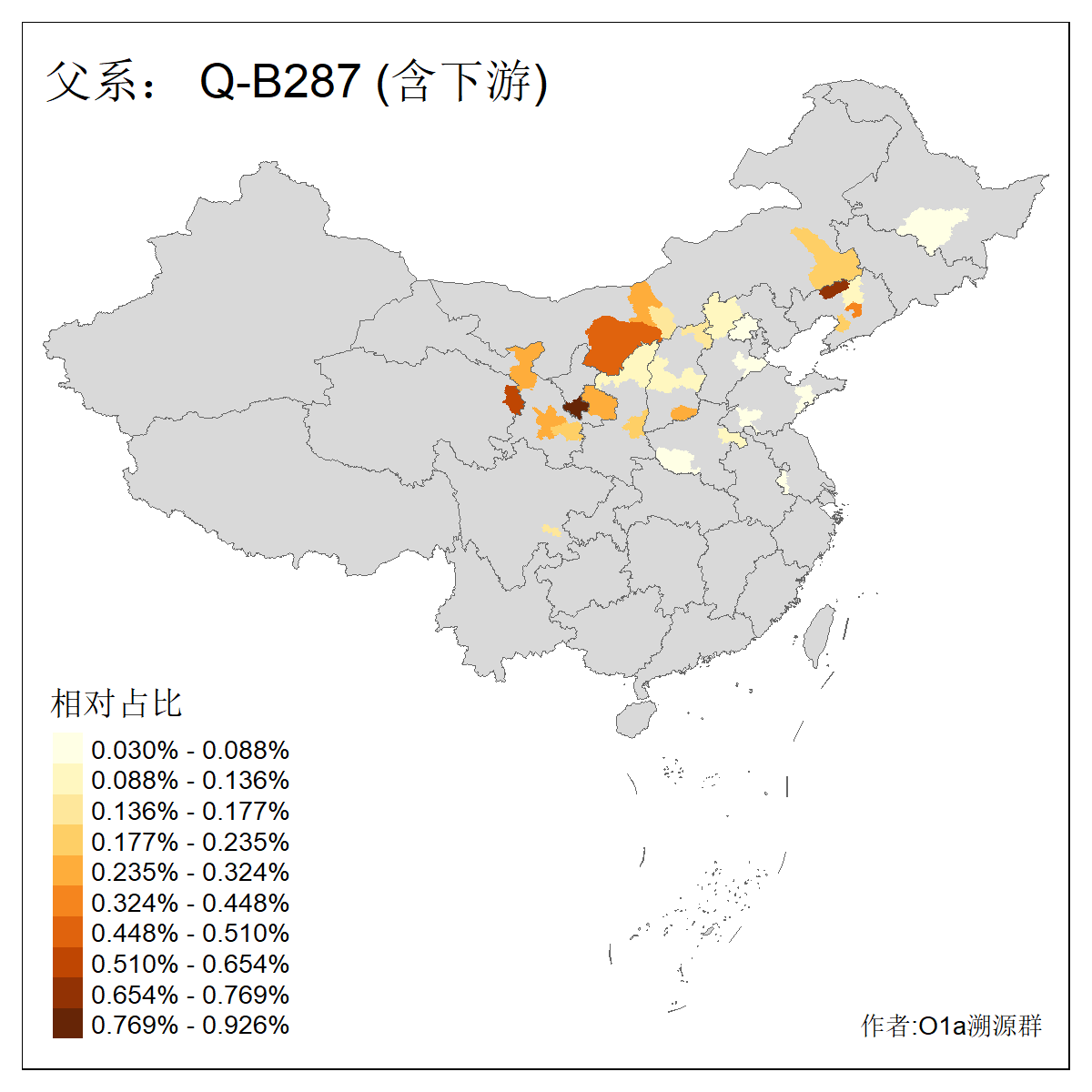 | Q_Q-L472_Q-M346_Q-L53_Q-L54_Q-L330_Q-B287 | 4100 | 0.057% | 38人(含下游) 刘:5 张:4 王:3 周:2 田:2 白:2 肖:2 贾:2 关:1 尹:1 崔:1 时:1 景:1 李:1 ![]() | 19人(不含下游) 张:2 白:2 肖:2 贾:2 关:1 周:1 尹:1 李:1 柴:1 甘:1 田:1 窦:1 邢:1 郑:1 ![]() |