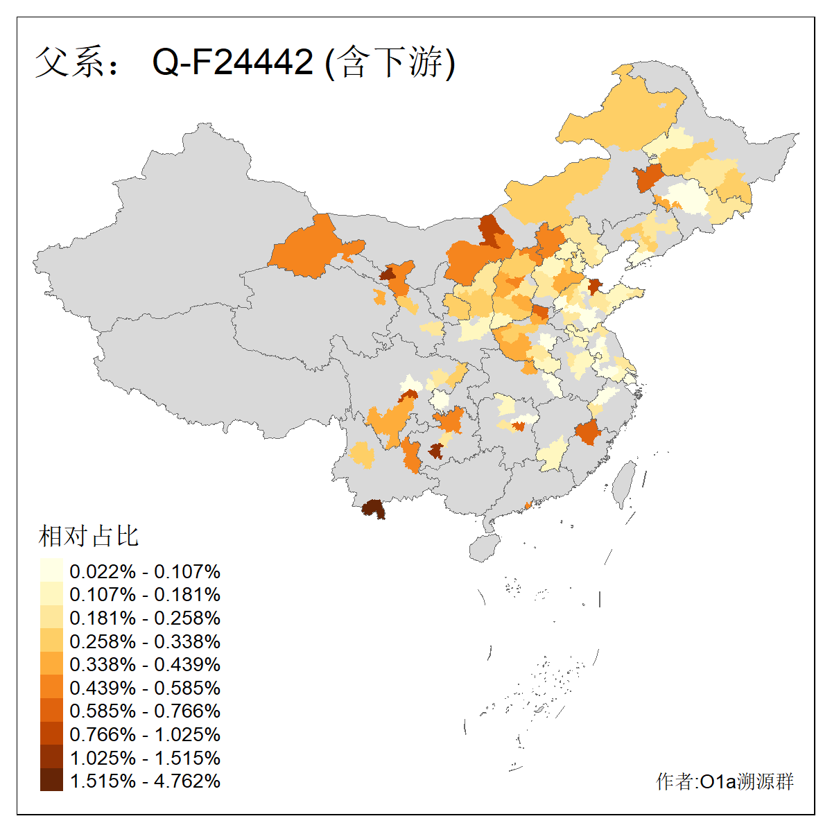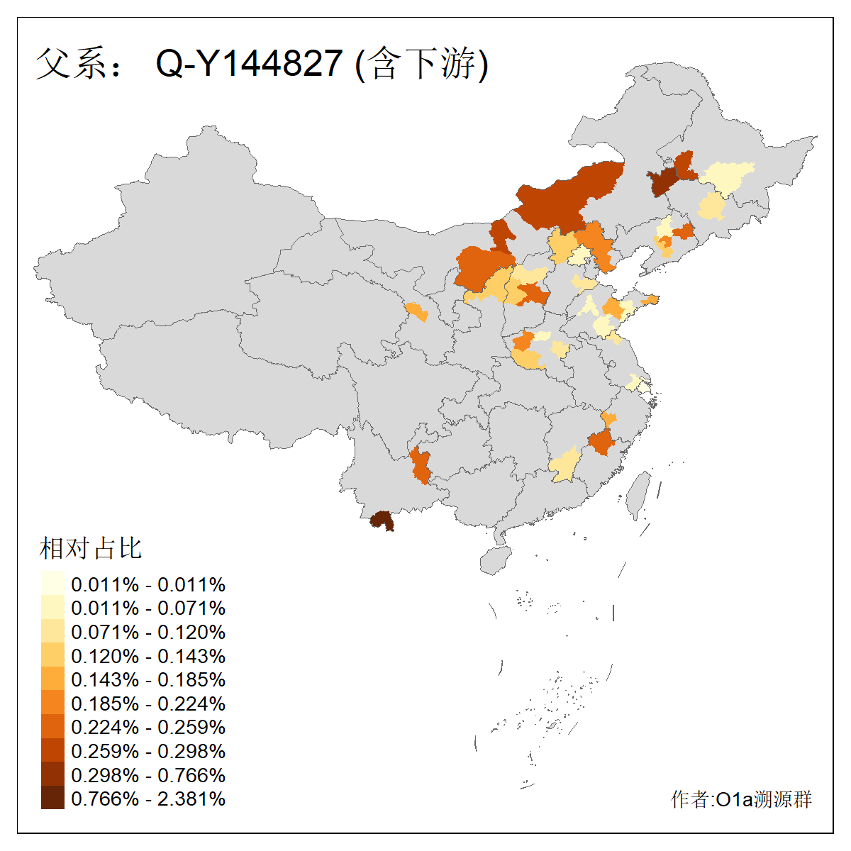 | Q_Q-L472_Q-F1096_Q-F746_Q-M120_Q-Y630_Q-Z19154_Q-F1626_Q-Y560_Q-Y542_Q-F4528_Q-Y565_Q-F4777_Q-F4759_Q-Y559_Q-Y17430_Q-Y557_Q-MF176330_Q-Y562 | 2960 | 0.133% | 244人(含下游) 张:34 李:14 王:11 陈:11 刘:8 孙:8 居:8 周:7 龚:7 杨:6 许:5 邢:5 兴:4 吴:4 ![]() | 87人(不含下游) 张:16 李:7 周:4 孙:4 王:4 陈:4 牛:3 龚:3 丁:2 刘:2 吴:2 曹:2 秦:2 葛:2 ![]() |