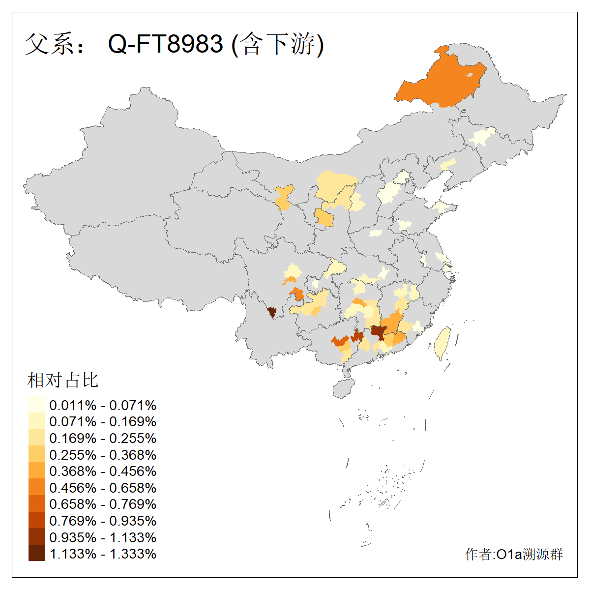 | Q_Q-L472_Q-F1096_Q-F746_Q-M120_Q-Y630_Q-Z19154_Q-FT7001_Q-FT8042 | 4380 | 0.089% | 165人(含下游) 李:20 朱:17 王:14 张:12 于:7 陈:7 杨:6 胡:6 郭:6 丁:4 曾:4 苗:4 钟:4 刘:3 ![]() | 78人(不含下游) 李:12 张:10 王:9 杨:4 郭:4 丁:3 于:3 柳:2 苗:2 赵:2 郑:2 亭:1 冯:1 刘:1 ![]() |