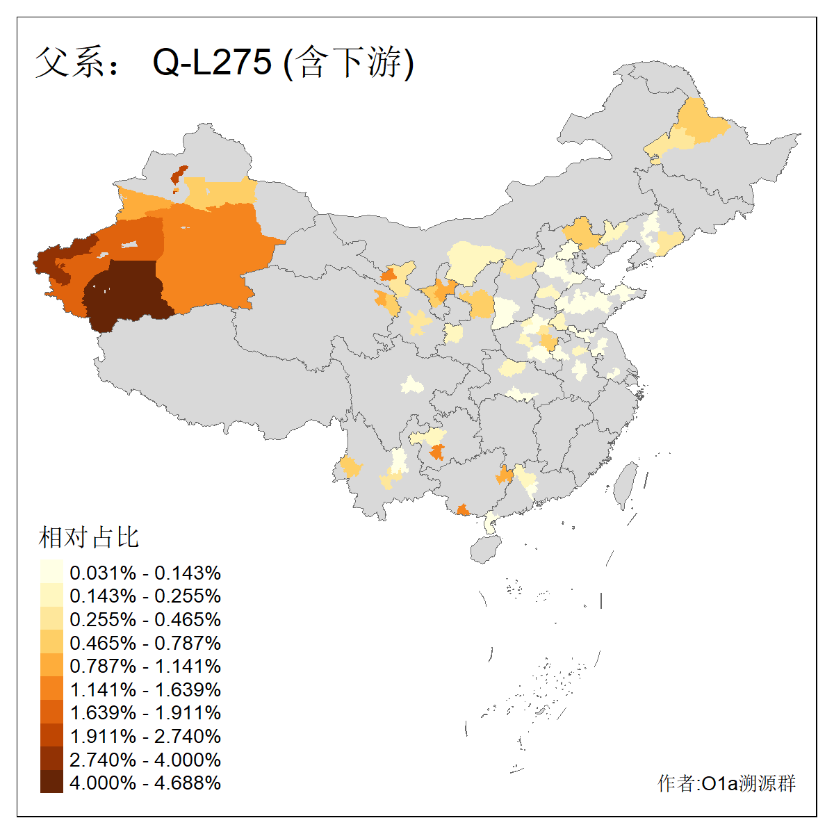| Q_Q-L275 | 15420 | 0.089% | 108人(含下游) 李:13 马:13 杨:5 艾:5 黄:5 张:4 沙:3 石:3 赵:3 高:3 余:2 努:2 康:2 王:2 ![]() | 2人(不含下游) 张:1 艾:1 ![]() |