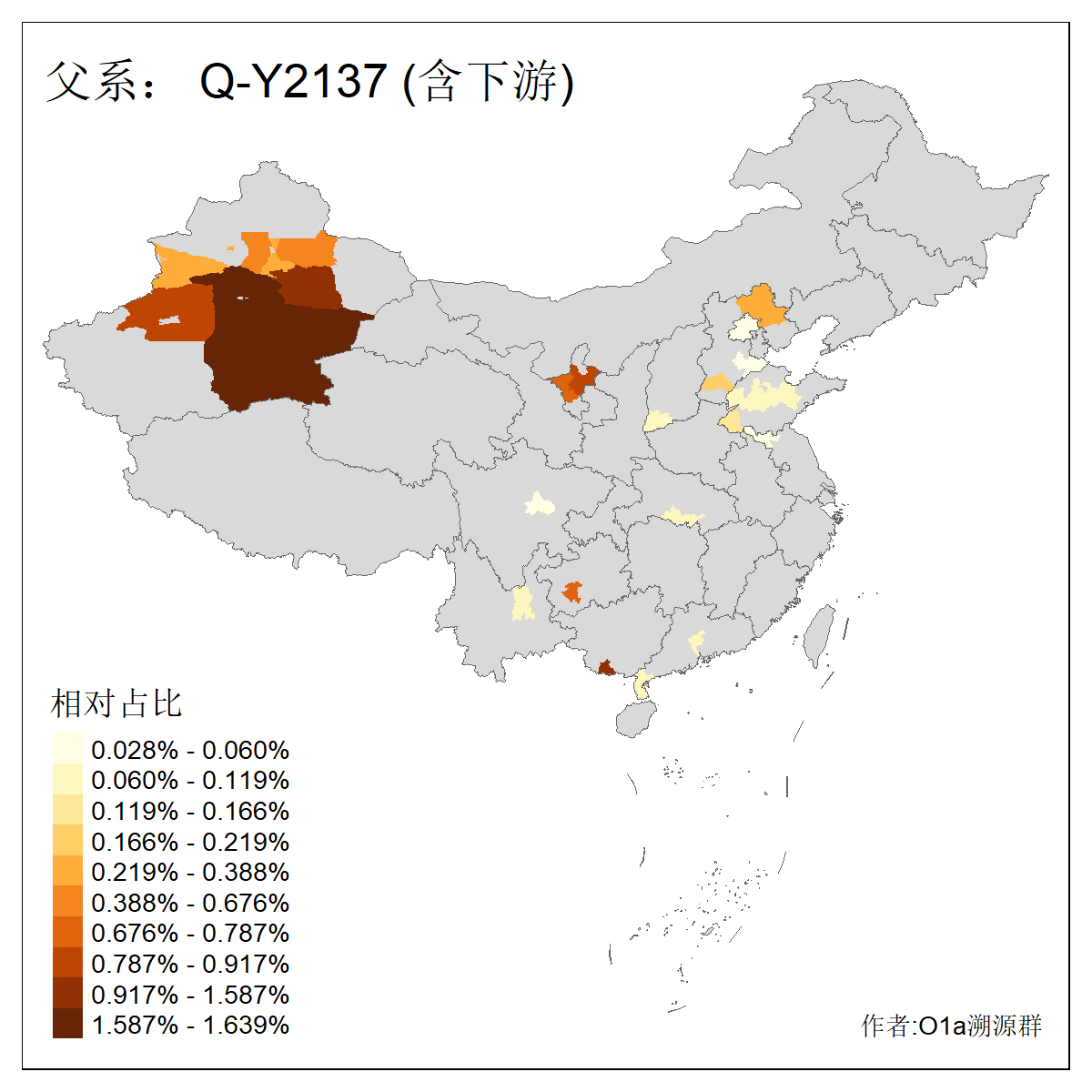 | Q_Q-L472_Q-M346_Q-Y2659_Q-F835 | 16340 | 0.046% | 66人(含下游) 李:10 马:10 王:6 张:4 赵:3 冯:2 刘:2 安:2 杨:2 白:2 买:1 依:1 叶:1 吐:1 ![]() | 32人(不含下游) 李:8 赵:3 张:2 杨:2 王:2 买:1 依:1 冯:1 刘:1 安:1 武:1 白:1 石:1 穆:1 ![]() |
