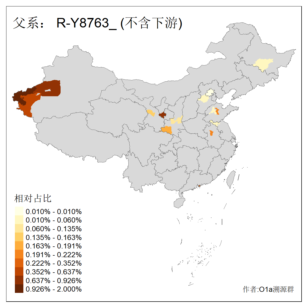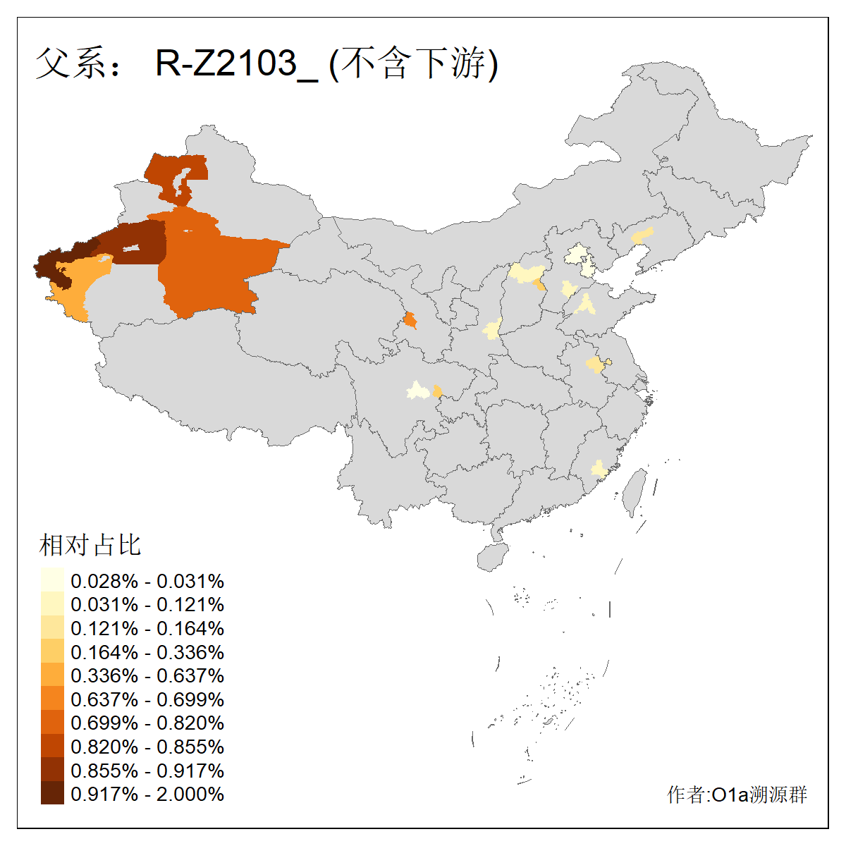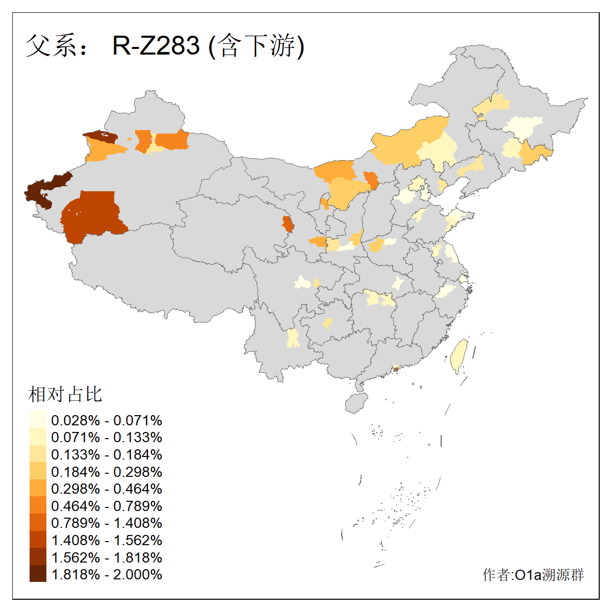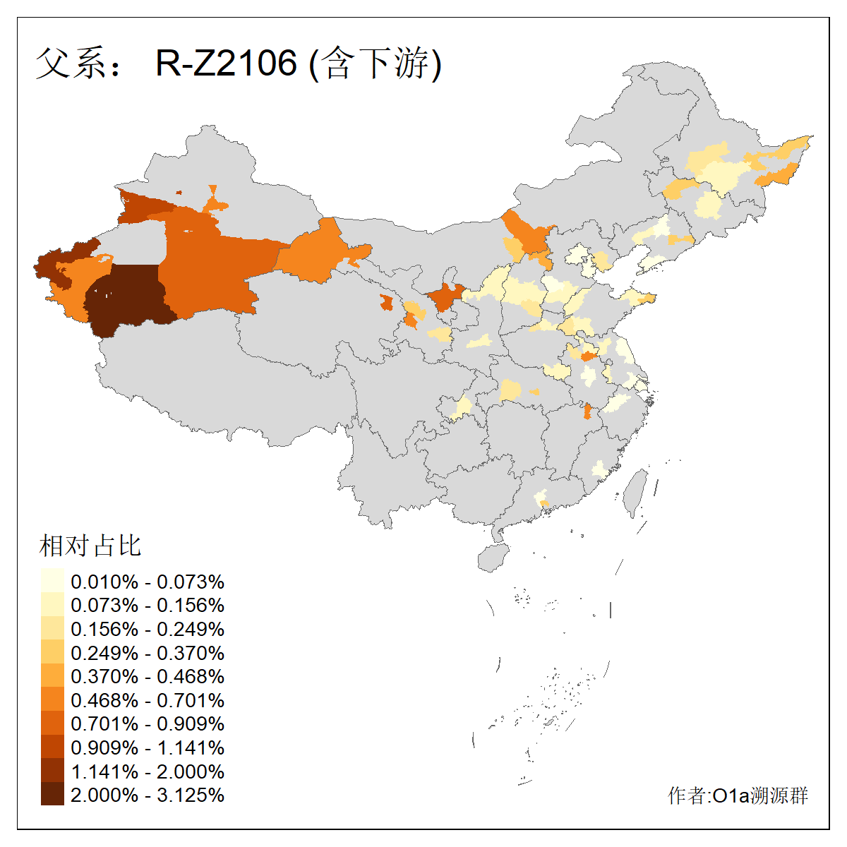 | R_R-Y482_R1_R1a_R-M459_R-M198_R-M417_R-PF6162_R-F992_R-F3105_R-Z2124_R-S4576 | 4160 | 0.100% | 212人(含下游) 王:18 张:17 李:12 卓:10 马:10 刘:9 白:9 陈:9 徐:6 胡:6 高:6 杨:5 赵:5 郑:4 ![]() | 36人(不含下游) 王:4 张:3 白:3 雷:3 马:2 克:1 吴:1 察:1 屈:1 康:1 徐:1 施:1 曹:1 李:1 ![]() |