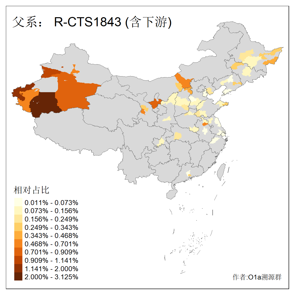 | R_R-Y482_R-M479_R-M124_R-FGC22607_R-P267_R-Y12100 | 10150 | 0.071% | 129人(含下游) 张:20 马:12 王:11 李:5 艾:5 陈:5 杨:4 阿:4 刘:3 康:3 米:3 周:2 地:2 姜:2 ![]() | 24人(不含下游) 王:3 马:3 地:2 阿:2 依:1 冯:1 安:1 尹:1 尼:1 库:1 拜:1 李:1 杨:1 白:1 ![]() |