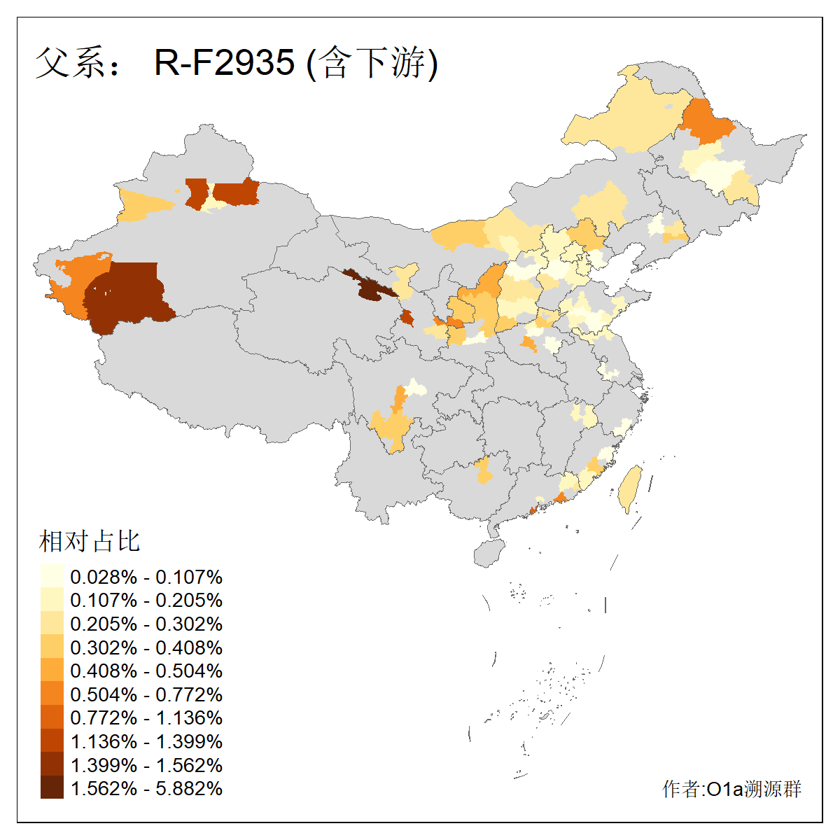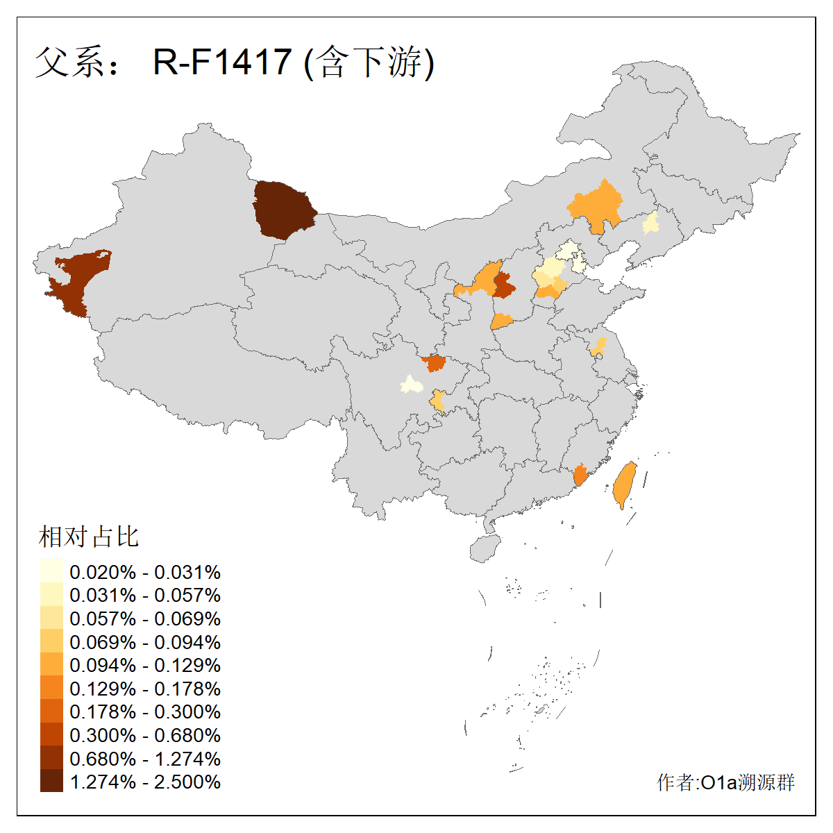 | R_R-Y482_R1_R1a_R-M459_R-M198_R-M417_R-PF6162_R-F992_R-F3105_R-Z2124_R-S4576_R-F1345_R-F2935 | 3330 | 0.069% | 142人(含下游) 张:13 卓:10 李:10 王:10 刘:8 陈:7 白:6 徐:5 胡:5 赵:4 郑:4 马:4 高:4 宋:3 ![]() | 17人(不含下游) 王:3 张:2 陈:2 刘:1 多:1 李:1 毛:1 白:1 艾:1 董:1 邓:1 金:1 高:1 ![]() |