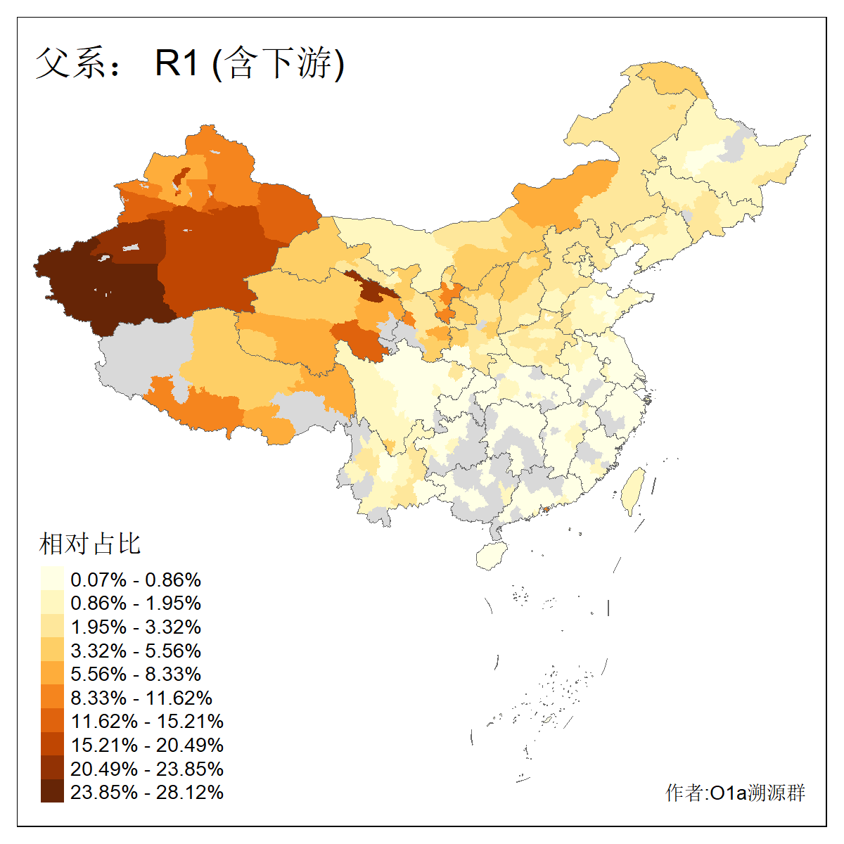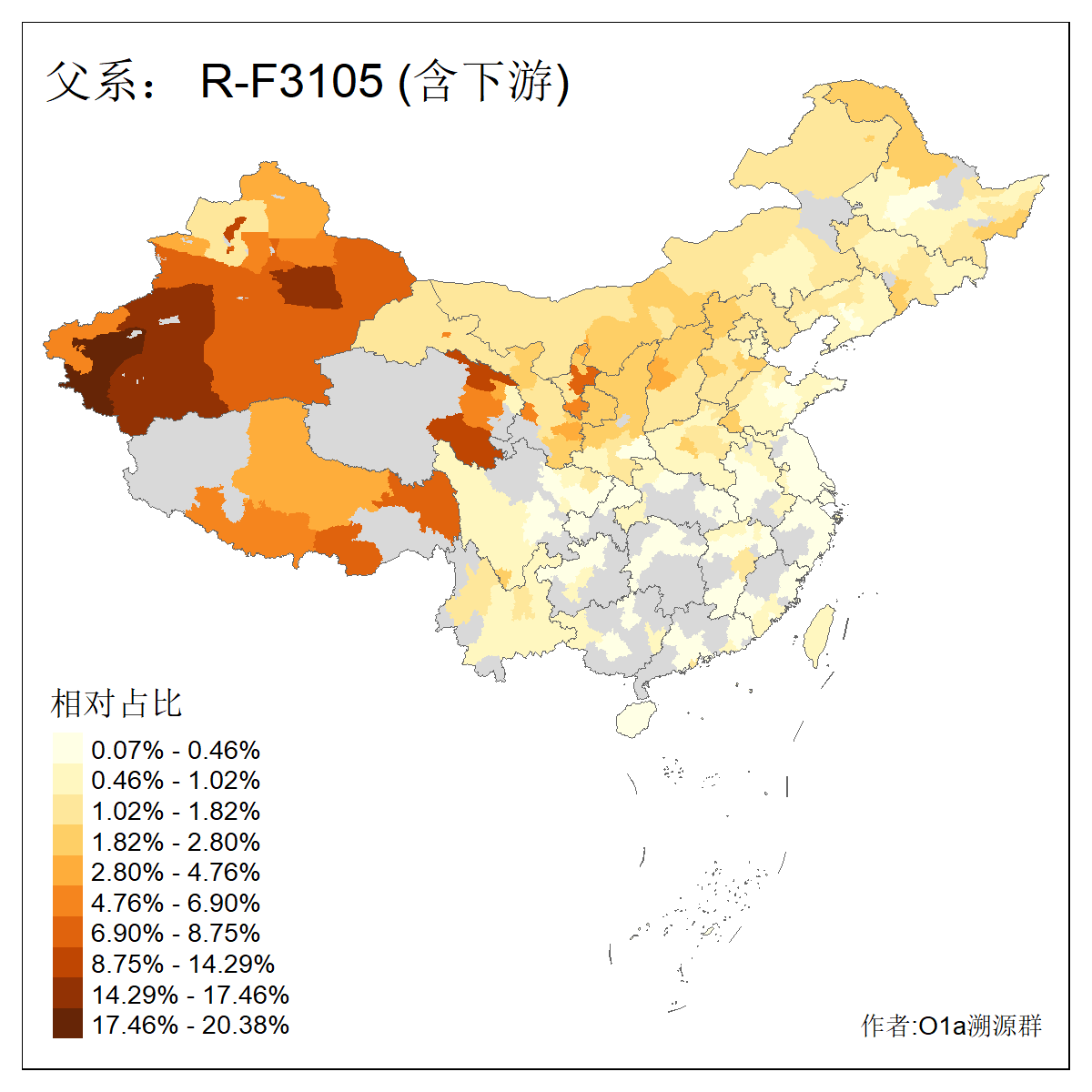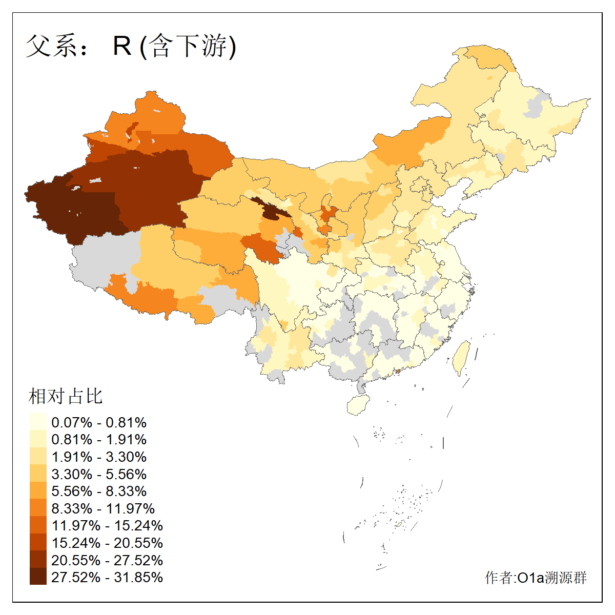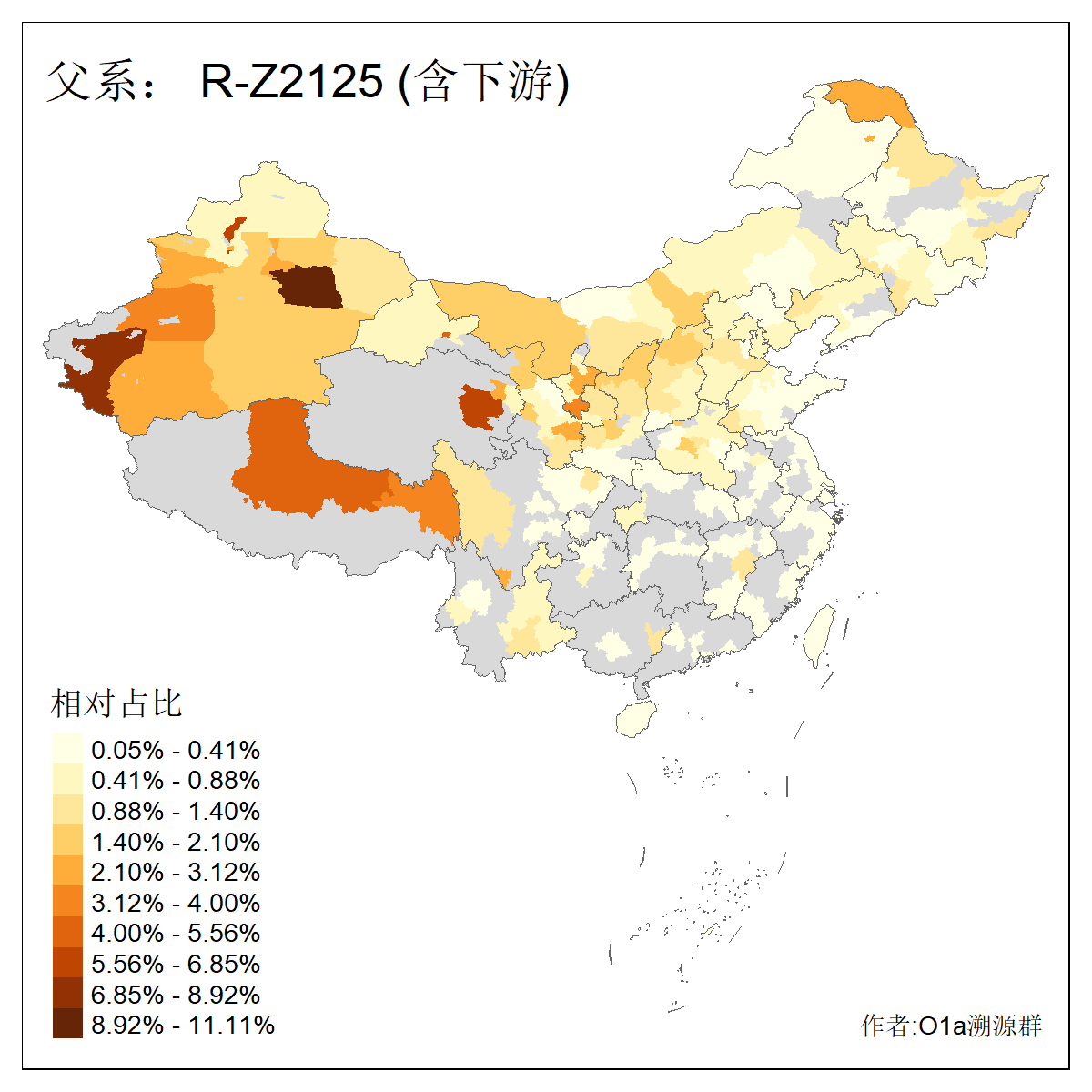 | R_R-Y482_R1_R1a_R-M459_R-M198_R-M417_R-PF6162_R-F992_R-F3105_R-Z2124 | 4370 | 0.788% | 1126人(含下游) 张:85 王:71 李:65 刘:58 马:56 陈:41 赵:36 杨:34 孙:21 高:21 白:19 何:16 郑:14 阿:14 ![]() | 79人(不含下游) 都:7 王:6 何:5 张:5 刘:3 李:3 赵:3 阿:3 马:3 杨:2 陈:2 隋:2 高:2 丁:1 ![]() |