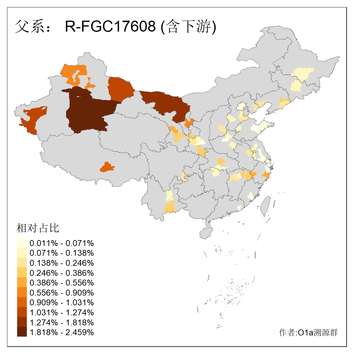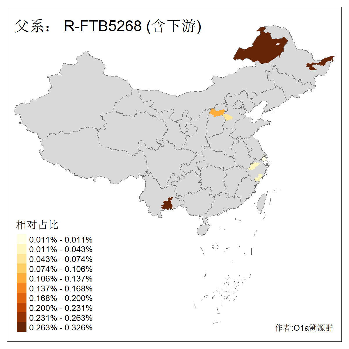 | R_R-Y482_R1_R-M343_R-L754_R-L761_R-L389_R-P297_R-M269_R-L23_R-L51 | 5300 | 0.029% | 140人(含下游) 张:4 杨:3 顾:3 吴:2 安:2 朱:2 李:2 海:2 赵:2 钟:2 马:2 黄:2 一:1 付:1 ![]() | 10人(不含下游) 吴:1 周:1 甘:1 石:1 顾:1 ![]() |
