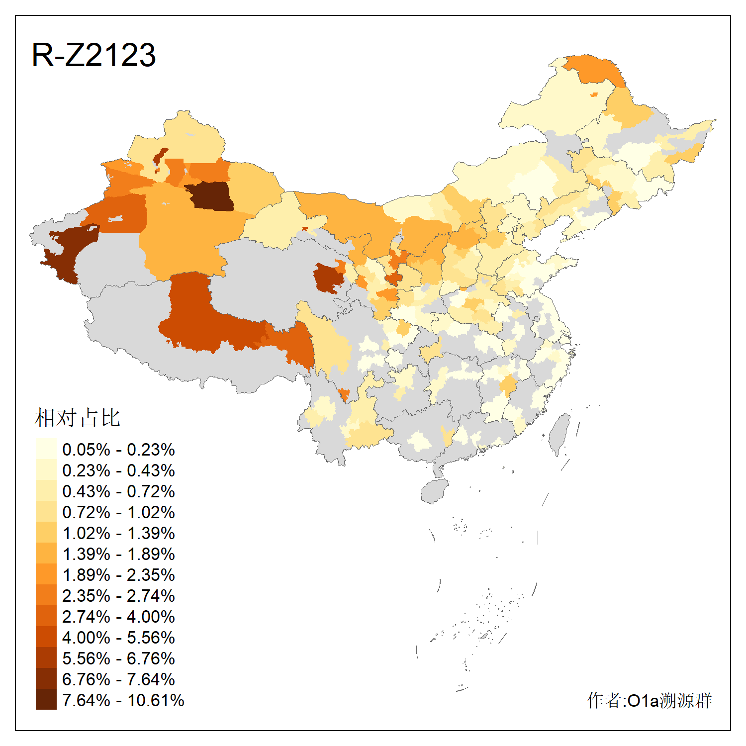 | R_R-Y482_R1_R1a_R-M459_R-M198_R-M417_R-PF6162_R-F992_R-F3105_R-Z2124_R-Z2125_R-Z2123 | 4090 | 0.435% | 767人(含下游)![]() | 594人(不含下游)![]() |