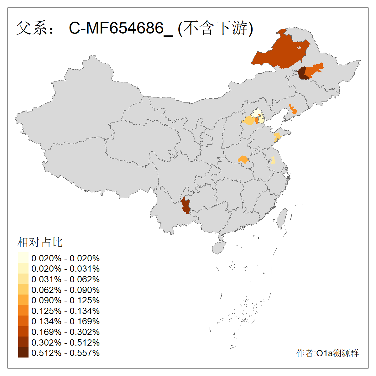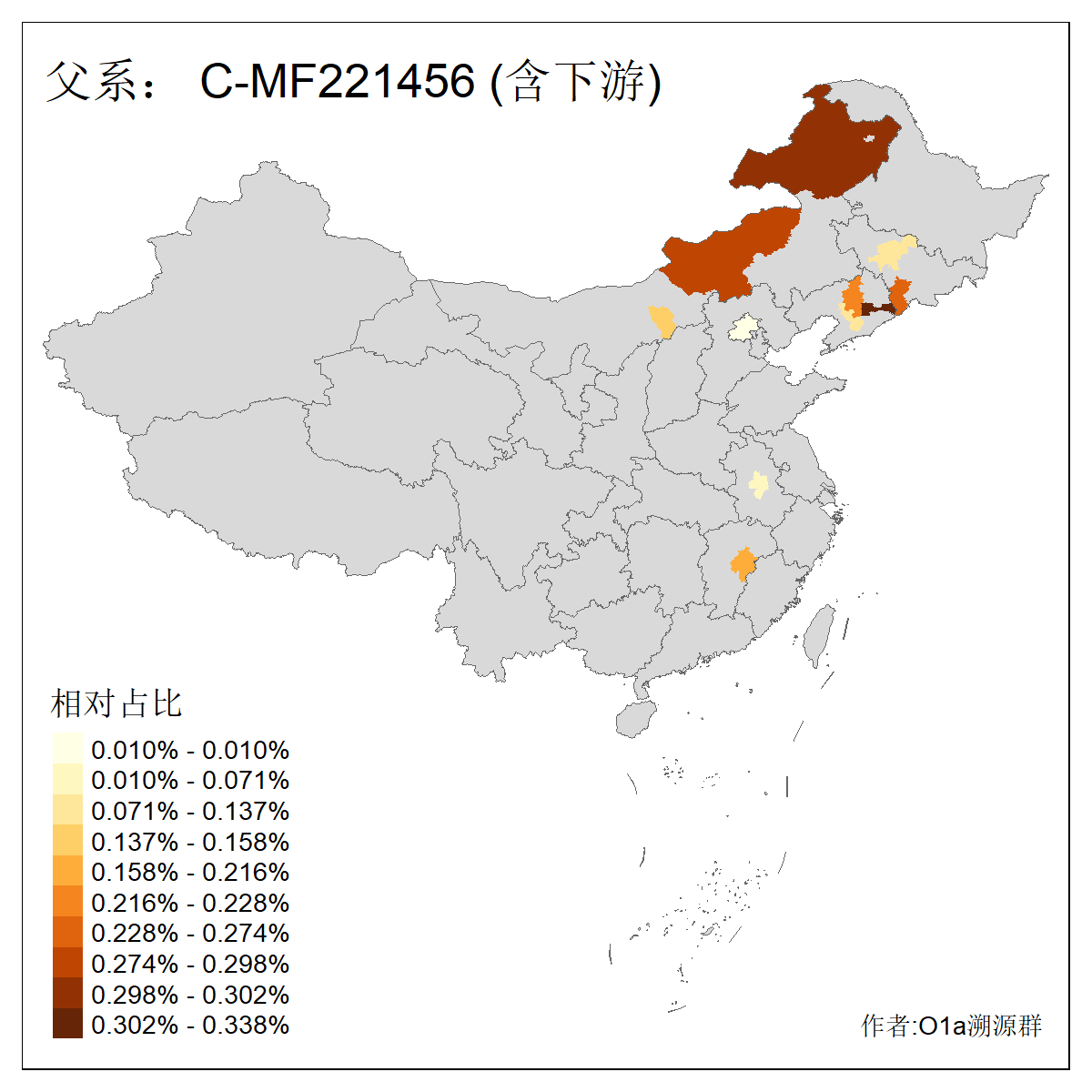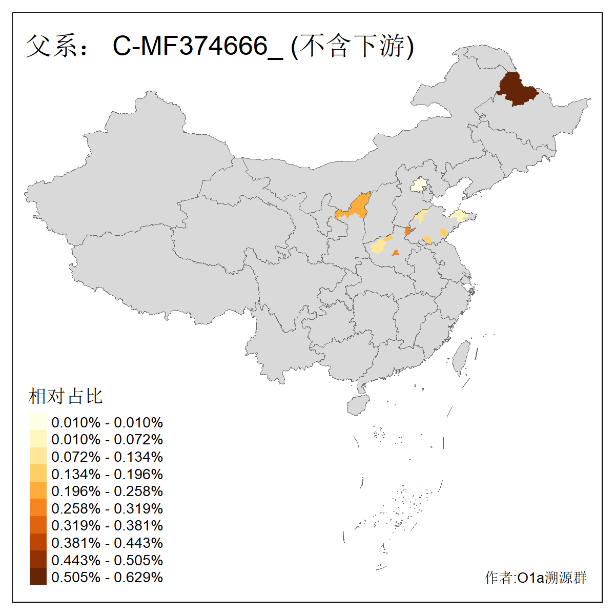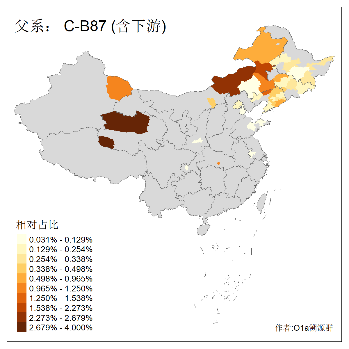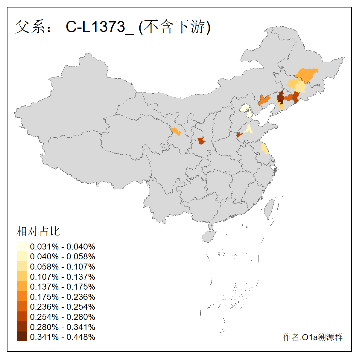 | C-M130_C-M217_C-L1373_C-F3447_C-F1699_C-Y6715_C-M504_C-Y4519 | 4040 | 0.332% | 711人(含下游) 赵:44 李:36 关:29 王:26 张:24 吴:20 阿:16 马:16 刘:14 白:14 艾:14 何:13 巴:12 哈:11 ![]() | 40人(不含下游) 赵:6 董:5 王:4 童:3 恒:2 白:2 佟:1 傅:1 呼:1 奥:1 崔:1 张:1 李:1 焦:1 ![]() |