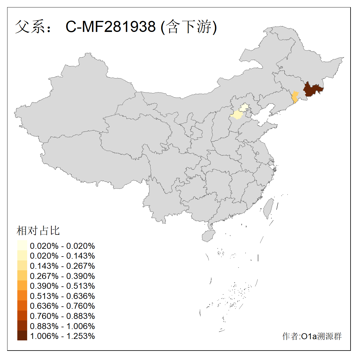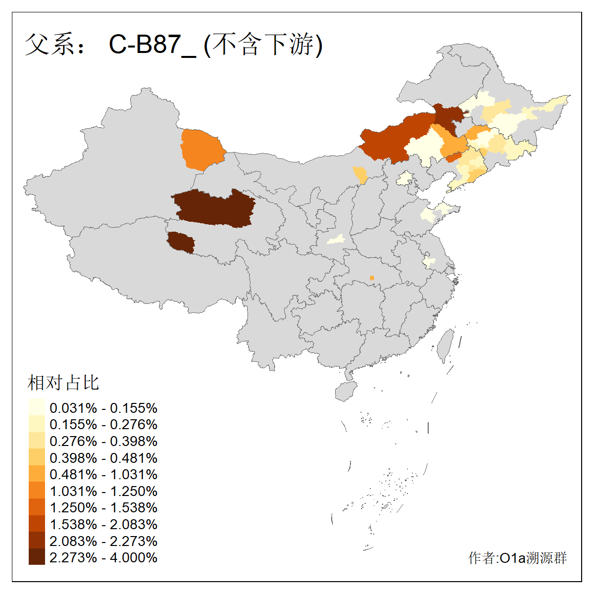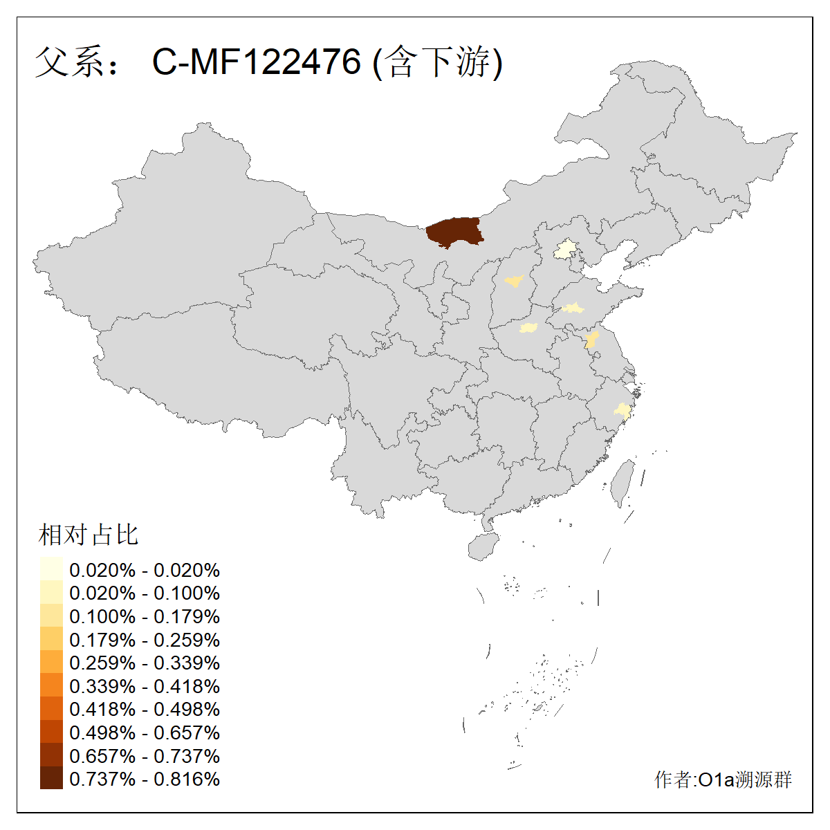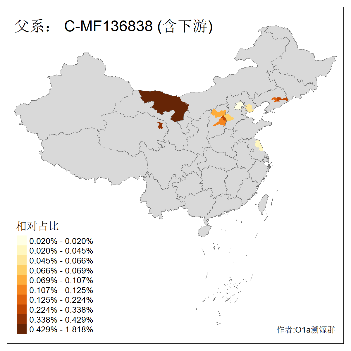| C-M130_C-M217_C-L1373_C-F3447_C-F1699_C-Y6715_C-M504_C-Y4519 | 4040 | 0.332% | 711人(含下游) 赵:44 李:36 关:29 王:26 张:24 吴:20 阿:16 马:16 刘:14 白:14 艾:14 何:13 巴:12 哈:11 ![]() | 40人(不含下游) 赵:6 董:5 王:4 童:3 恒:2 白:2 佟:1 傅:1 呼:1 奥:1 崔:1 张:1 李:1 焦:1 ![]() |