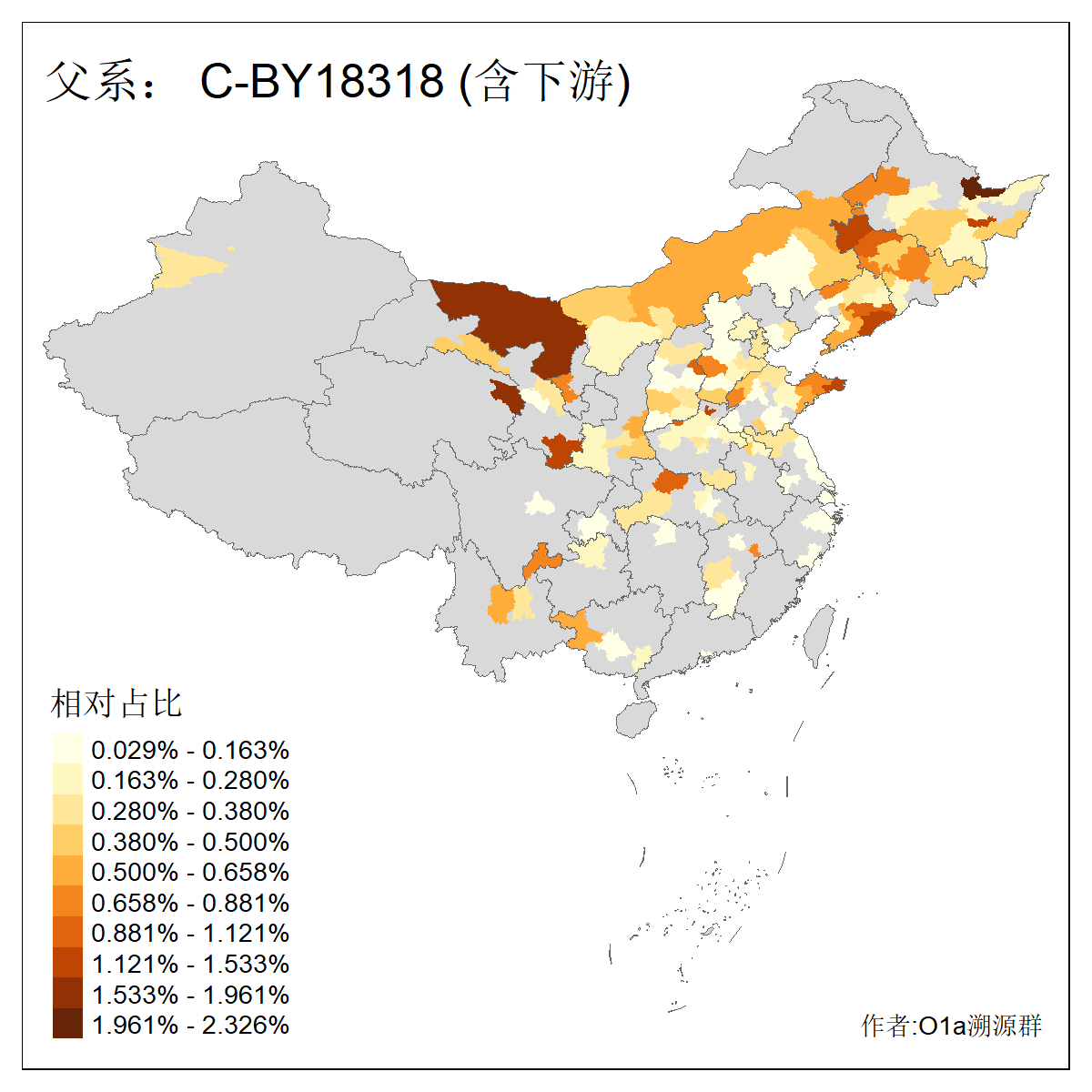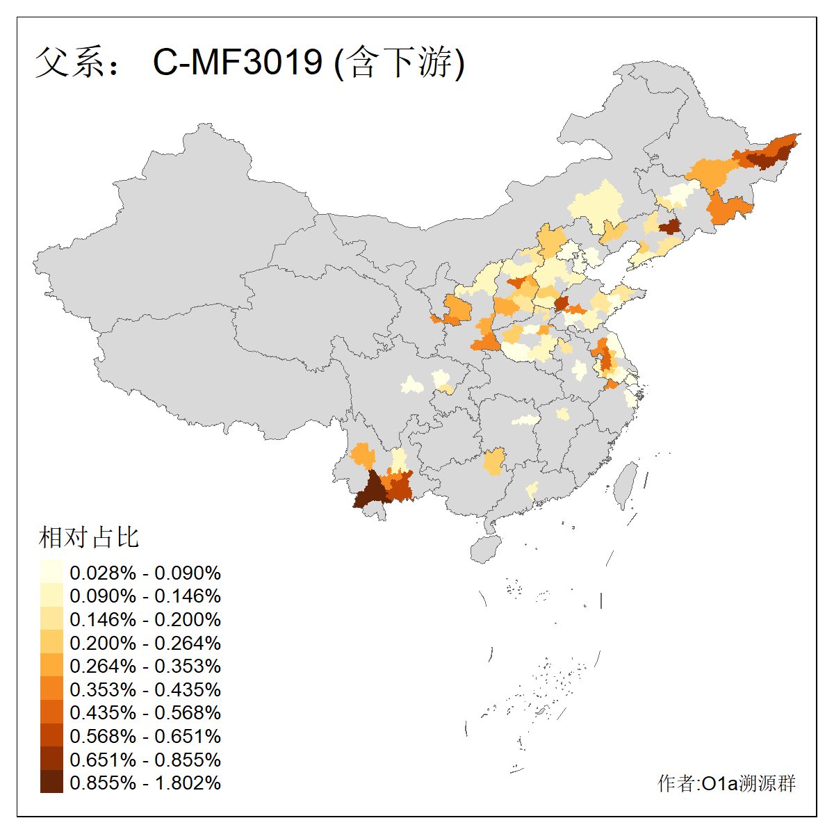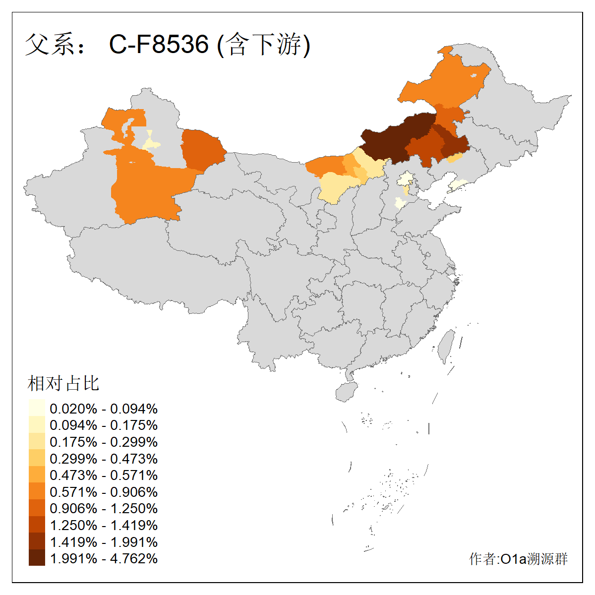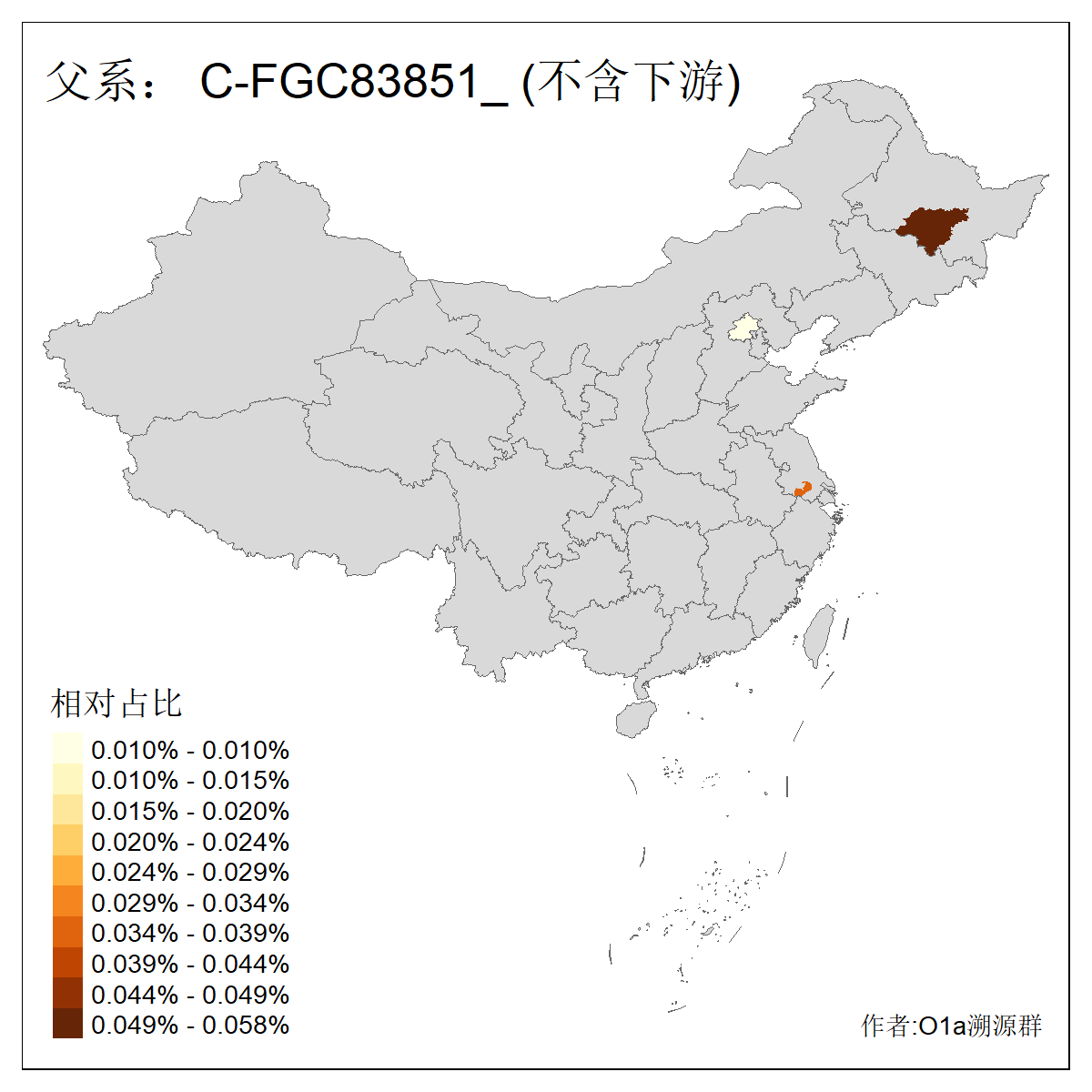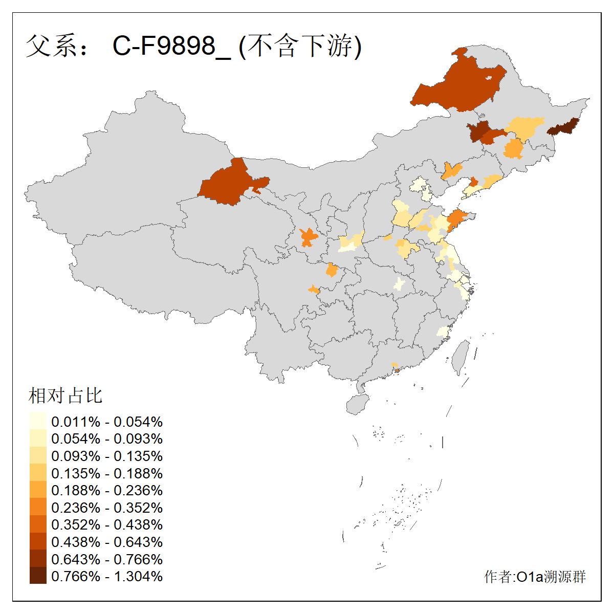 | C-M130_C-M217_C-L1373_C-F3447_C-F1699_C-Y6715_C-M504_C-Y4519 | 4040 | 0.332% | 711人(含下游) 赵:44 李:36 关:29 王:26 张:24 吴:20 阿:16 马:16 刘:14 白:14 艾:14 何:13 巴:12 哈:11 ![]() | 40人(不含下游) 赵:6 董:5 王:4 童:3 恒:2 白:2 佟:1 傅:1 呼:1 奥:1 崔:1 张:1 李:1 焦:1 ![]() |