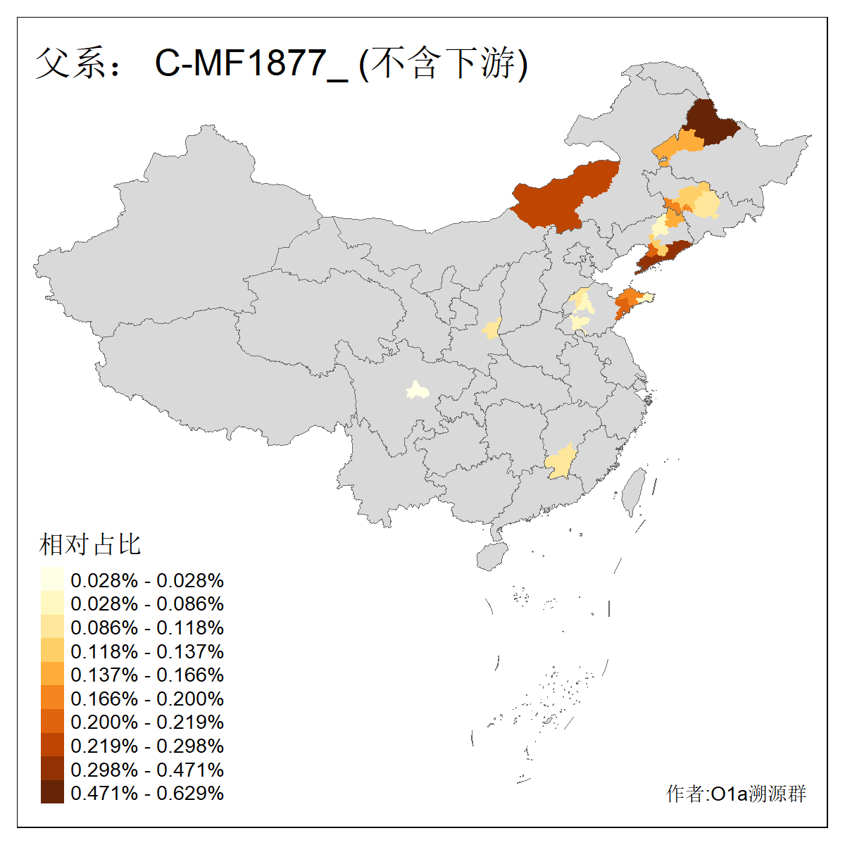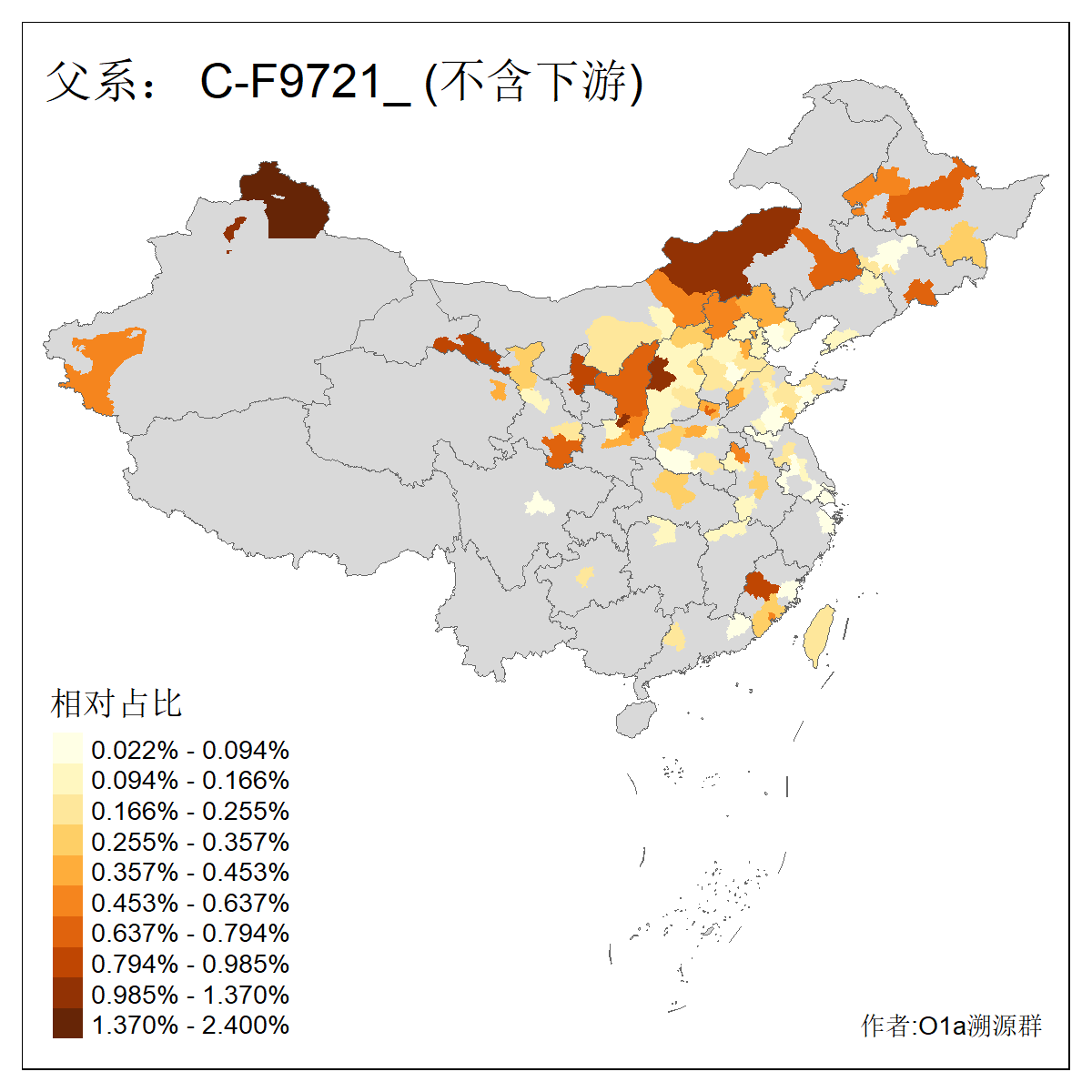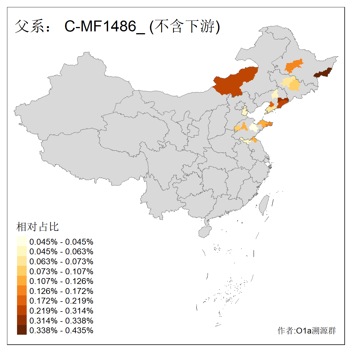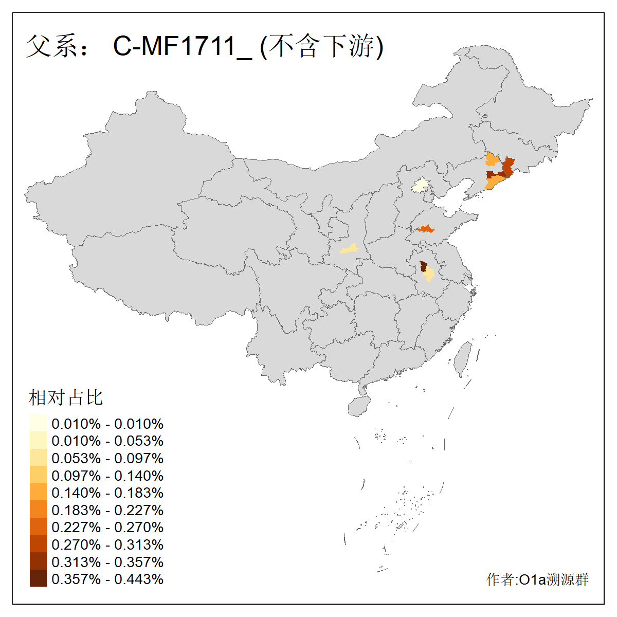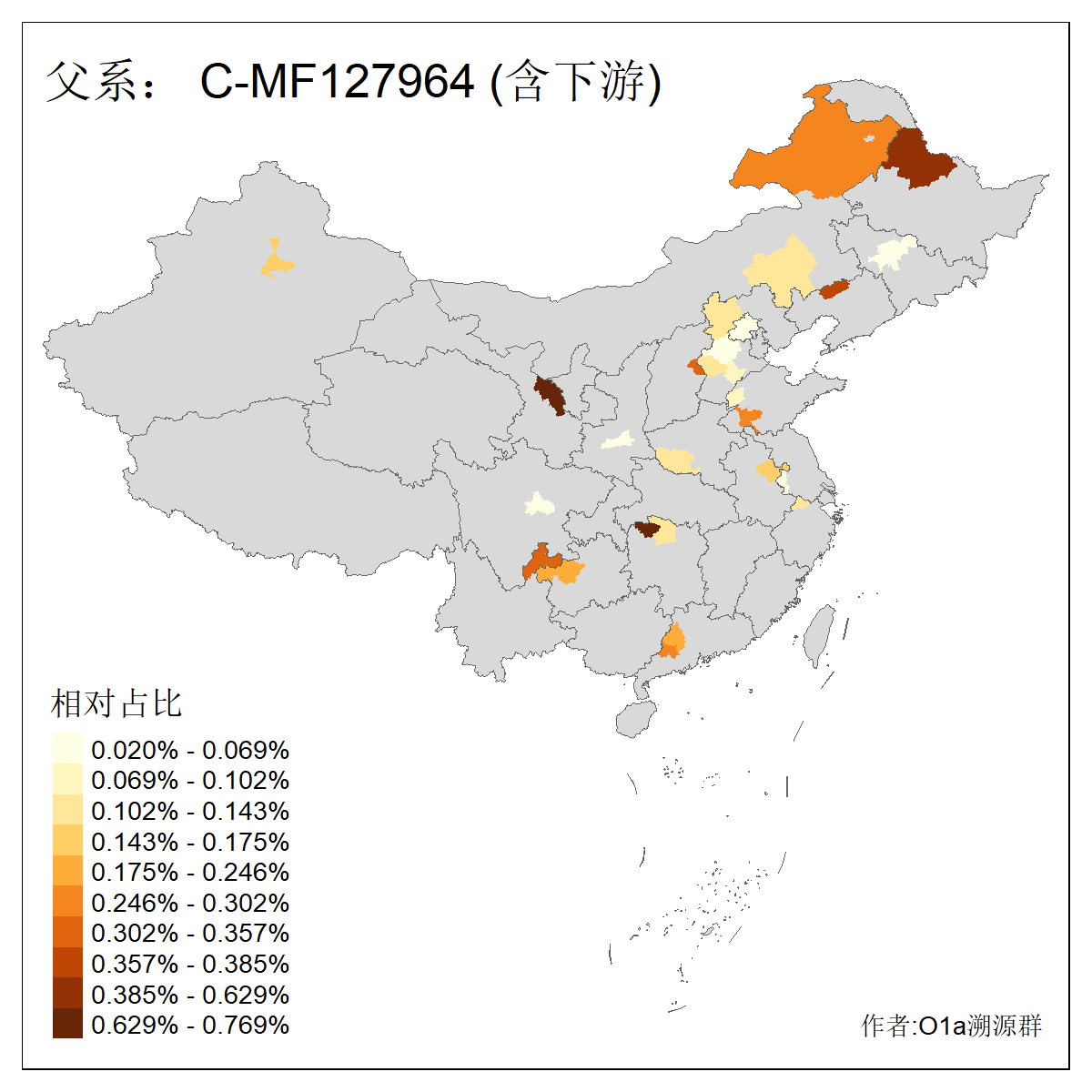 | C-M130_C-M217_C-L1373_C-F3447_C-F1699_C-Y6715_C-M504_C-Y4519 | 4040 | 0.332% | 711人(含下游) 赵:44 李:36 关:29 王:26 张:24 吴:20 阿:16 马:16 刘:14 白:14 艾:14 何:13 巴:12 哈:11 ![]() | 40人(不含下游) 赵:6 董:5 王:4 童:3 恒:2 白:2 佟:1 傅:1 呼:1 奥:1 崔:1 张:1 李:1 焦:1 ![]() |