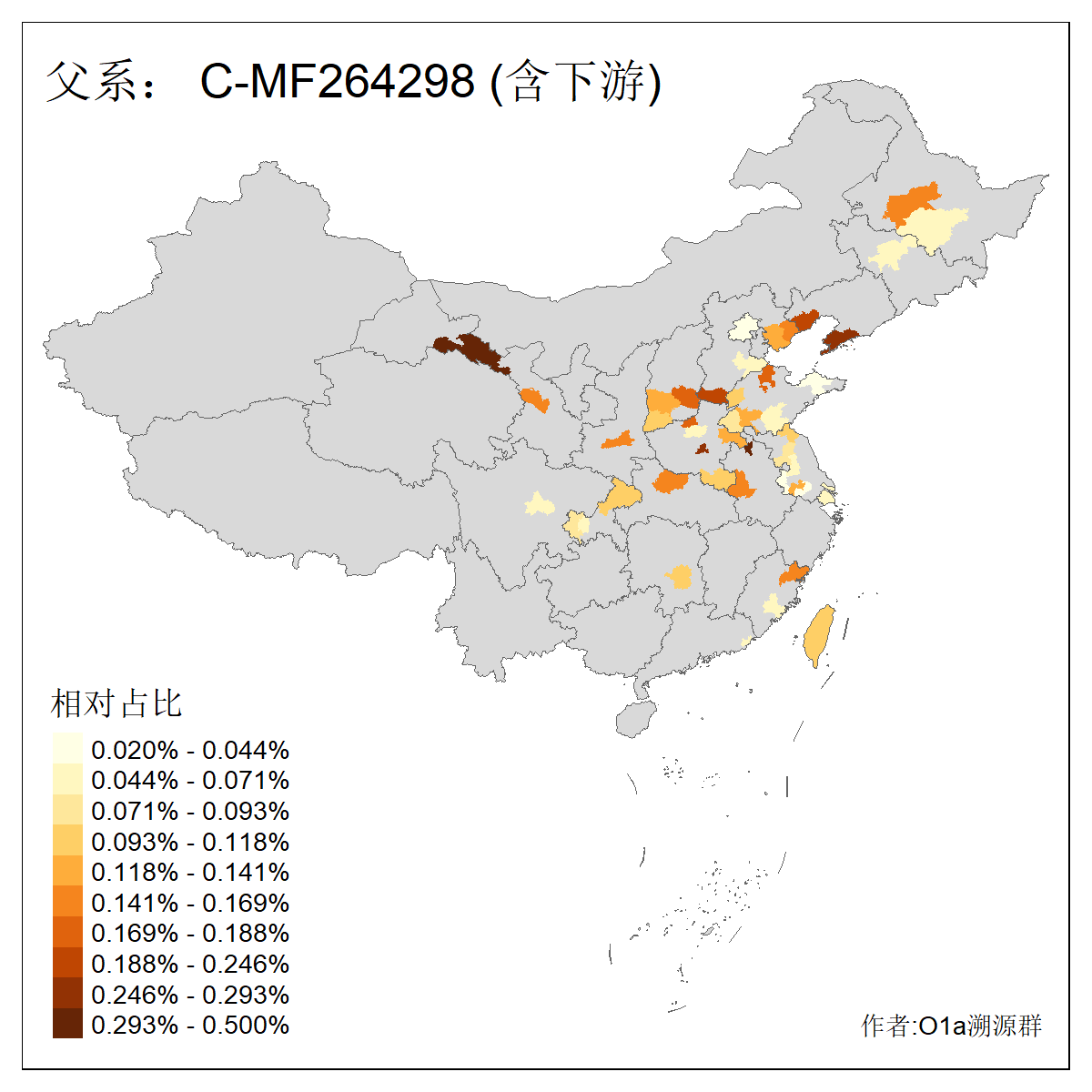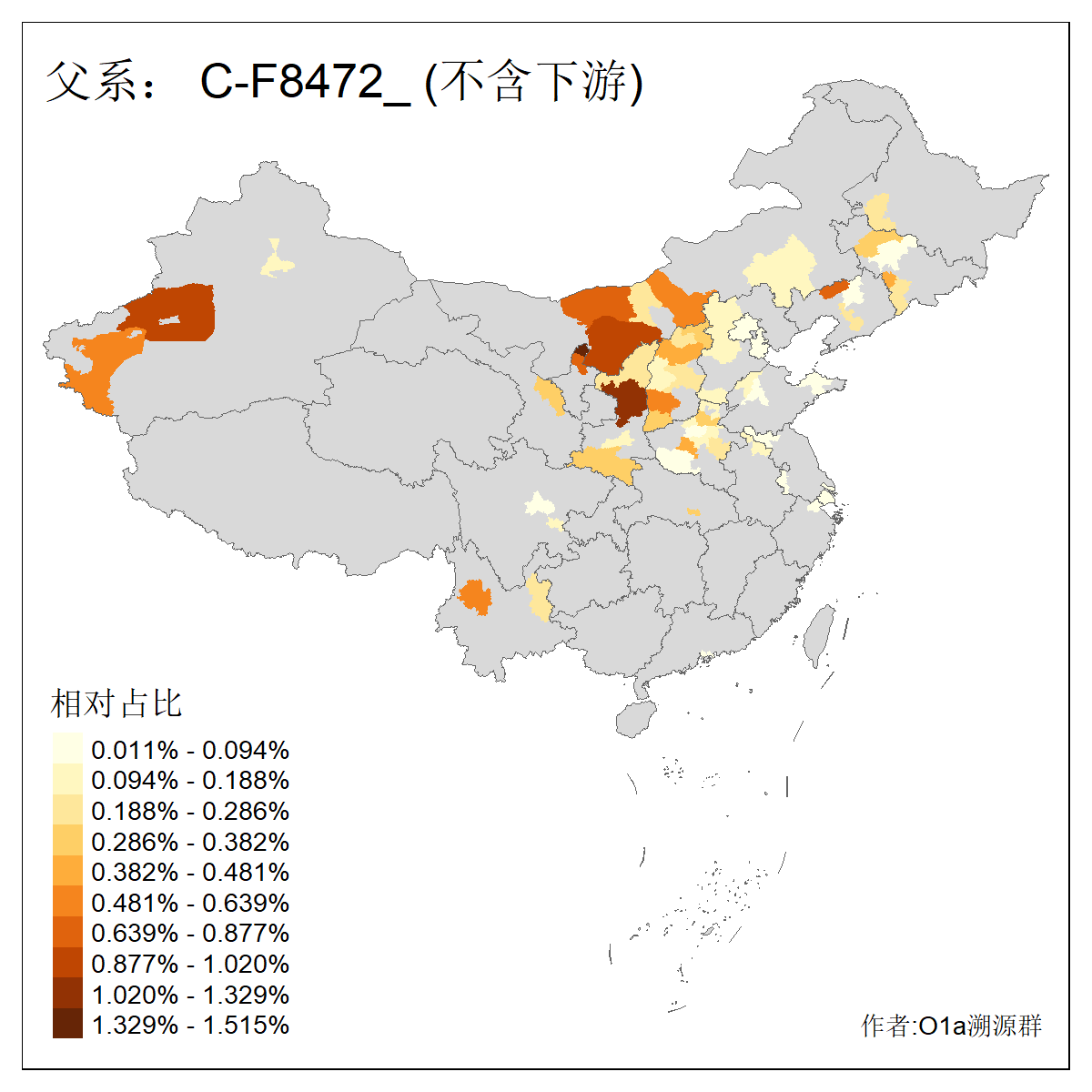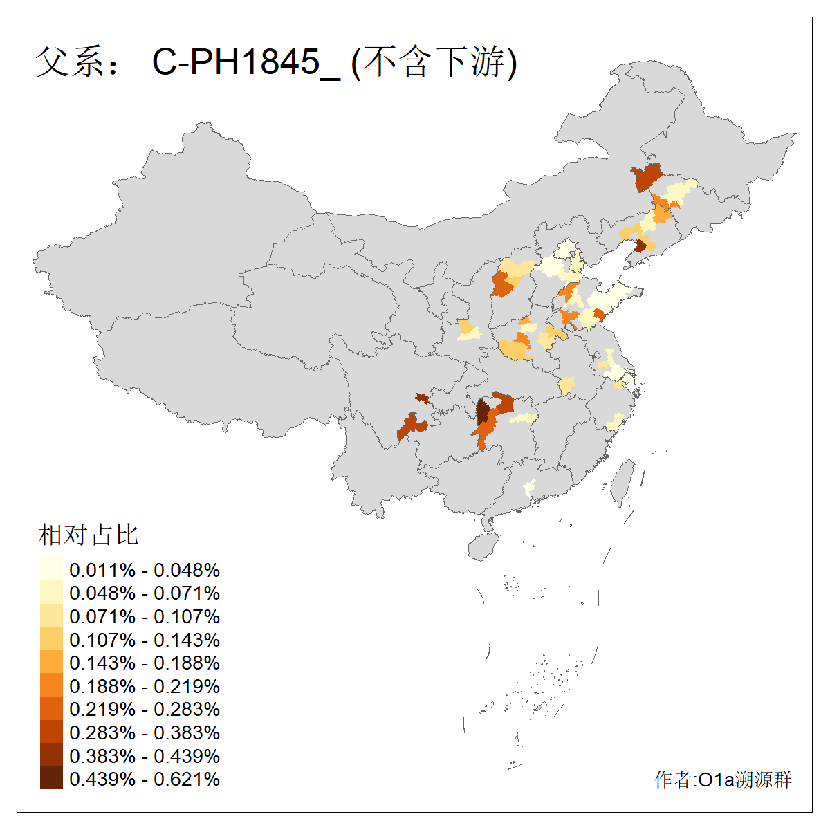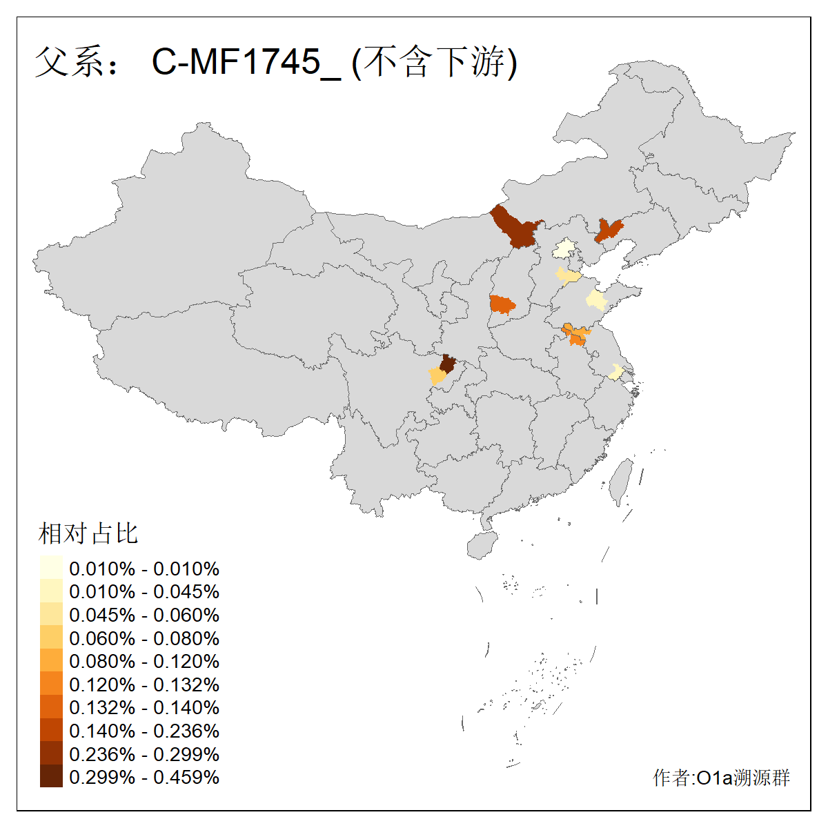 | C-M130_C-M217_C-L1373_C-F3447_C-F1699_C-Y6715_C-M504_C-Y4519 | 4040 | 0.332% | 711人(含下游) 赵:44 李:36 关:29 王:26 张:24 吴:20 阿:16 马:16 刘:14 白:14 艾:14 何:13 巴:12 哈:11 ![]() | 40人(不含下游) 赵:6 董:5 王:4 童:3 恒:2 白:2 佟:1 傅:1 呼:1 奥:1 崔:1 张:1 李:1 焦:1 ![]() |