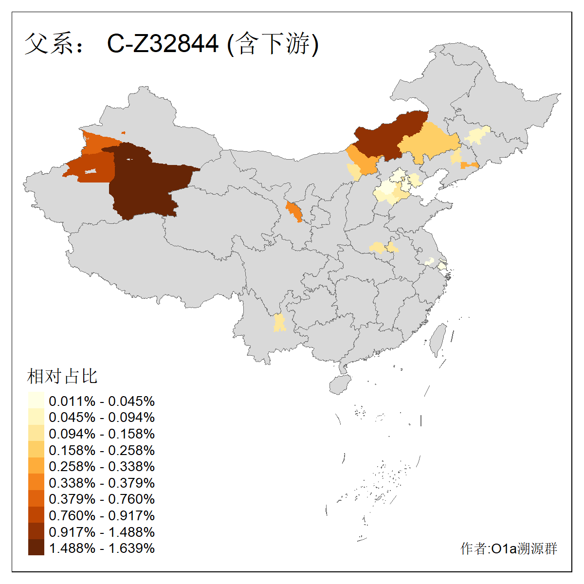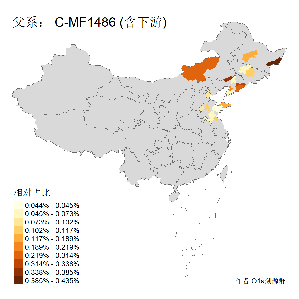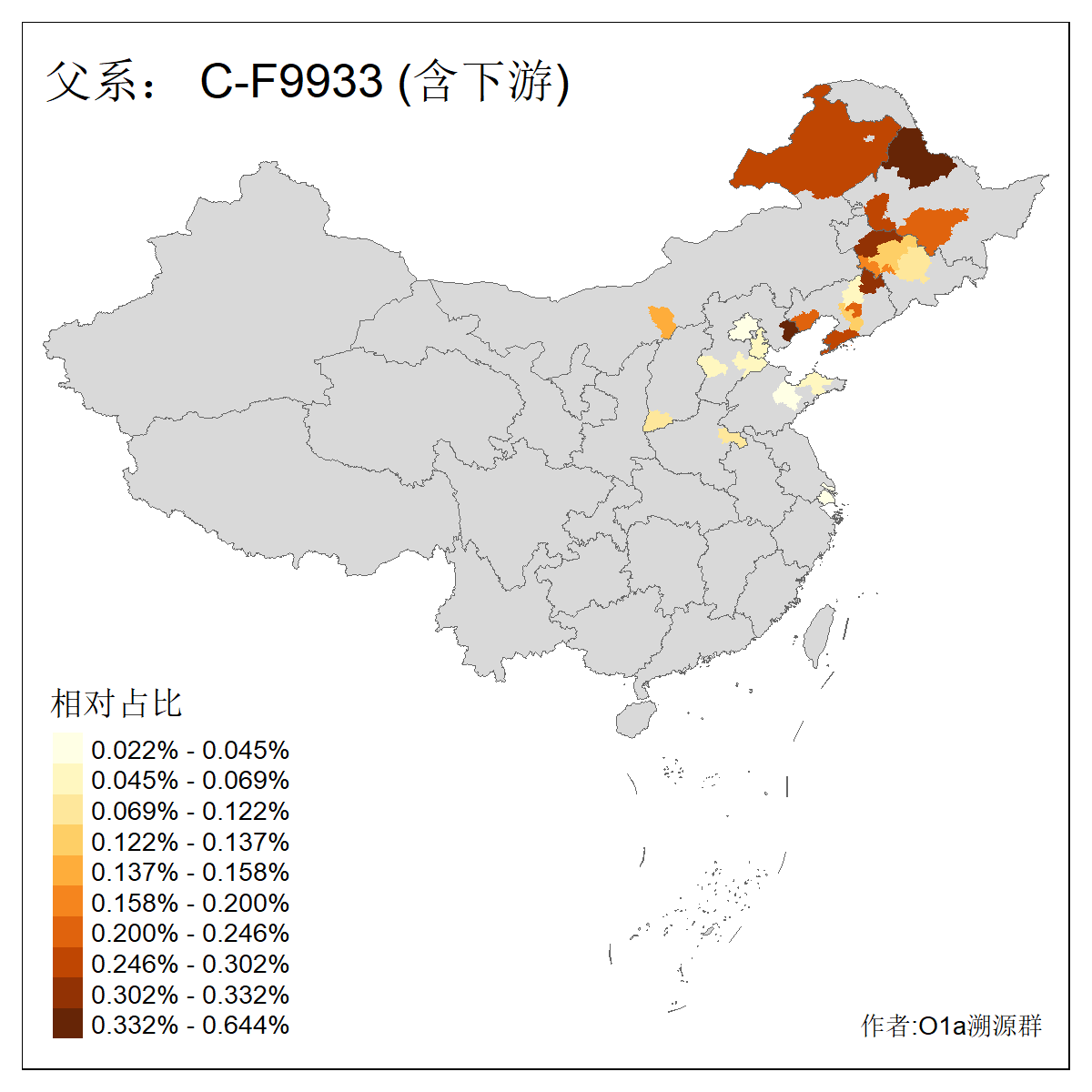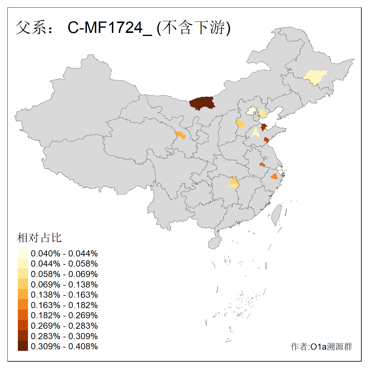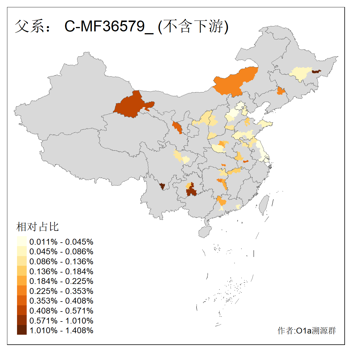 | C-M130_C-M217_C-L1373_C-F3447_C-F1699_C-Y6715_C-M504_C-Y4519 | 4040 | 0.332% | 711人(含下游) 赵:44 李:36 关:29 王:26 张:24 吴:20 阿:16 马:16 刘:14 白:14 艾:14 何:13 巴:12 哈:11 ![]() | 40人(不含下游) 赵:6 董:5 王:4 童:3 恒:2 白:2 佟:1 傅:1 呼:1 奥:1 崔:1 张:1 李:1 焦:1 ![]() |