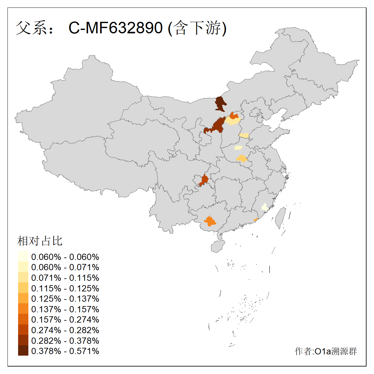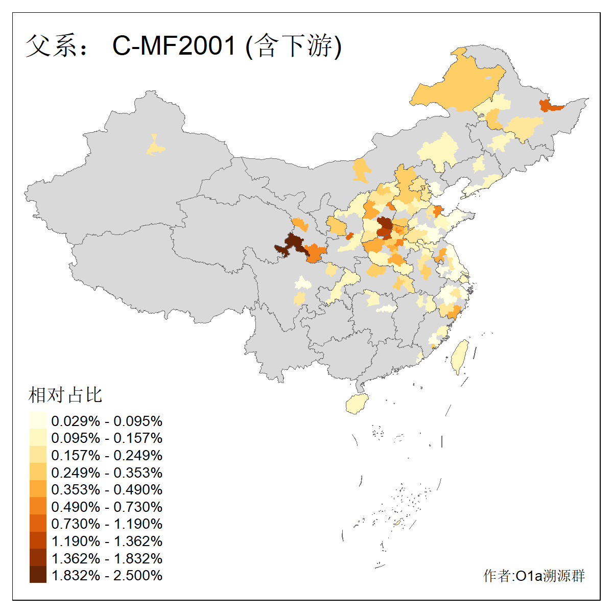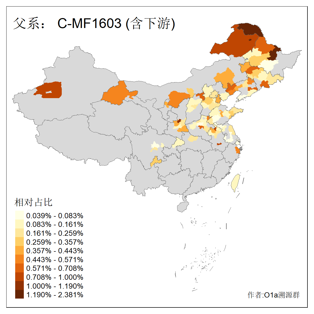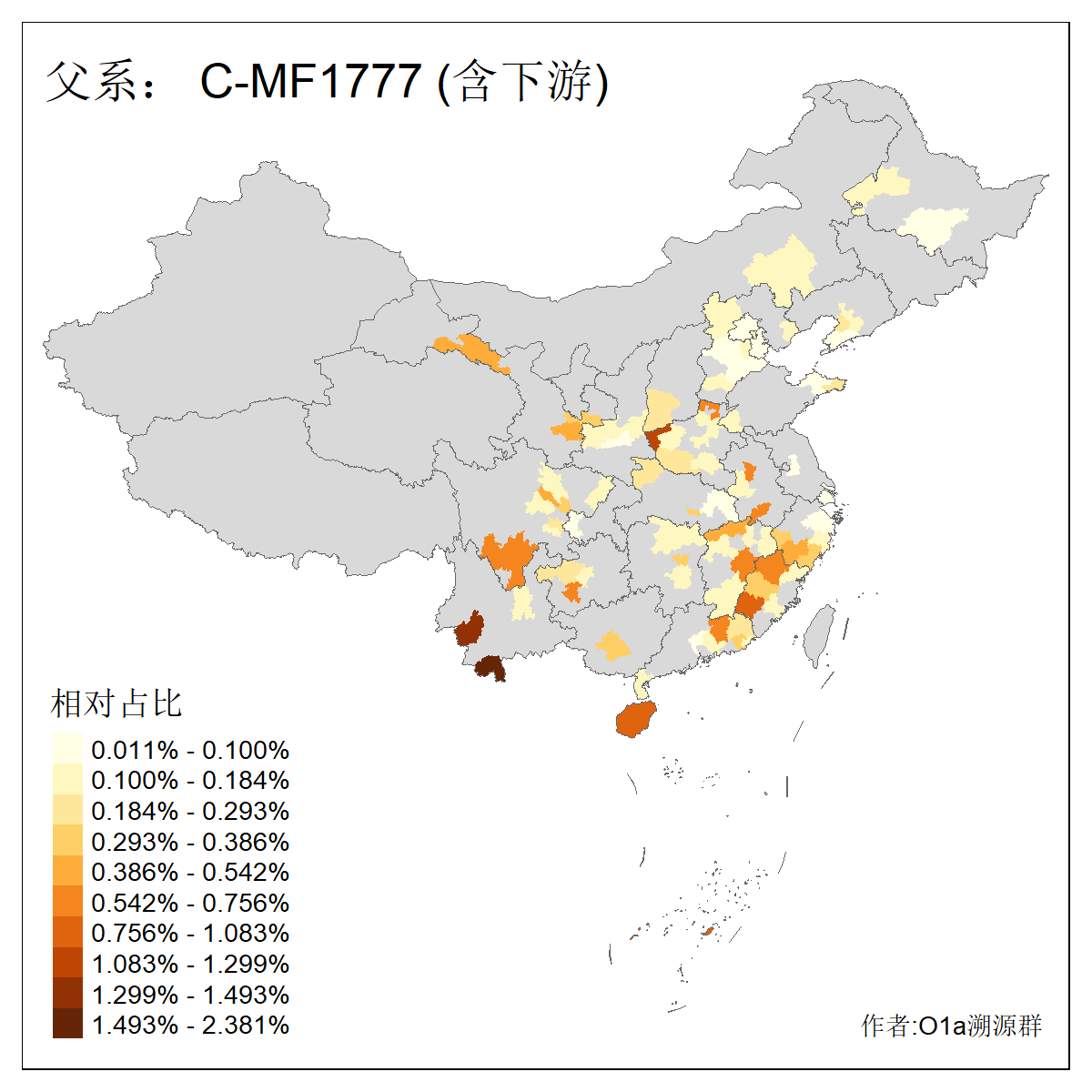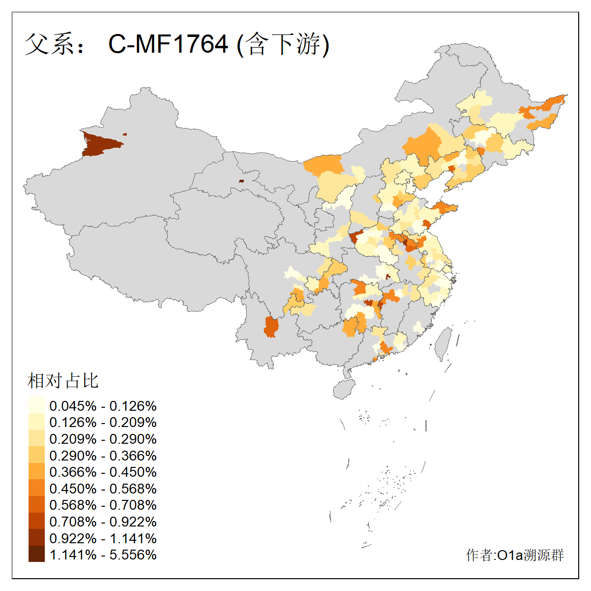 | C-M130_C-M217_C-L1373_C-F3447_C-F1699_C-Y6715_C-M504_C-Y4519 | 4040 | 0.332% | 711人(含下游) 赵:44 李:36 关:29 王:26 张:24 吴:20 阿:16 马:16 刘:14 白:14 艾:14 何:13 巴:12 哈:11 ![]() | 40人(不含下游) 赵:6 董:5 王:4 童:3 恒:2 白:2 佟:1 傅:1 呼:1 奥:1 崔:1 张:1 李:1 焦:1 ![]() |