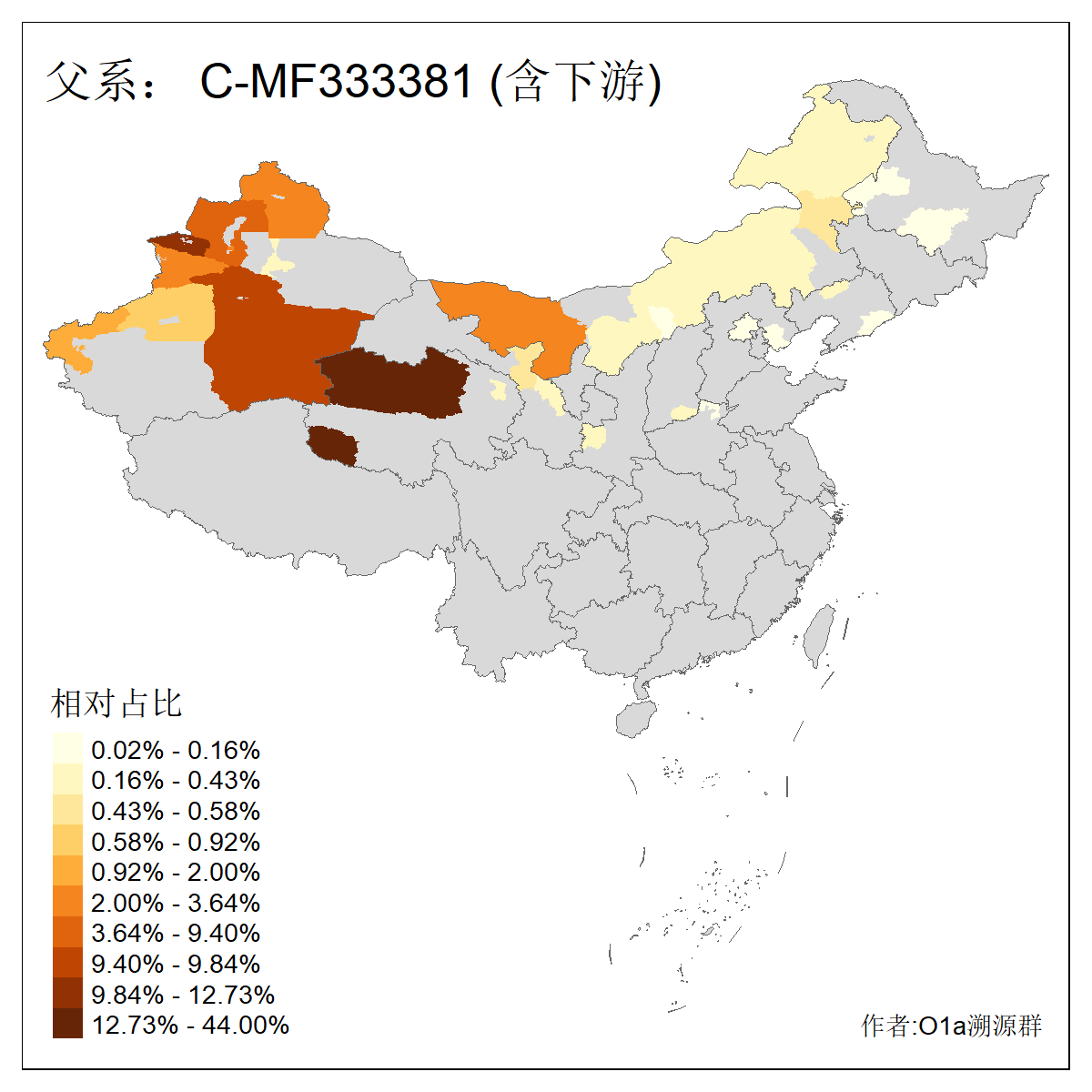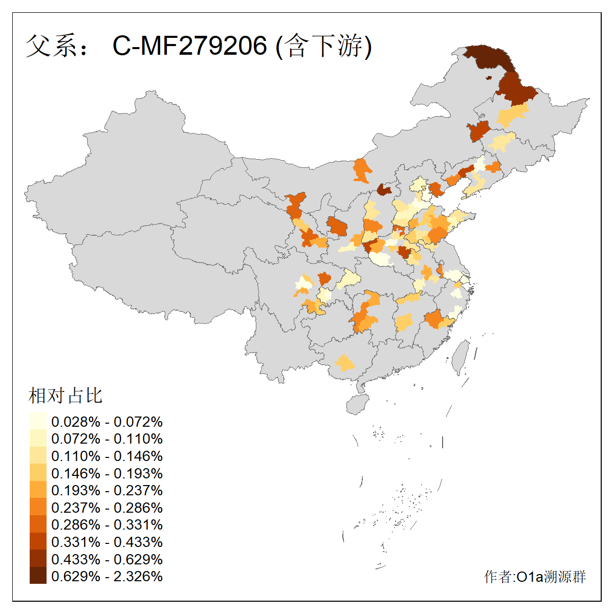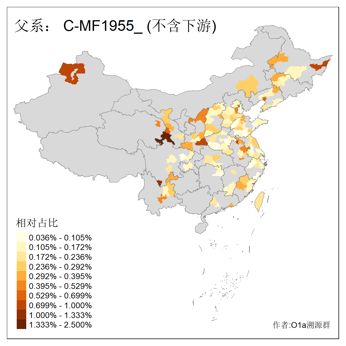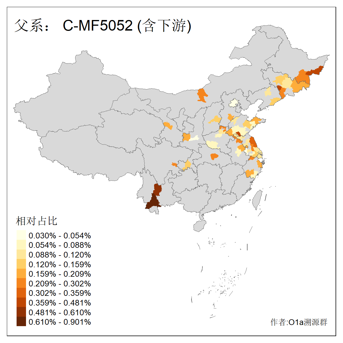 | C-M130_C-M217_C-L1373_C-F3447_C-F1699_C-Y6715_C-M504_C-Y4519 | 4040 | 0.332% | 711人(含下游) 赵:44 李:36 关:29 王:26 张:24 吴:20 阿:16 马:16 刘:14 白:14 艾:14 何:13 巴:12 哈:11 ![]() | 40人(不含下游) 赵:6 董:5 王:4 童:3 恒:2 白:2 佟:1 傅:1 呼:1 奥:1 崔:1 张:1 李:1 焦:1 ![]() |