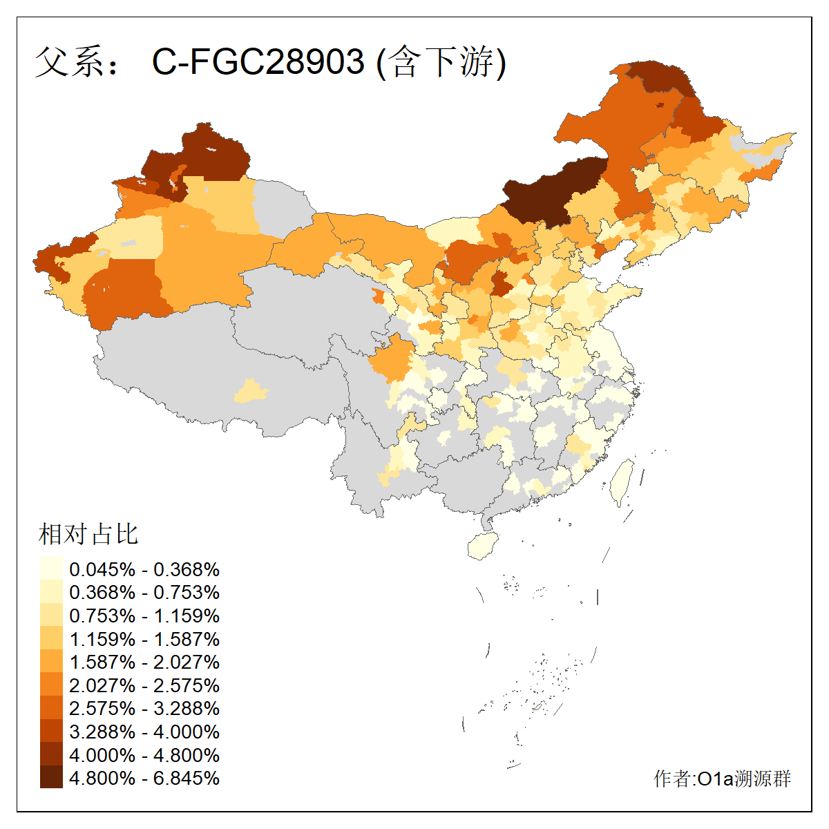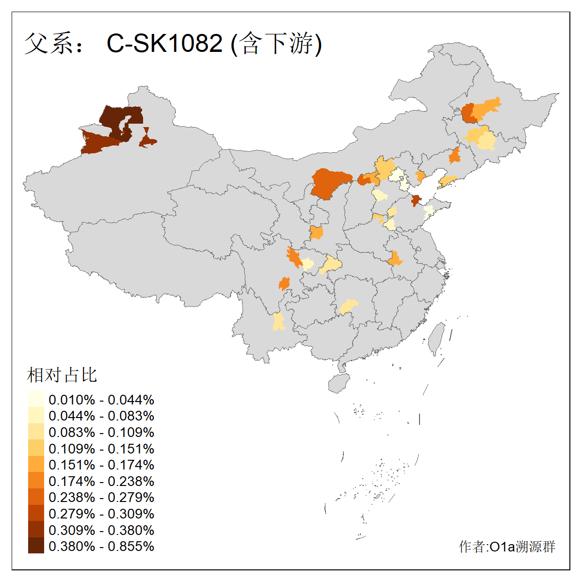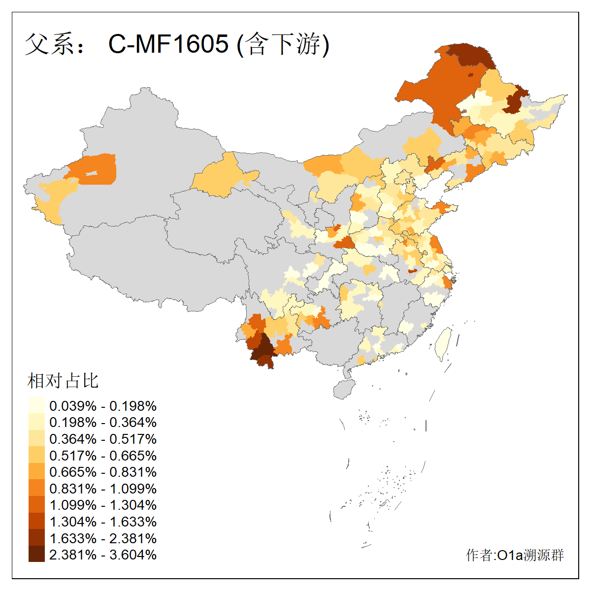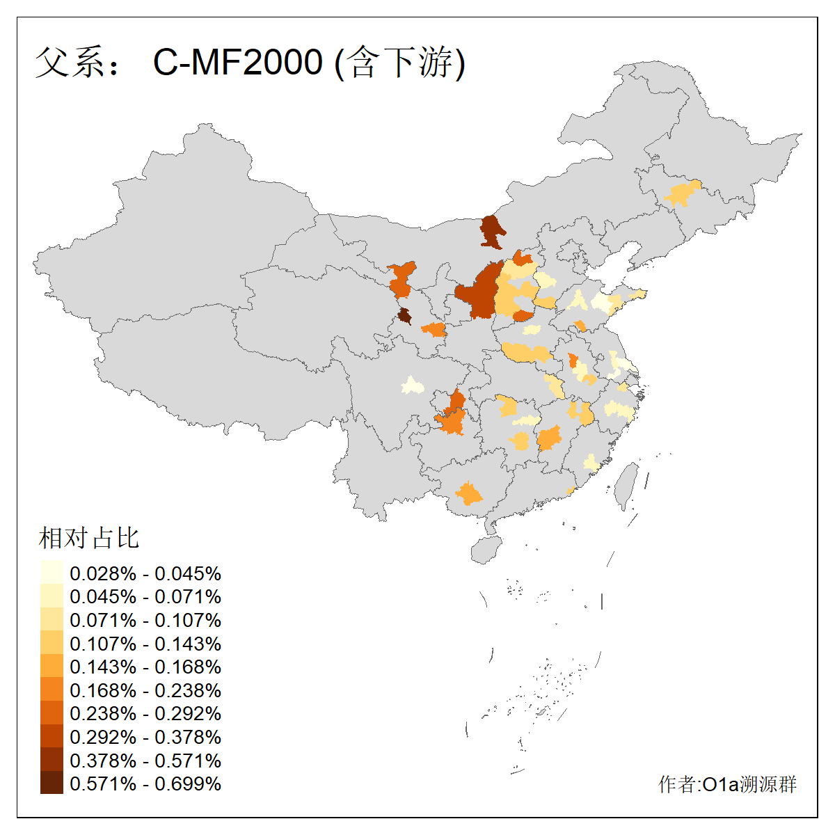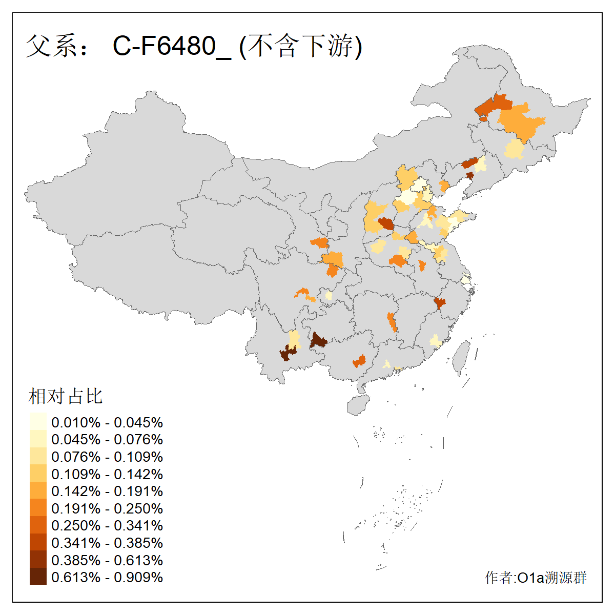 | C-M130_C-M217_C-L1373_C-F3447_C-F1699_C-Y6715_C-M504_C-Y4519 | 4040 | 0.332% | 711人(含下游) 赵:44 李:36 关:29 王:26 张:24 吴:20 阿:16 马:16 刘:14 白:14 艾:14 何:13 巴:12 哈:11 ![]() | 40人(不含下游) 赵:6 董:5 王:4 童:3 恒:2 白:2 佟:1 傅:1 呼:1 奥:1 崔:1 张:1 李:1 焦:1 ![]() |