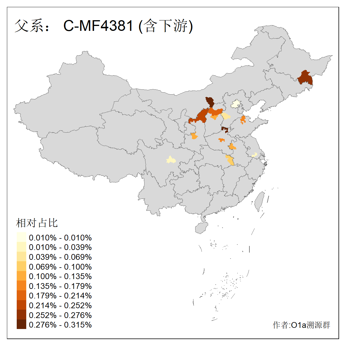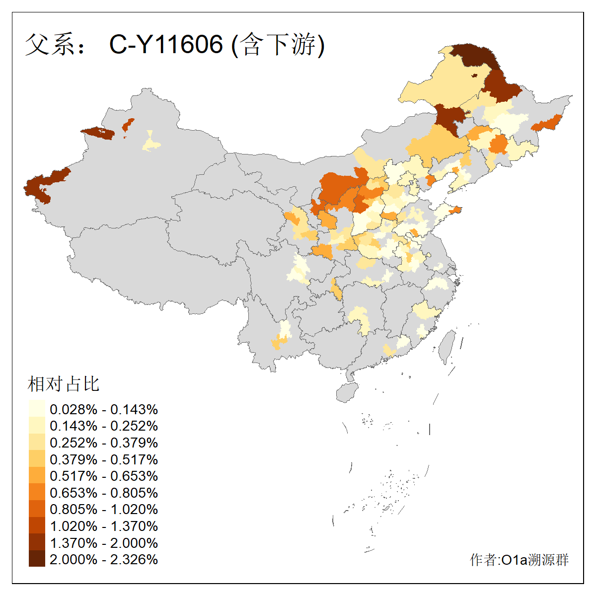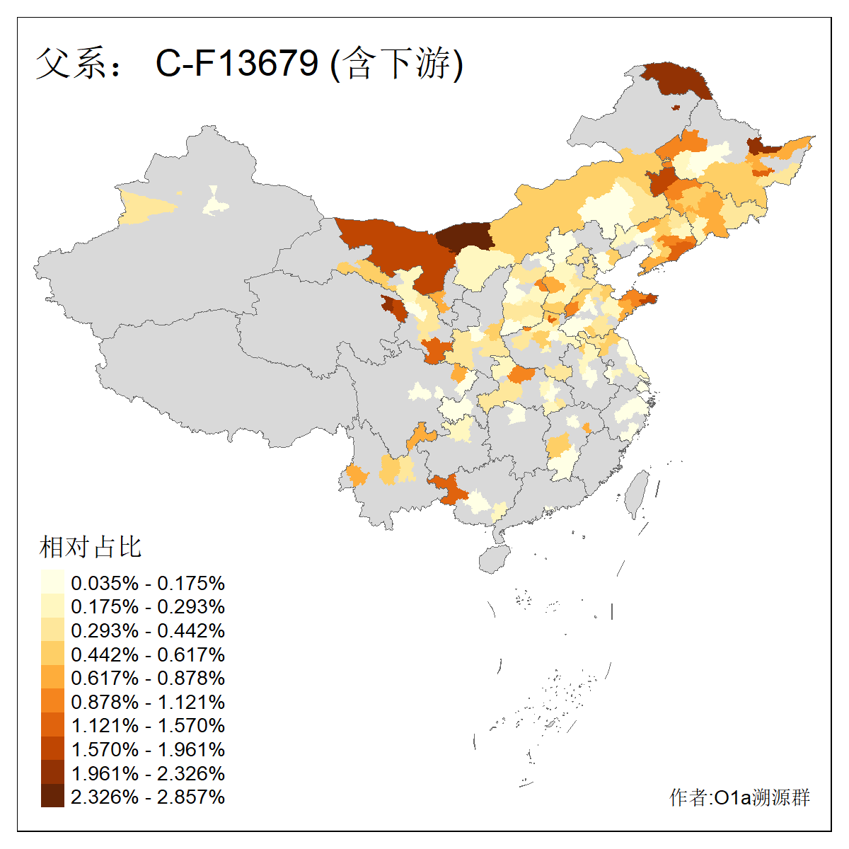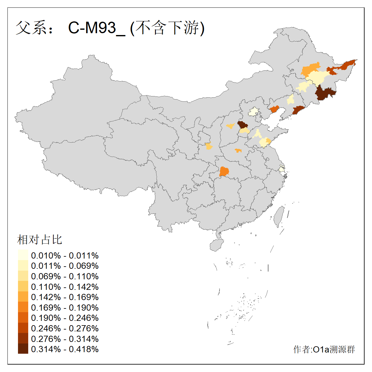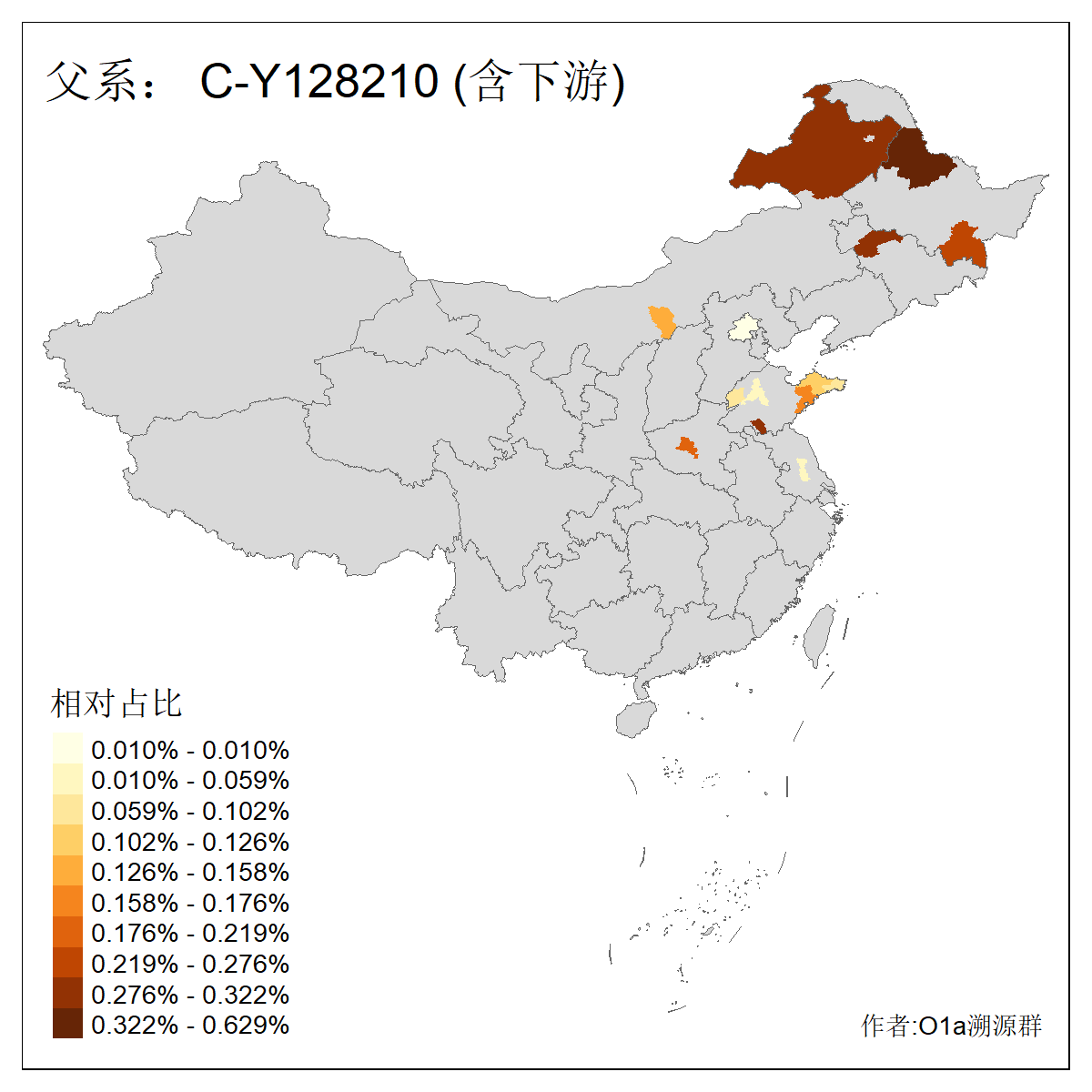 | C-M130_C-M217_C-L1373_C-F3447_C-F1699_C-Y6715_C-M504_C-Y4519_C-Y11121_C-F3796 | 2810 | 0.276% | 553人(含下游) 关:27 李:27 张:21 吴:19 王:18 阿:16 艾:14 赵:14 刘:12 巴:12 何:11 哈:11 包:10 白:10 ![]() | 101人(不含下游) 刘:8 李:8 吴:6 赵:6 张:5 王:5 赫:5 南:4 柴:4 火:3 郭:3 何:2 佟:2 傅:2 ![]() |