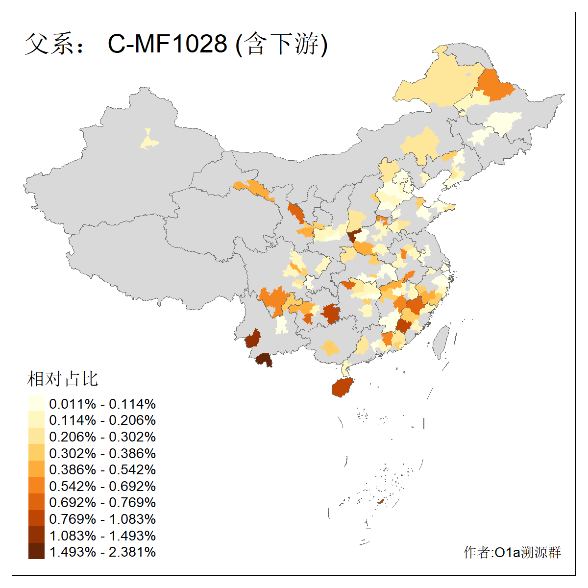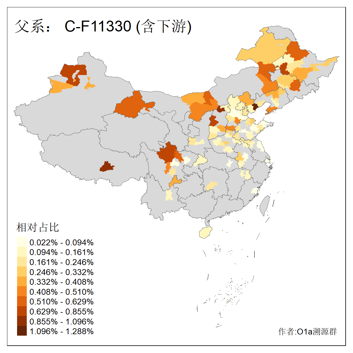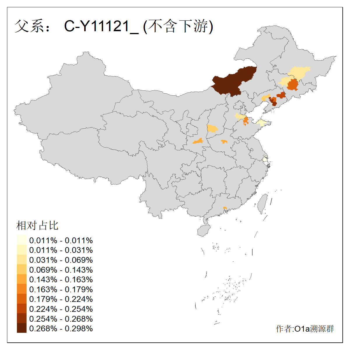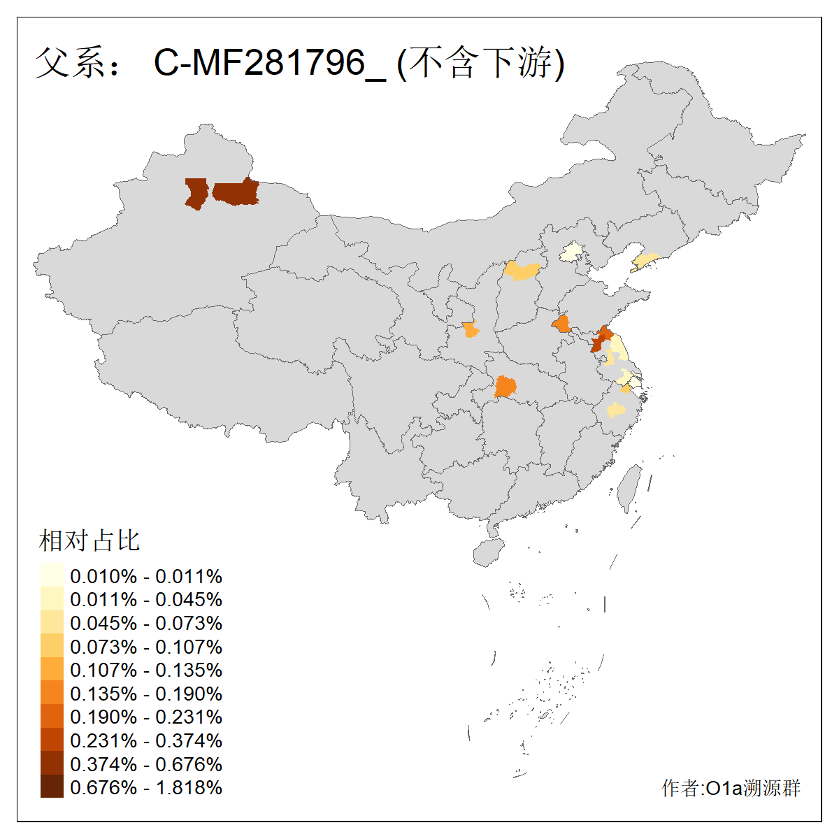 | C-M130_C-M217_C-L1373_C-F3447_C-F1699_C-Y6715_C-M504_C-Y4519_C-Y11121_C-F3796 | 2810 | 0.276% | 553人(含下游) 关:27 李:27 张:21 吴:19 王:18 阿:16 艾:14 赵:14 刘:12 巴:12 何:11 哈:11 包:10 白:10 ![]() | 101人(不含下游) 刘:8 李:8 吴:6 赵:6 张:5 王:5 赫:5 南:4 柴:4 火:3 郭:3 何:2 佟:2 傅:2 ![]() |