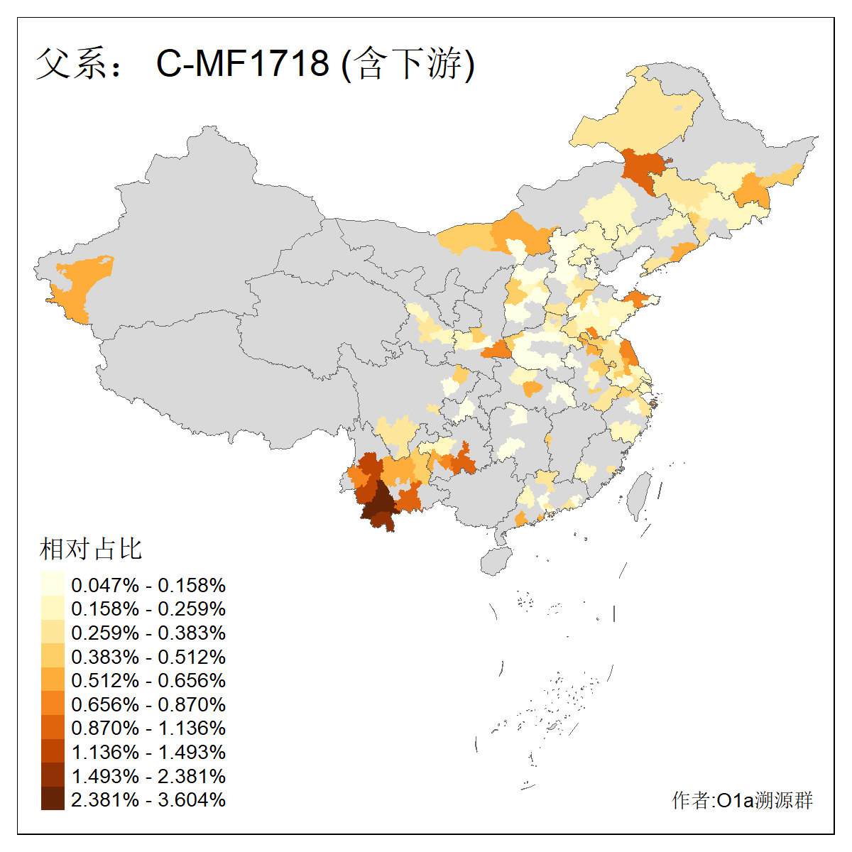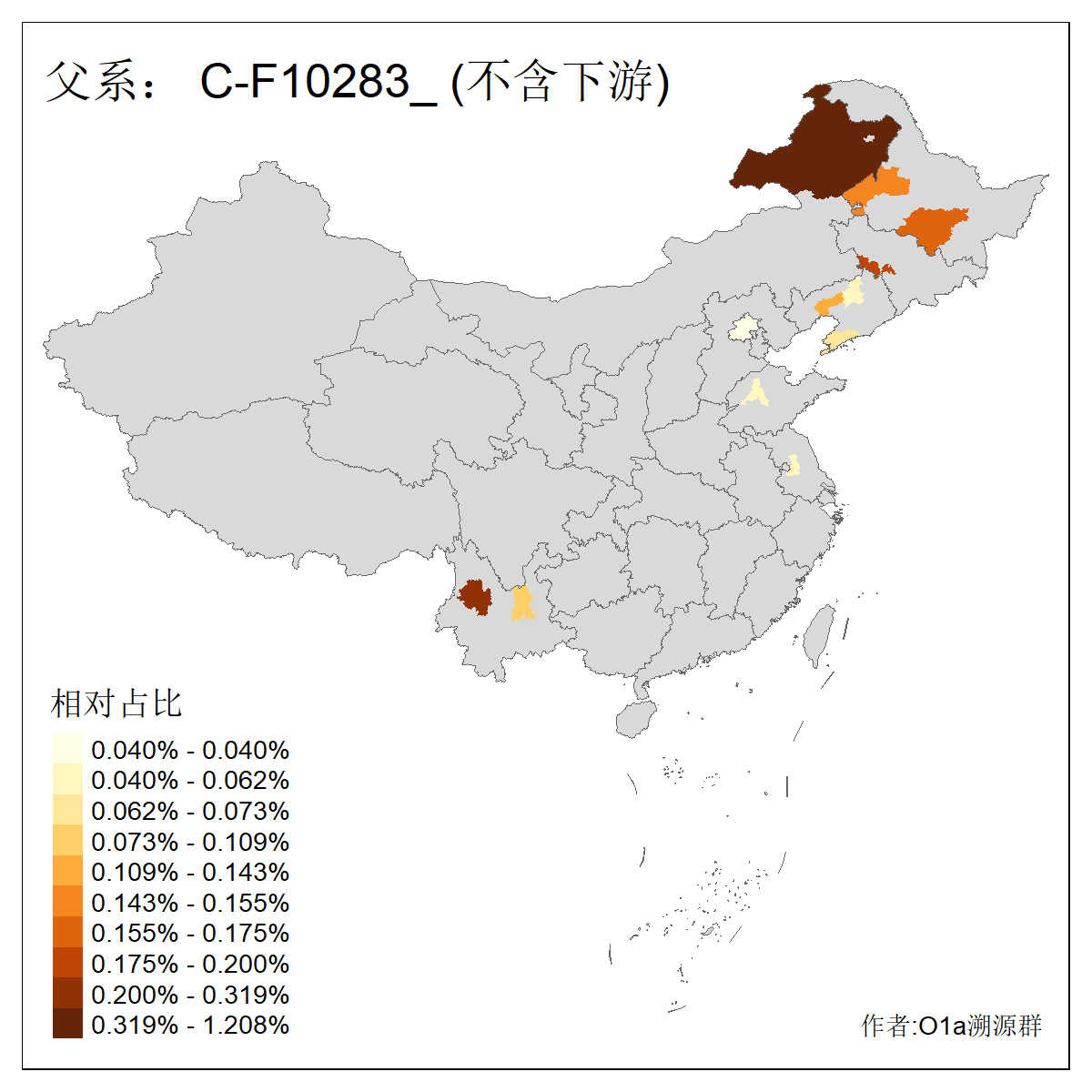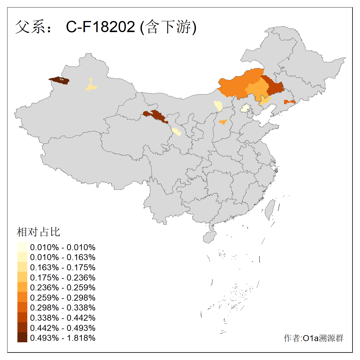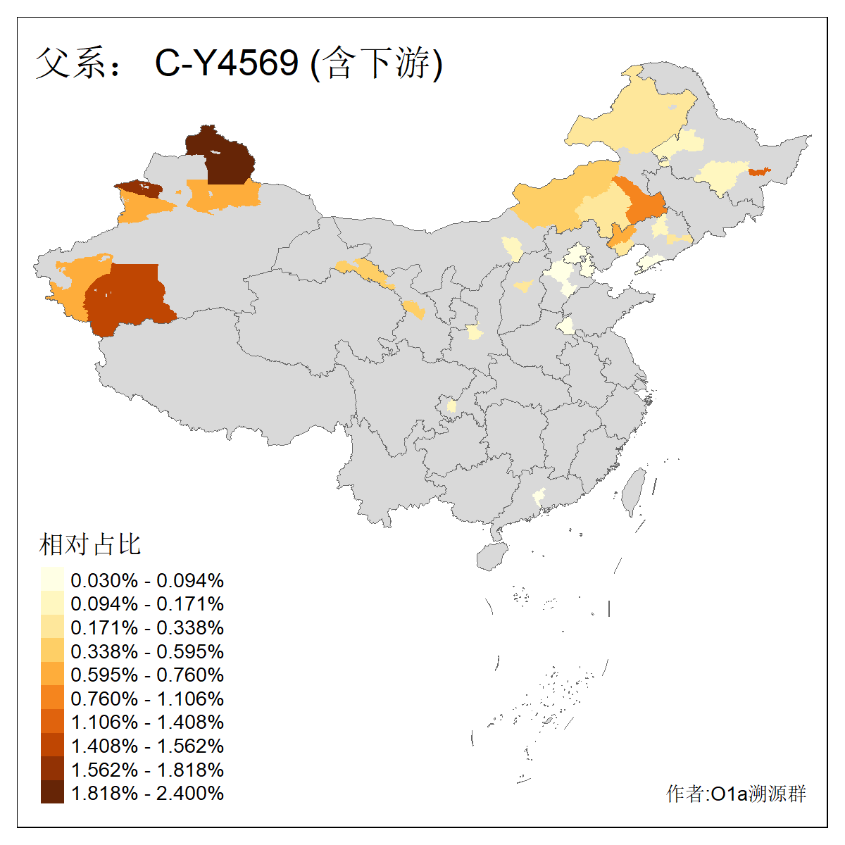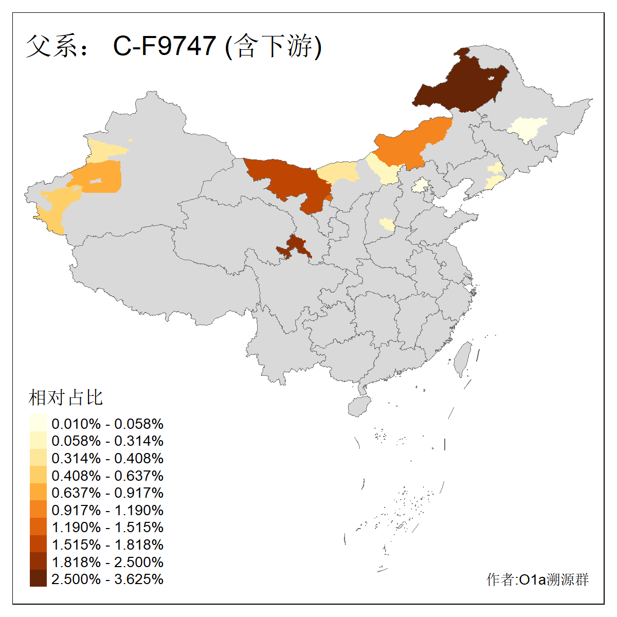 | C-M130_C-M217_C-L1373_C-F3447_C-F1699_C-Y6715_C-M504_C-Y4519_C-Y11121_C-F3796 | 2810 | 0.276% | 553人(含下游) 关:27 李:27 张:21 吴:19 王:18 阿:16 艾:14 赵:14 刘:12 巴:12 何:11 哈:11 包:10 白:10 ![]() | 101人(不含下游) 刘:8 李:8 吴:6 赵:6 张:5 王:5 赫:5 南:4 柴:4 火:3 郭:3 何:2 佟:2 傅:2 ![]() |