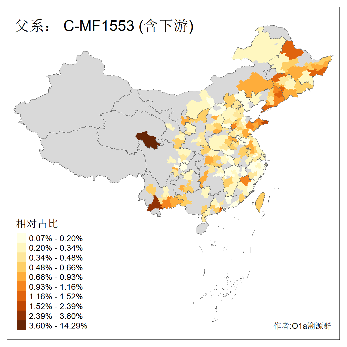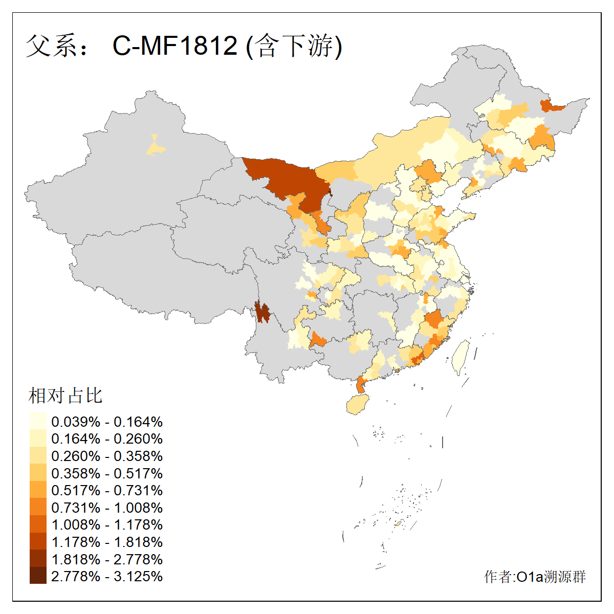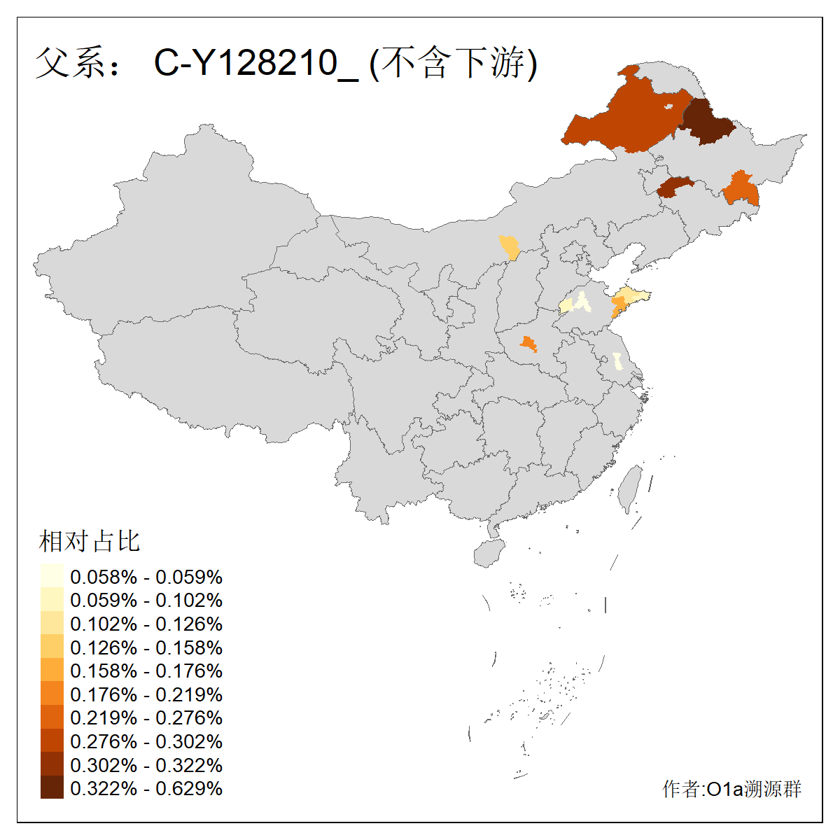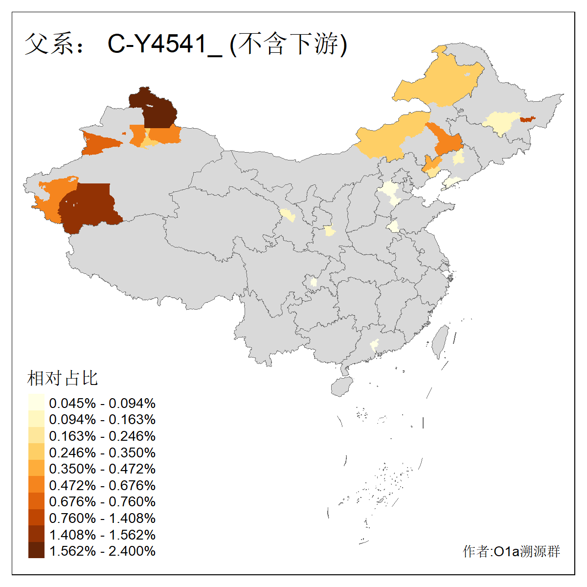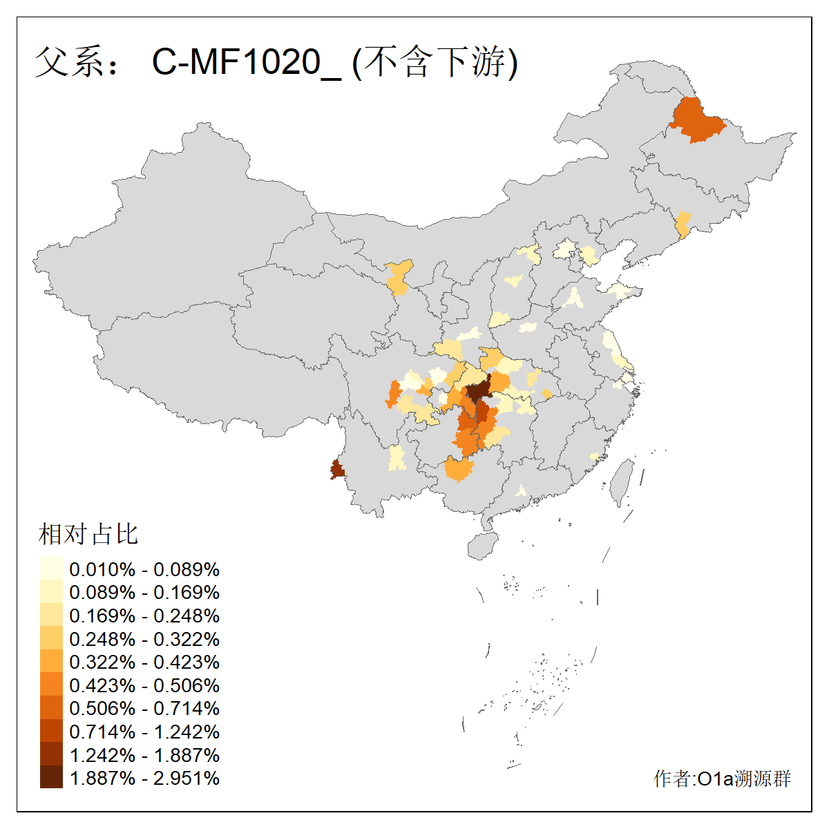 | C-M130_C-M217_C-L1373_C-F3447_C-F1699_C-Y6715_C-M504_C-Y4519_C-Y11121_C-F3796 | 2810 | 0.276% | 553人(含下游) 关:27 李:27 张:21 吴:19 王:18 阿:16 艾:14 赵:14 刘:12 巴:12 何:11 哈:11 包:10 白:10 ![]() | 101人(不含下游) 刘:8 李:8 吴:6 赵:6 张:5 王:5 赫:5 南:4 柴:4 火:3 郭:3 何:2 佟:2 傅:2 ![]() |