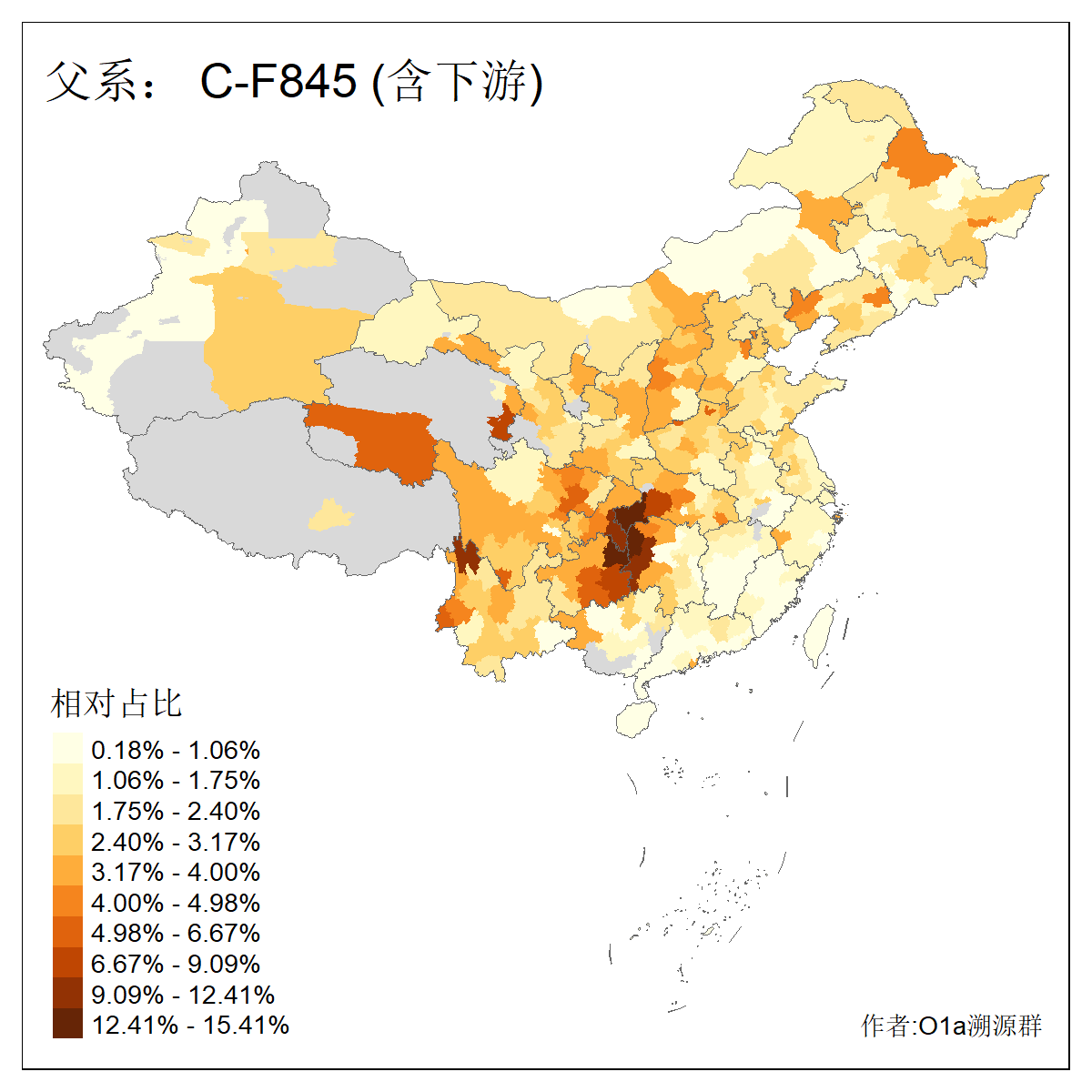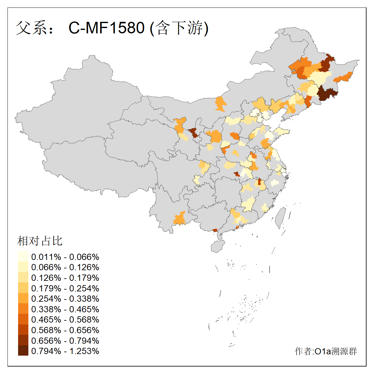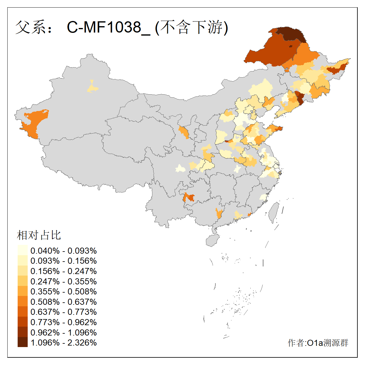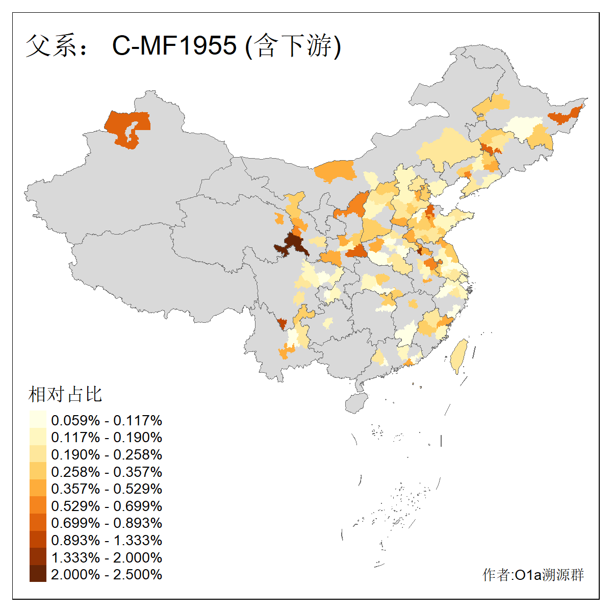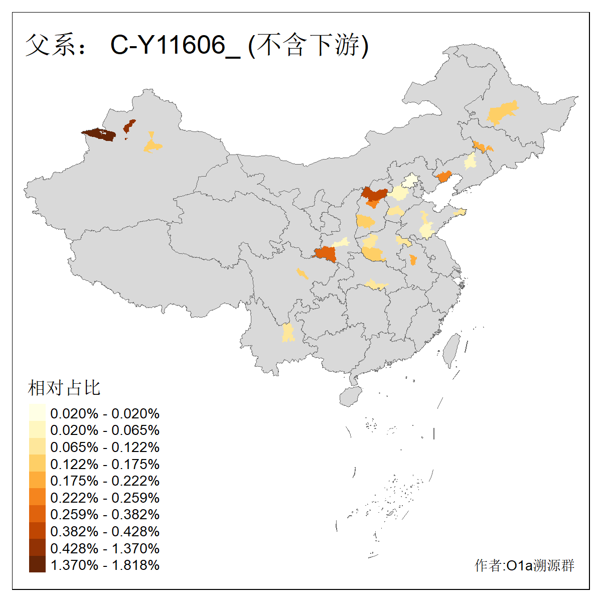 | C-M130_C-M217_C-L1373_C-F3447_C-F1699_C-Y6715_C-M504_C-Y4519_C-Y11121_C-F3796 | 2810 | 0.276% | 553人(含下游) 关:27 李:27 张:21 吴:19 王:18 阿:16 艾:14 赵:14 刘:12 巴:12 何:11 哈:11 包:10 白:10 ![]() | 101人(不含下游) 刘:8 李:8 吴:6 赵:6 张:5 王:5 赫:5 南:4 柴:4 火:3 郭:3 何:2 佟:2 傅:2 ![]() |