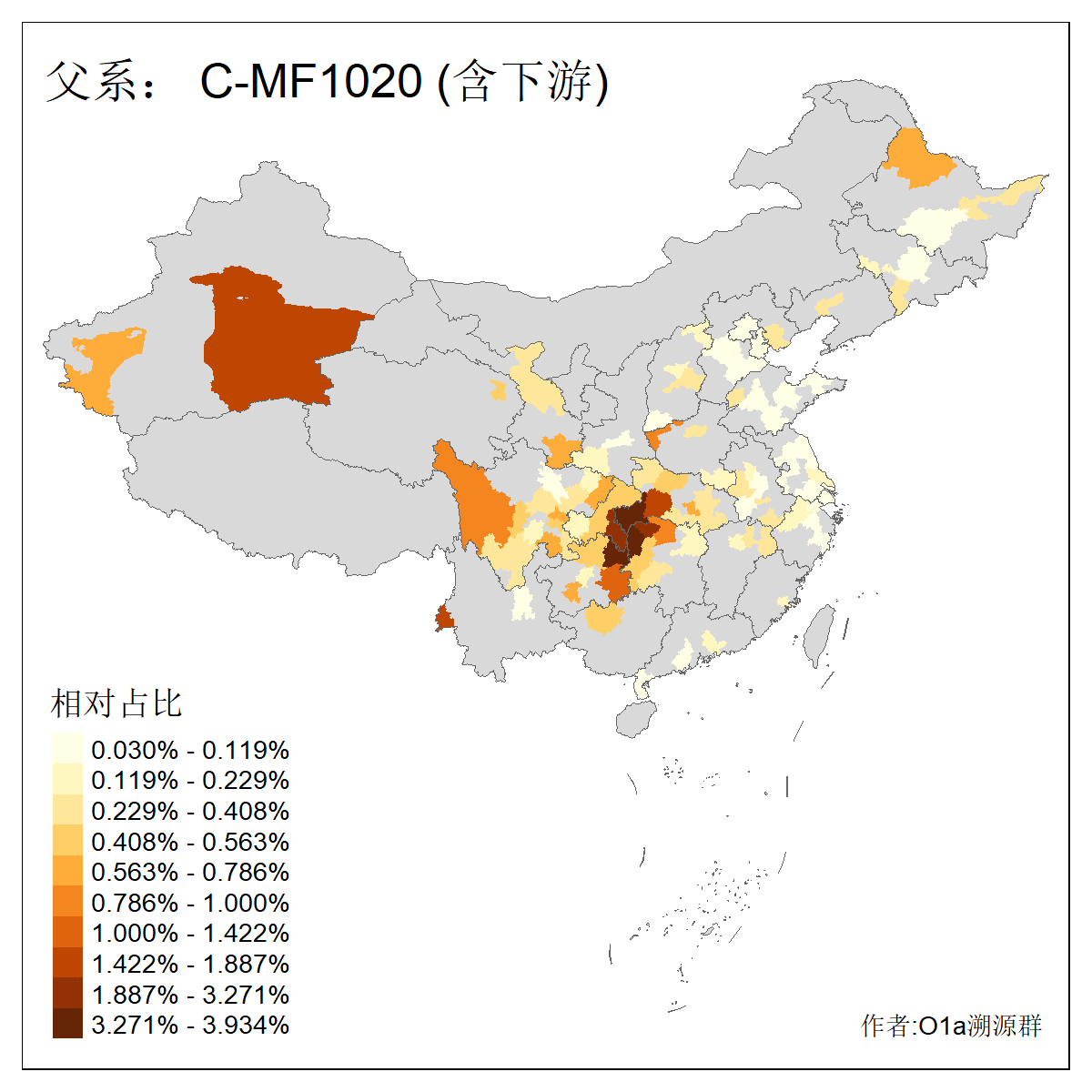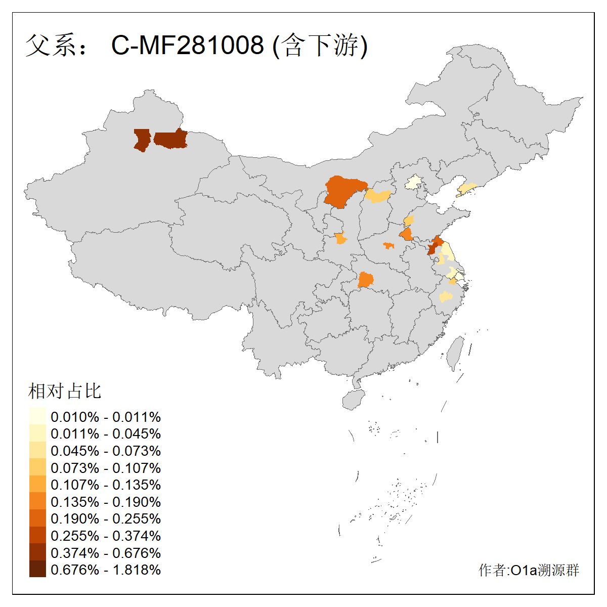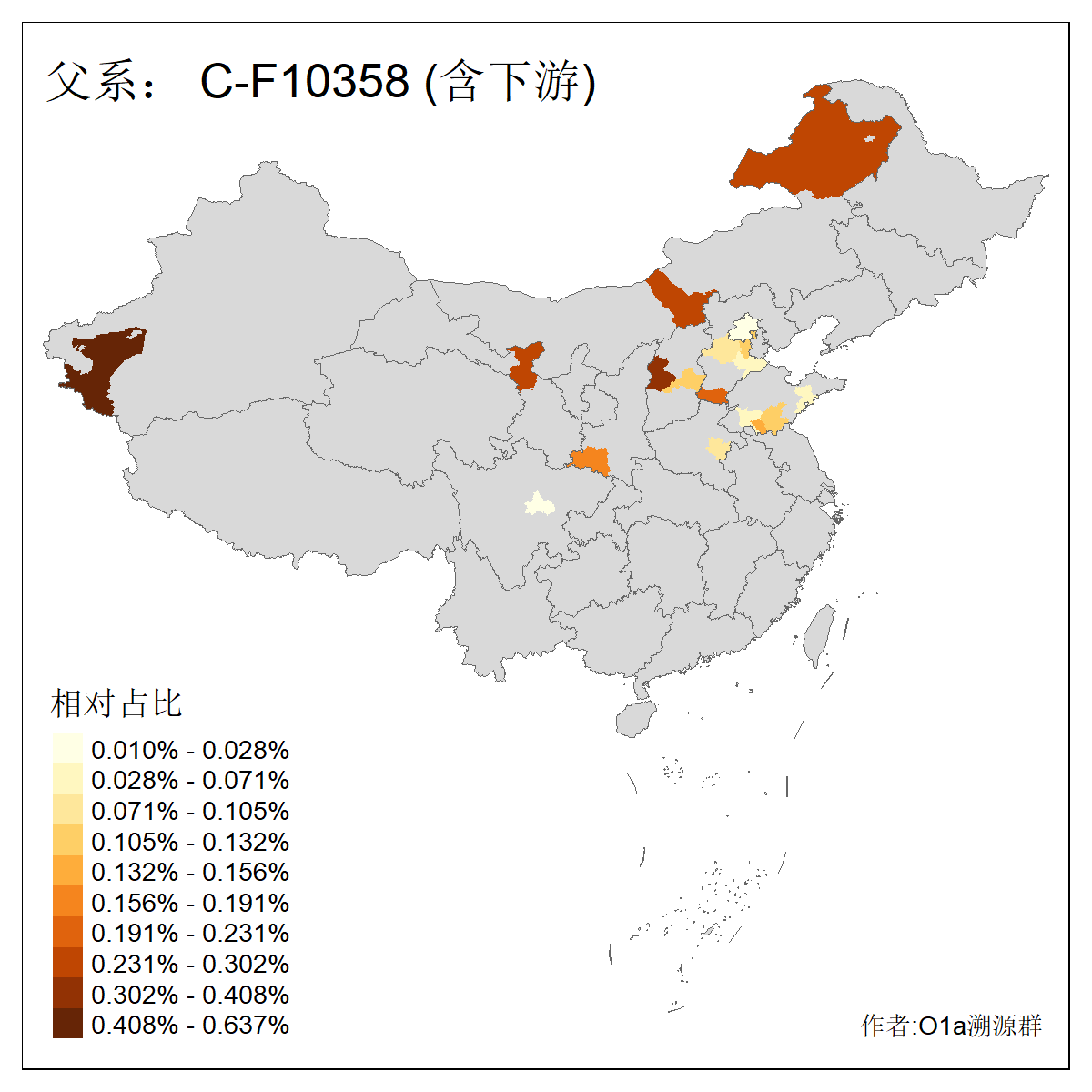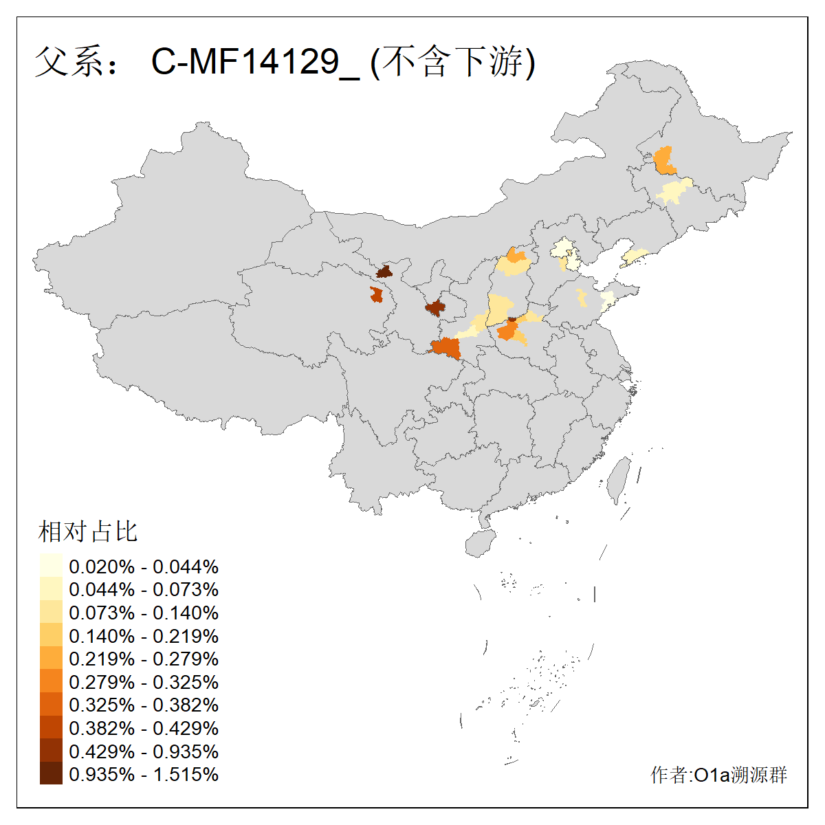 | C-M130_C-M217_C-L1373_C-F3447_C-F1699_C-Y6715_C-M504_C-Y4519_C-Y11121_C-F3796 | 2810 | 0.276% | 553人(含下游) 关:27 李:27 张:21 吴:19 王:18 阿:16 艾:14 赵:14 刘:12 巴:12 何:11 哈:11 包:10 白:10 ![]() | 101人(不含下游) 刘:8 李:8 吴:6 赵:6 张:5 王:5 赫:5 南:4 柴:4 火:3 郭:3 何:2 佟:2 傅:2 ![]() |
