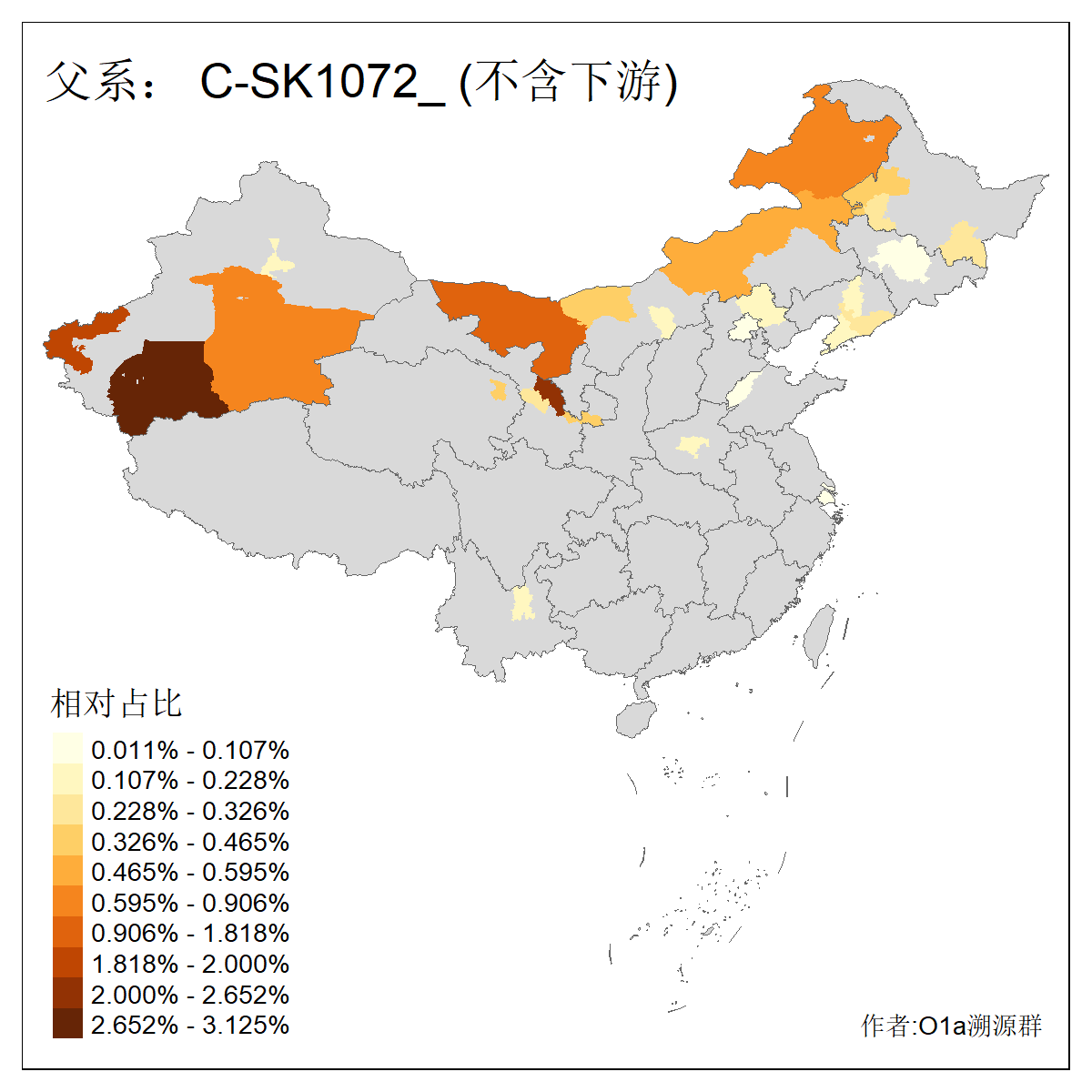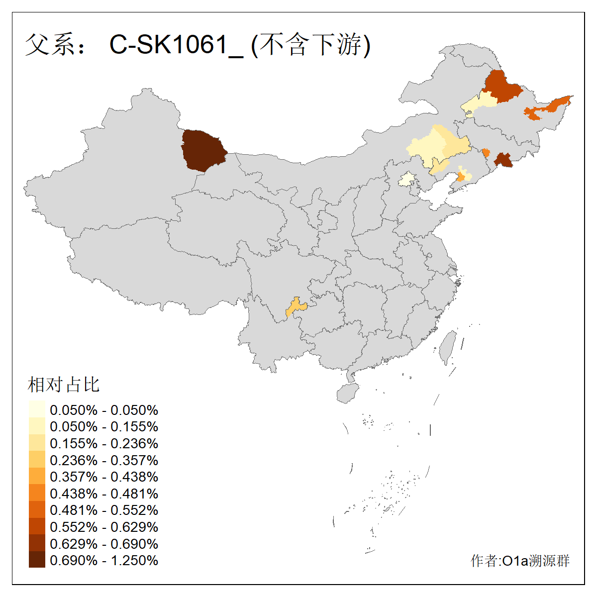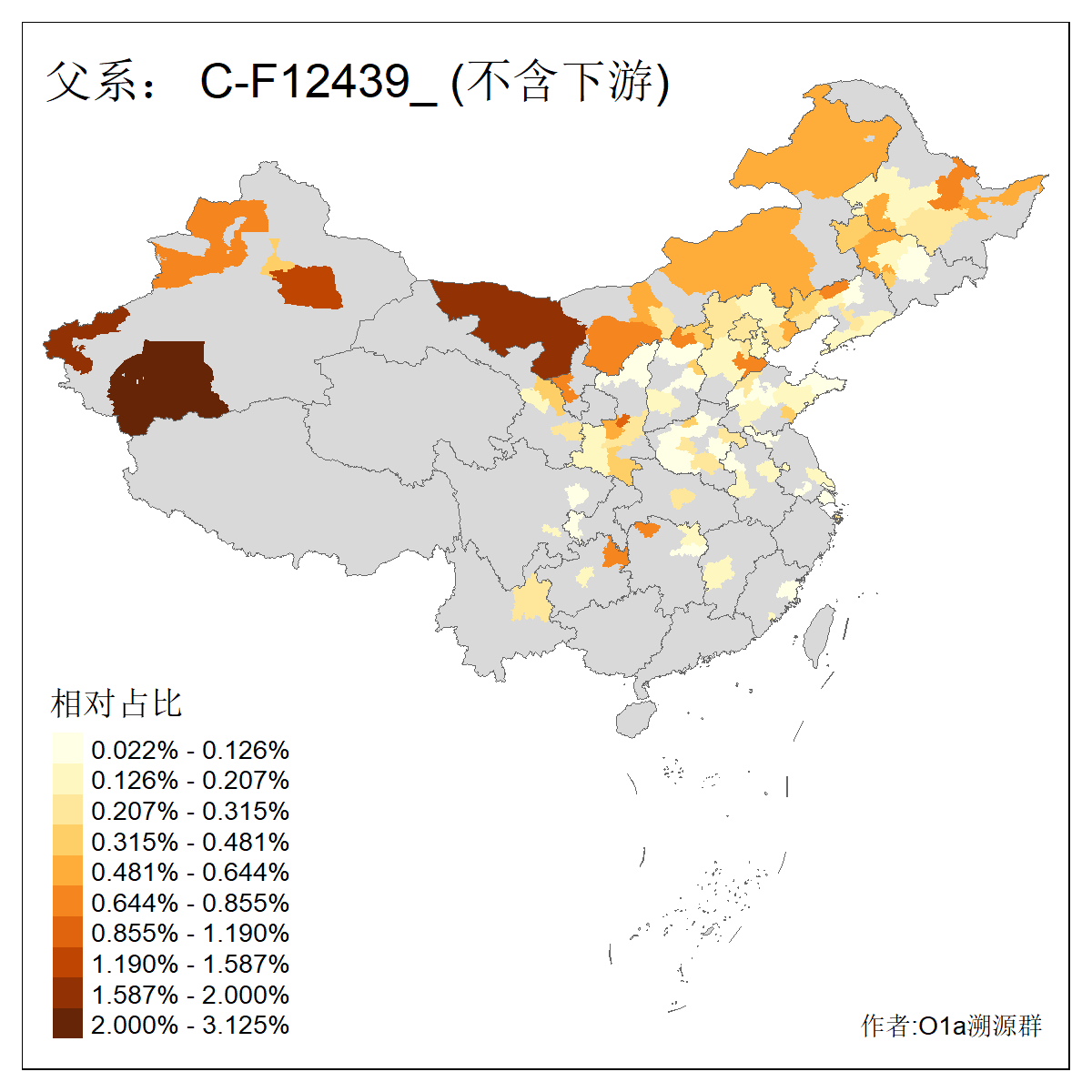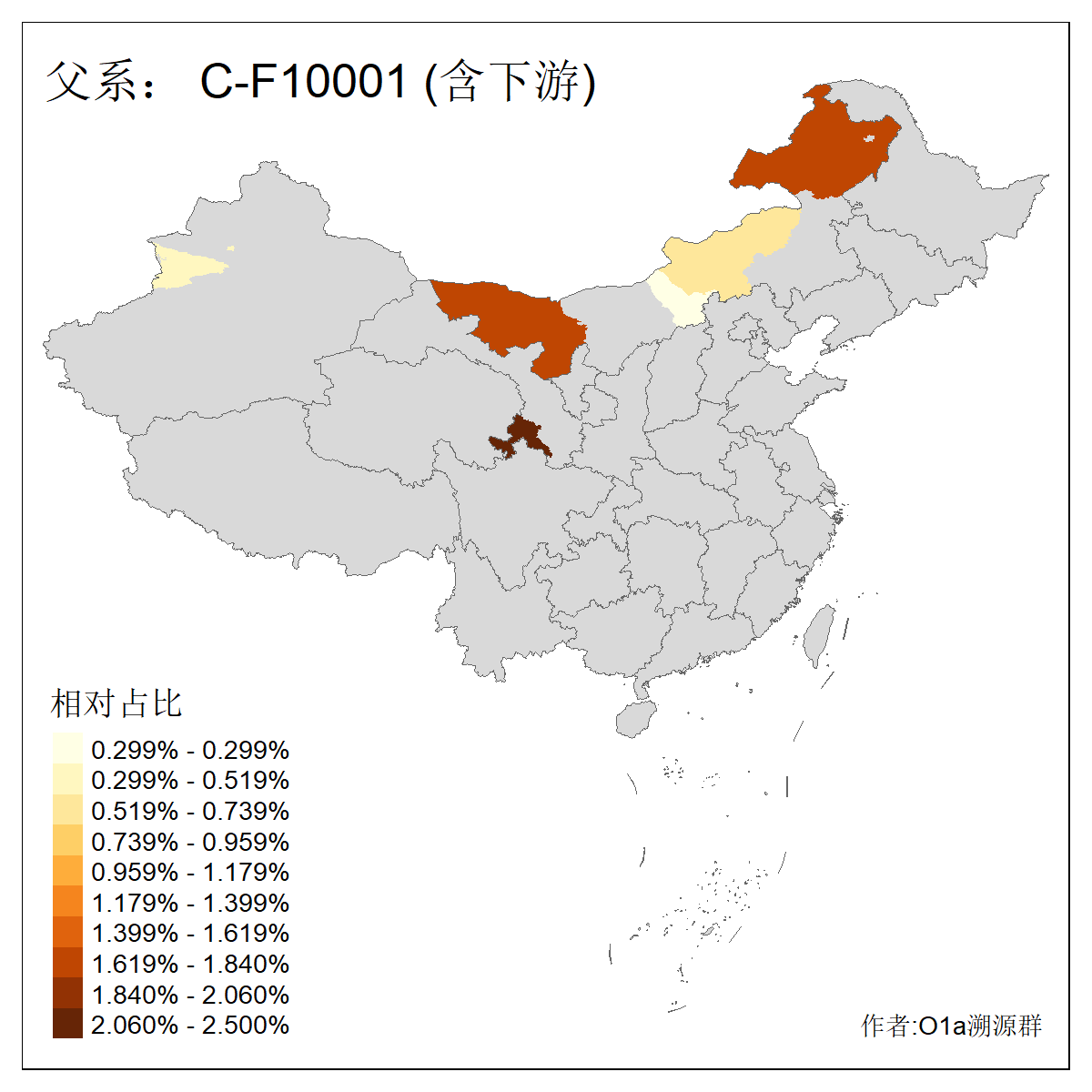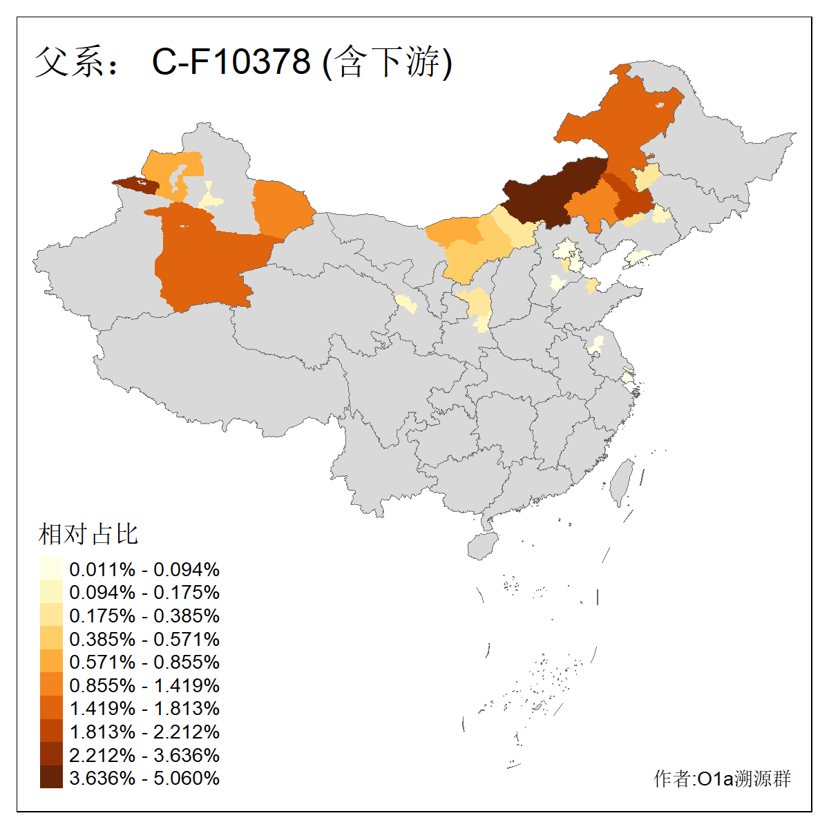 | C-M130_C-M217_C-L1373_C-F3447_C-F1699_C-Y6715_C-M504_C-Y4519_C-Y11121_C-F3796 | 2810 | 0.276% | 553人(含下游) 关:27 李:27 张:21 吴:19 王:18 阿:16 艾:14 赵:14 刘:12 巴:12 何:11 哈:11 包:10 白:10 ![]() | 101人(不含下游) 刘:8 李:8 吴:6 赵:6 张:5 王:5 赫:5 南:4 柴:4 火:3 郭:3 何:2 佟:2 傅:2 ![]() |