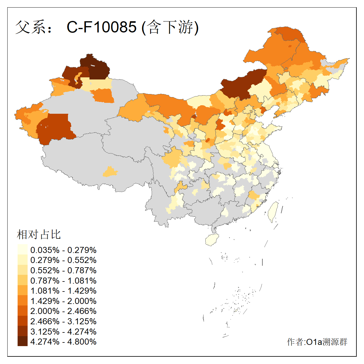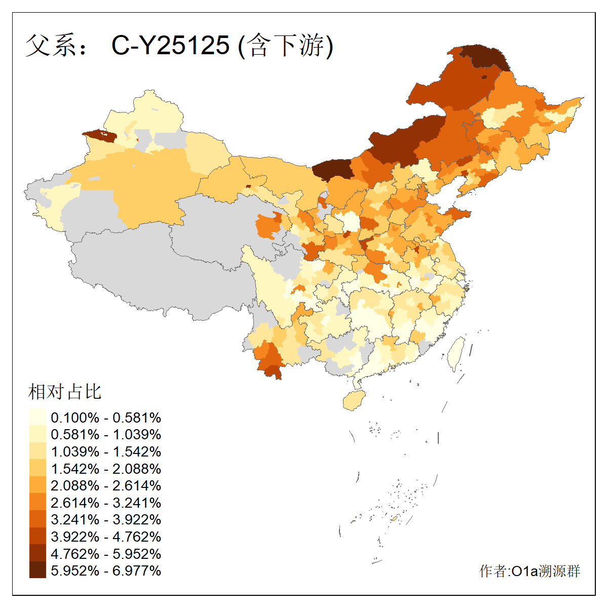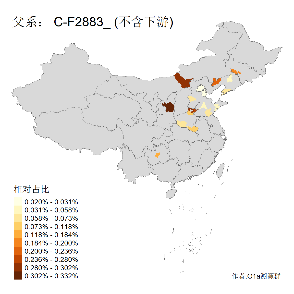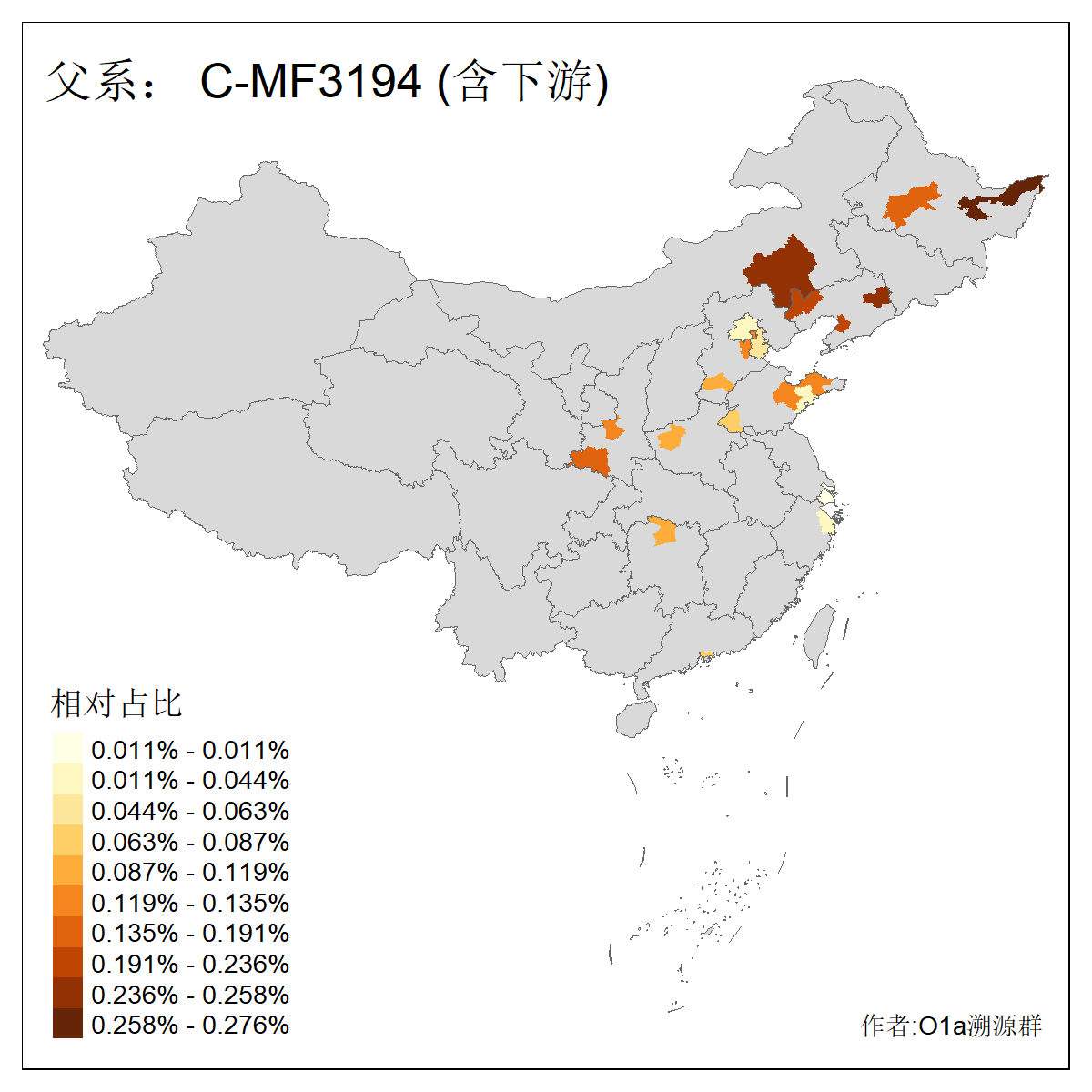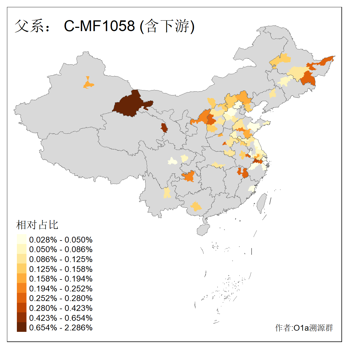 | C-M130_C-M217_C-L1373_C-F3447_C-F1699_C-Y6715_C-M504_C-Y4519_C-Y11121_C-F3796 | 2810 | 0.276% | 553人(含下游) 关:27 李:27 张:21 吴:19 王:18 阿:16 艾:14 赵:14 刘:12 巴:12 何:11 哈:11 包:10 白:10 ![]() | 101人(不含下游) 刘:8 李:8 吴:6 赵:6 张:5 王:5 赫:5 南:4 柴:4 火:3 郭:3 何:2 佟:2 傅:2 ![]() |