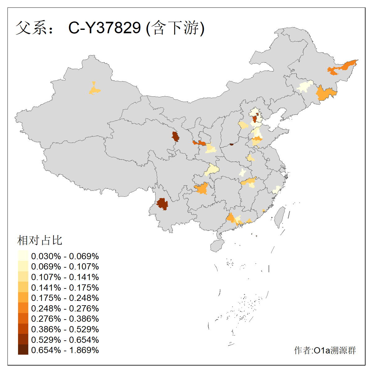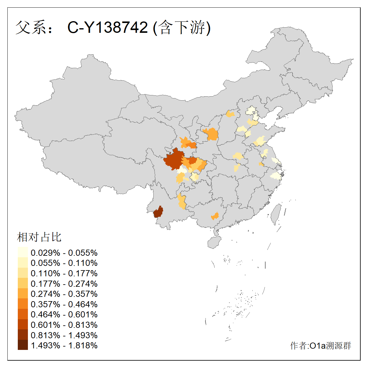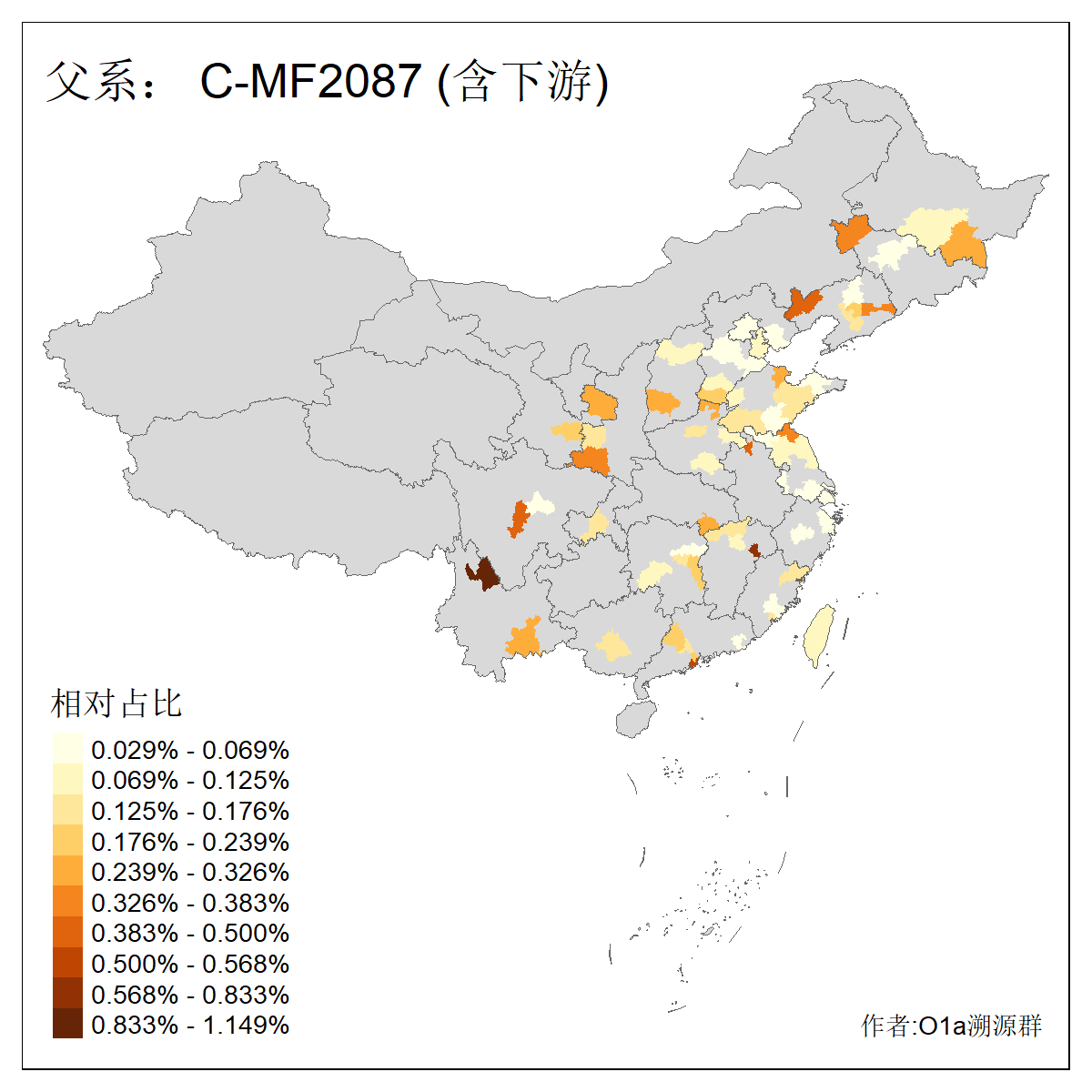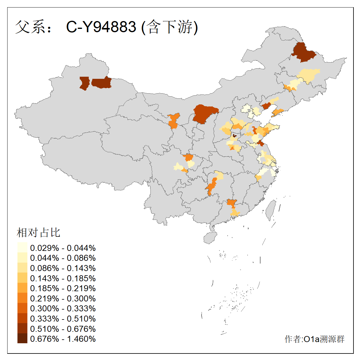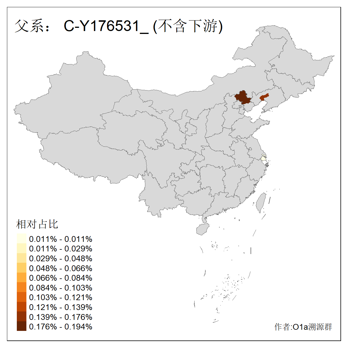 | C-M130_C-M217_C-L1373_C-F3447_C-F1699_C-Y6715_C-M48_C-M86_C-SK1061_C-B469 | 2160 | 0.041% | 116人(含下游) 吴:13 白:9 何:5 张:5 包:4 李:4 阿:4 陶:4 付:3 关:3 赵:3 乌:2 卜:2 叶:2 ![]() | 14人(不含下游) 孙:2 白:2 代:1 全:1 凯:1 吴:1 张:1 李:1 赵:1 陈:1 额:1 高:1 ![]() |