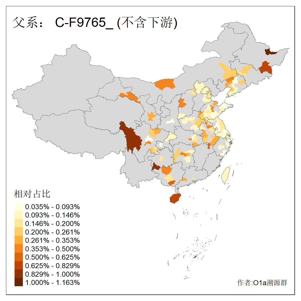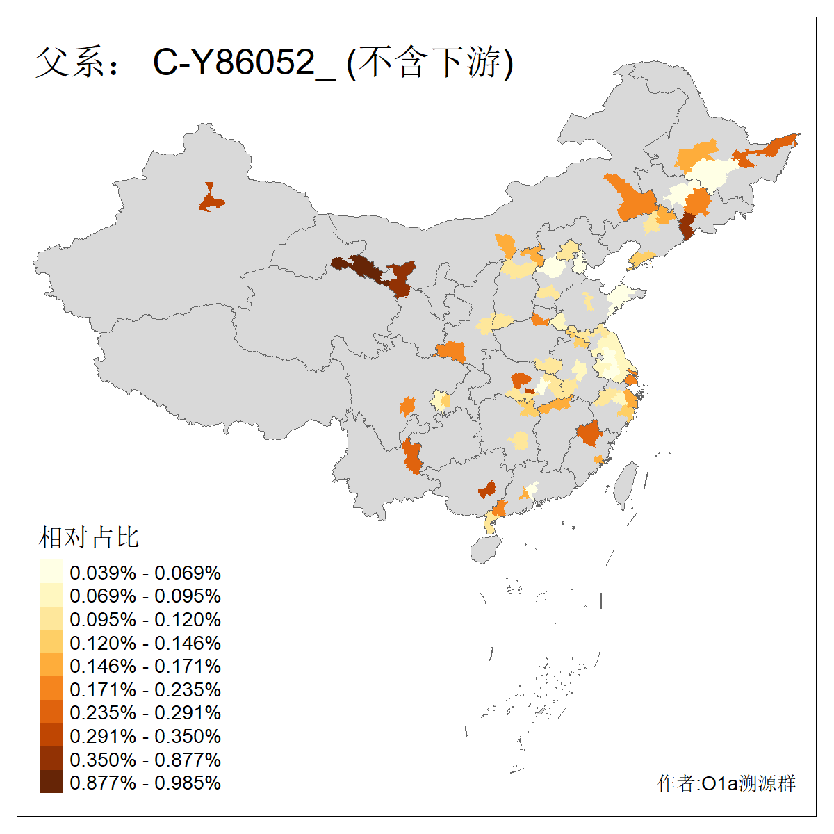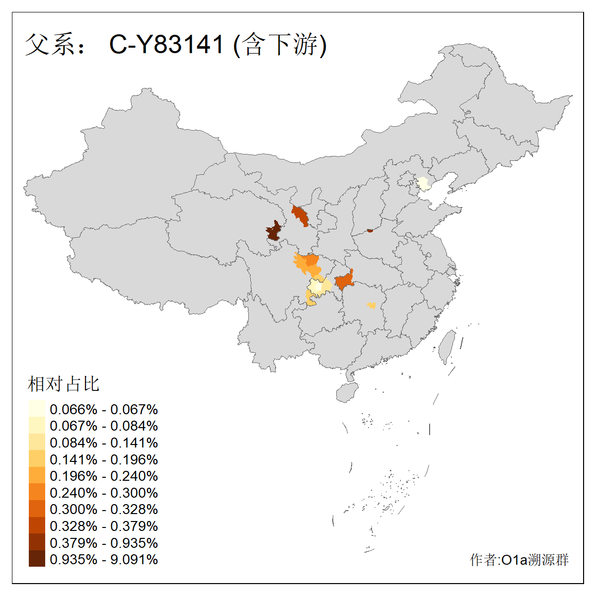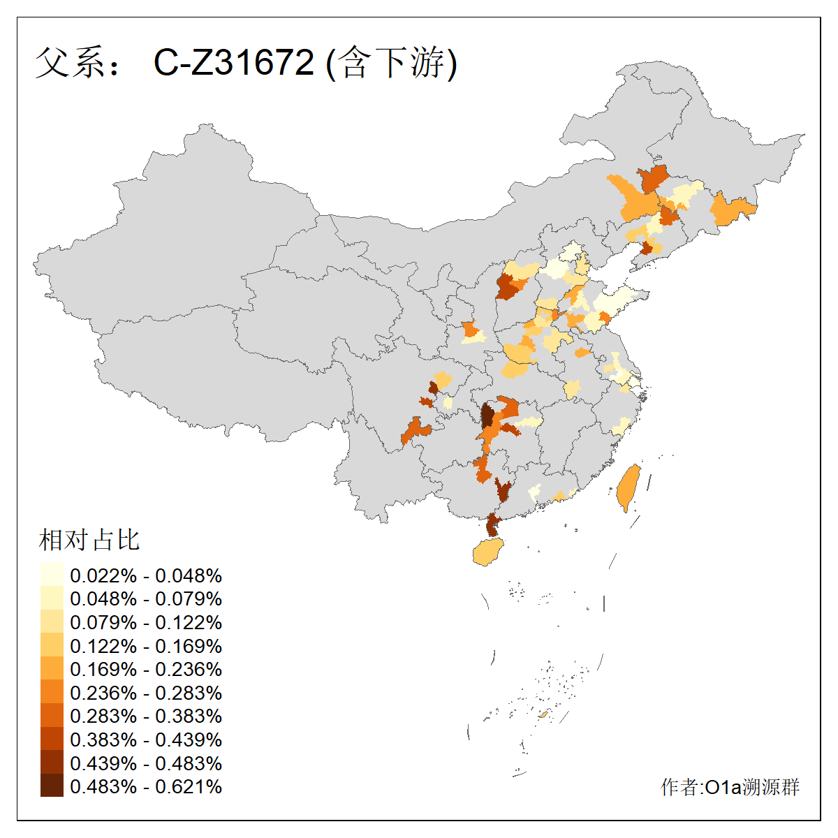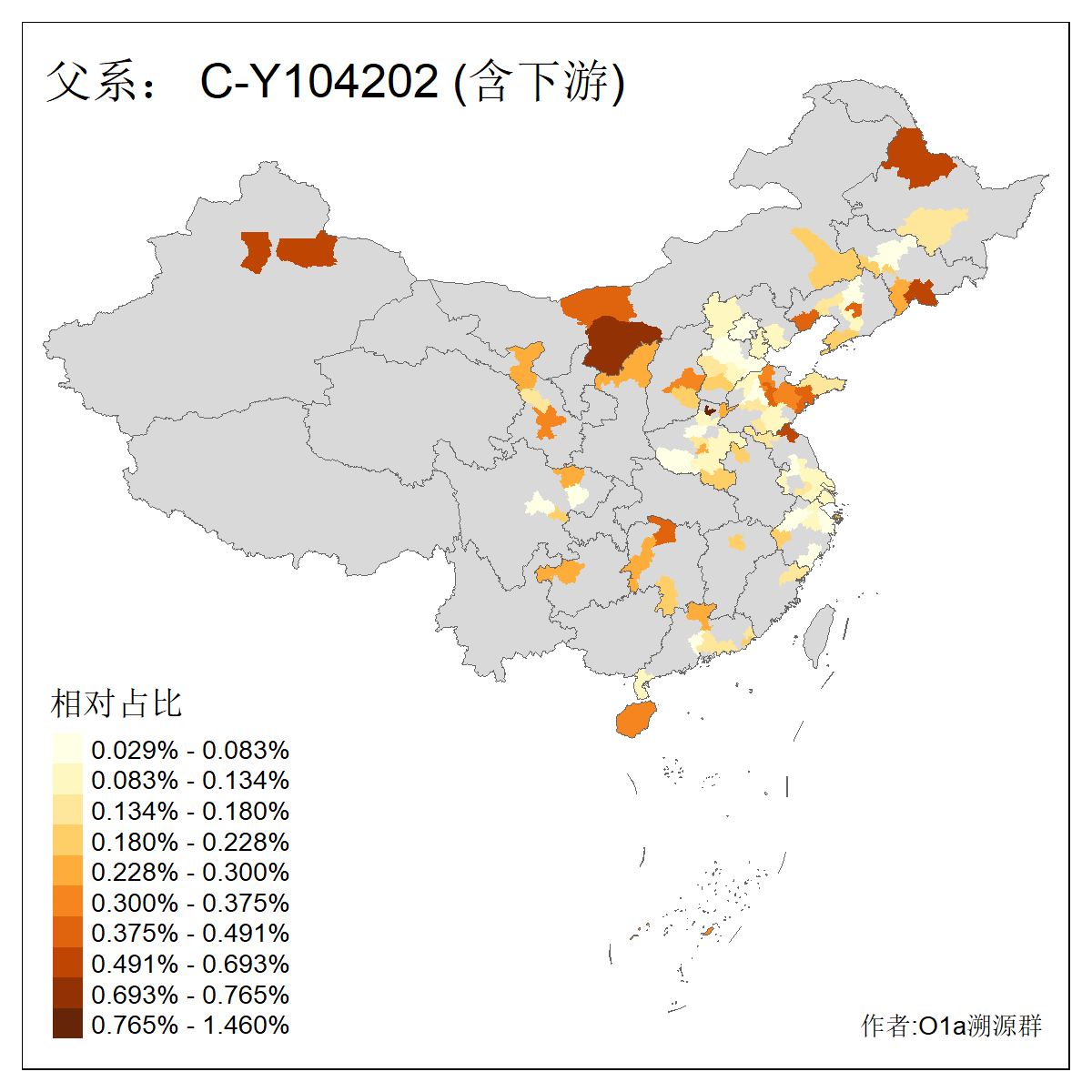 | C-M130_C-M217_C-L1373_C-F3447_C-F1699_C-Y6715_C-M48_C-M86_C-SK1061_C-B469 | 2160 | 0.041% | 116人(含下游) 吴:13 白:9 何:5 张:5 包:4 李:4 阿:4 陶:4 付:3 关:3 赵:3 乌:2 卜:2 叶:2 ![]() | 14人(不含下游) 孙:2 白:2 代:1 全:1 凯:1 吴:1 张:1 李:1 赵:1 陈:1 额:1 高:1 ![]() |