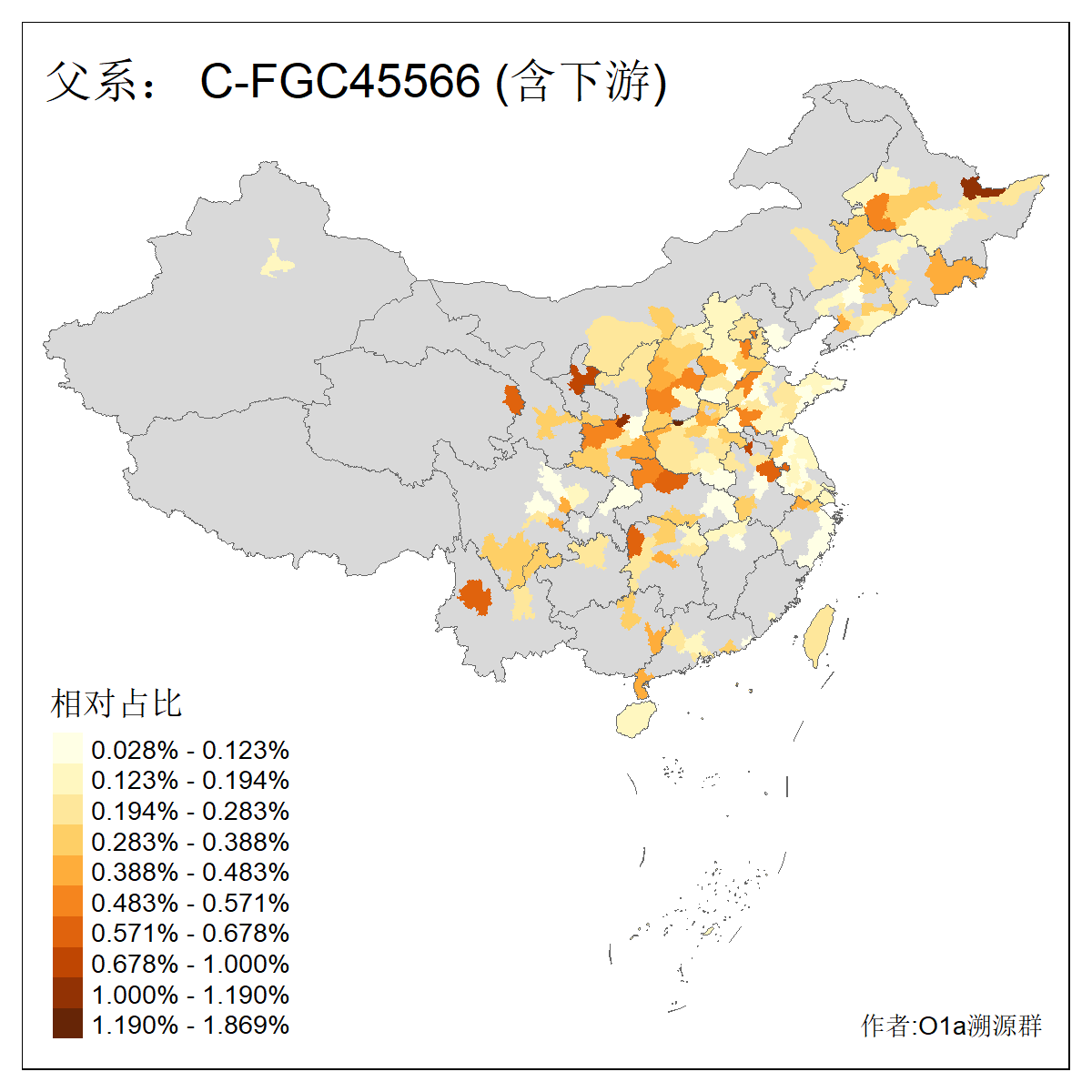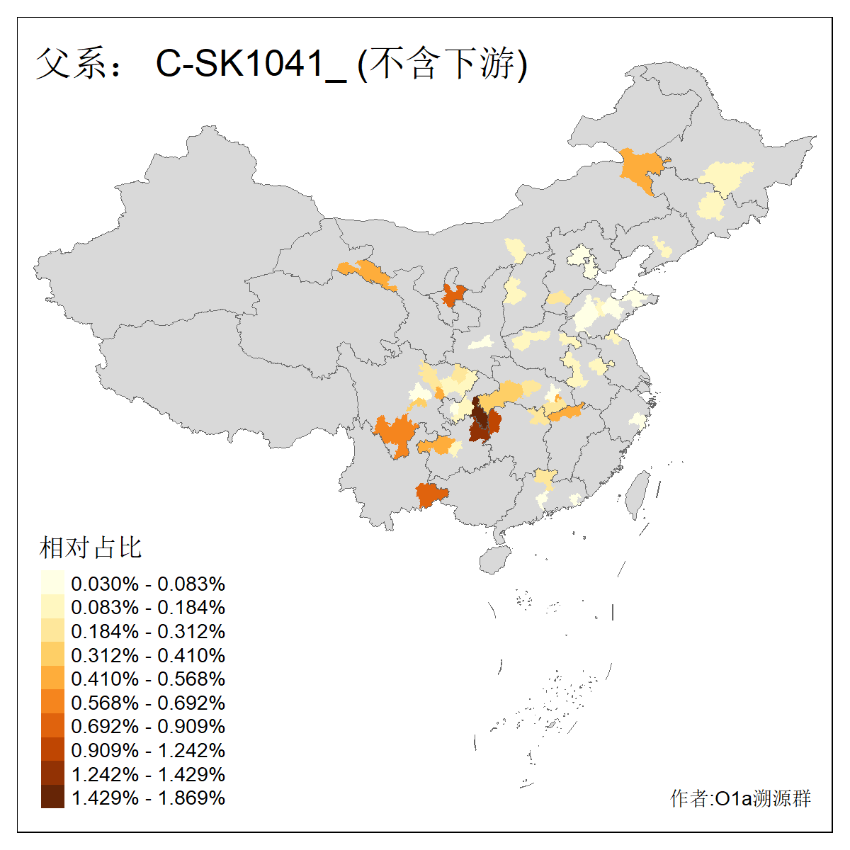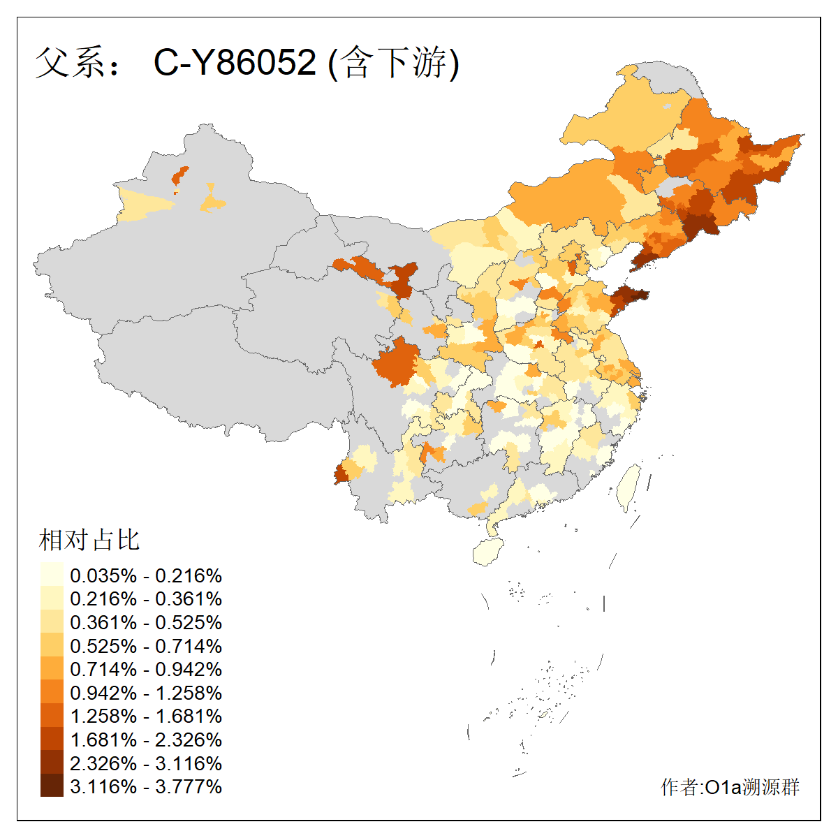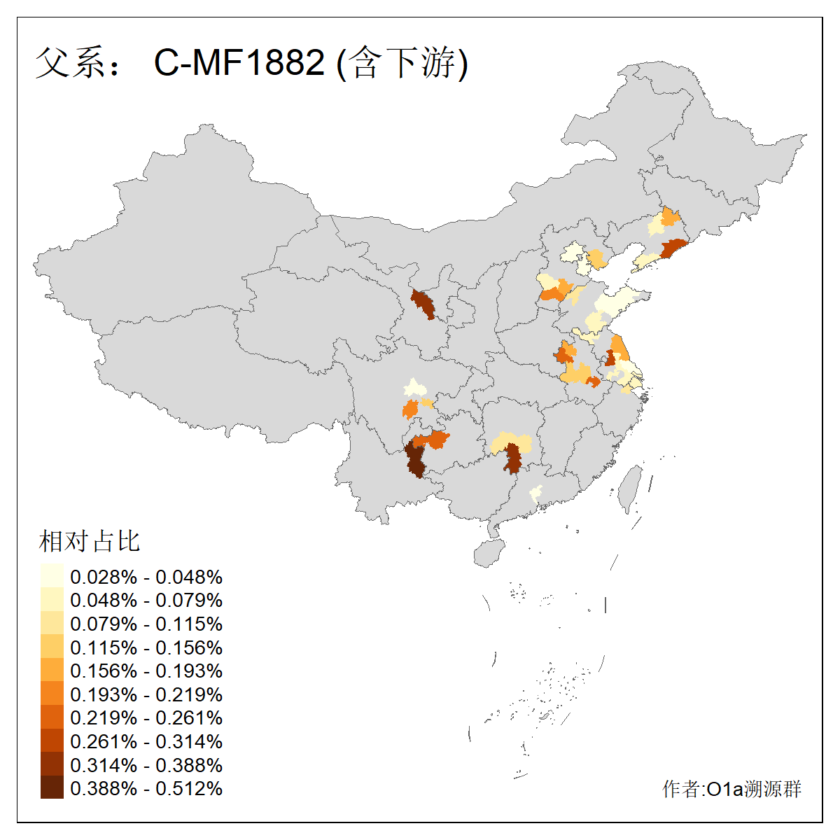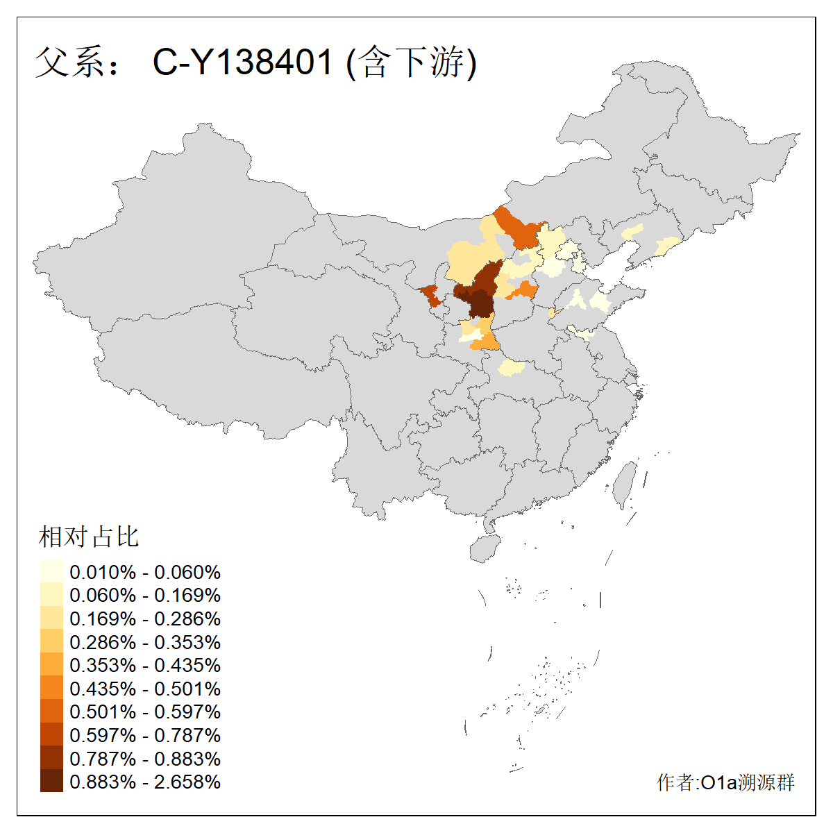 | C-M130_C-M217_C-L1373_C-F3447_C-F1699_C-Y6715_C-M48_C-M86_C-SK1061_C-B469 | 2160 | 0.041% | 116人(含下游) 吴:13 白:9 何:5 张:5 包:4 李:4 阿:4 陶:4 付:3 关:3 赵:3 乌:2 卜:2 叶:2 ![]() | 14人(不含下游) 孙:2 白:2 代:1 全:1 凯:1 吴:1 张:1 李:1 赵:1 陈:1 额:1 高:1 ![]() |