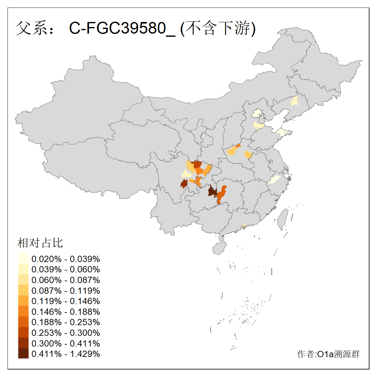 | C-M130_C-M217_C-L1373_C-F3447_C-F1699_C-Y6715_C-M504_C-Y4519_C-Y11121_C-F3796_C-Y11098_C-FGC16589_C-Y4580_C-Y4633 | 1390 | 0.158% | 94人(含下游) 关:8 张:7 李:5 何:4 包:4 巴:4 王:3 艾:3 陈:3 叶:2 吴:2 安:2 白:2 阿:2 ![]() | 4人(不含下游) 何:1 关:1 吴:1 孙:1 ![]() |