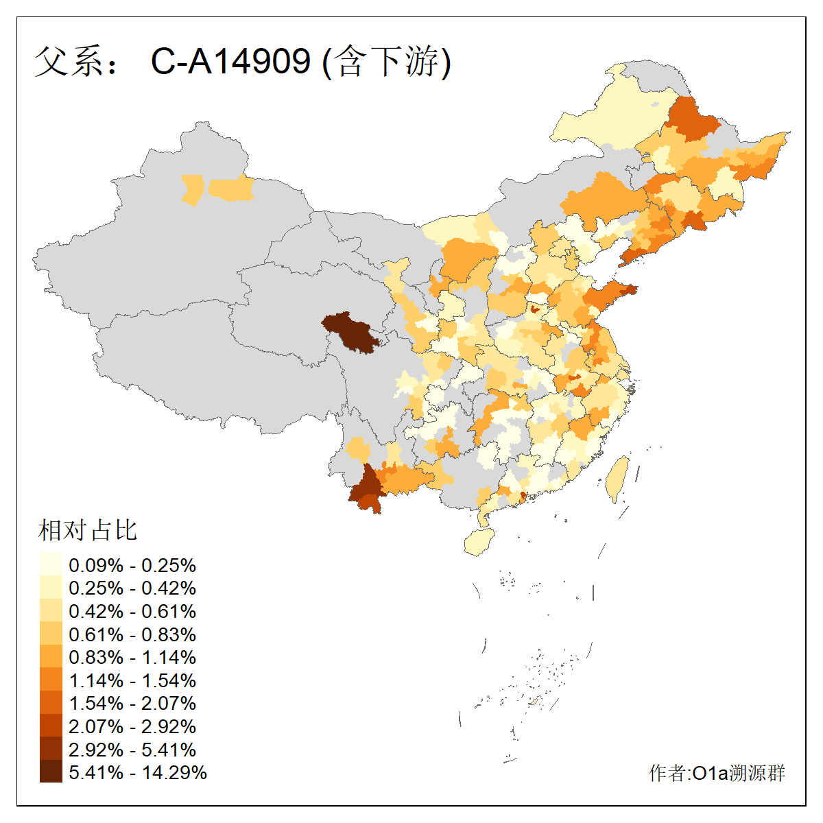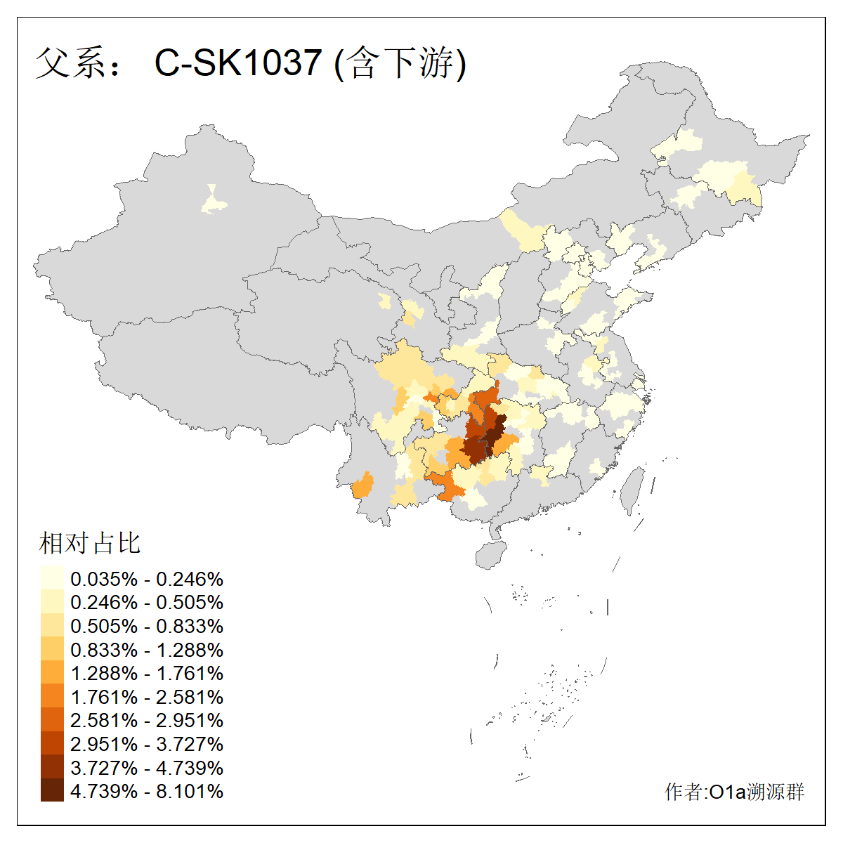 | C-M130_C-M217_C-F1067_C-CTS2_C-F978 | 10950 | 7.616% | 18667人(含下游) 王:1593 张:1346 李:1318 刘:955 陈:691 杨:653 赵:343 周:340 孙:302 马:294 徐:292 吴:282 黄:269 朱:228 ![]() | 0人(不含下游) |