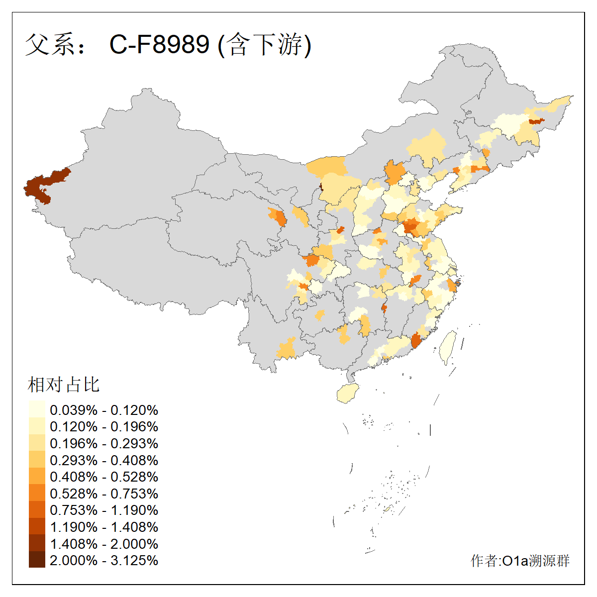 | C-M130_C-M217_C-F1067_C-CTS2_C-F978_C-F3895_C-CTS2657_C-A14901 | 7190 | 0.580% | 1356人(含下游) 王:123 李:107 张:89 陈:60 刘:59 林:53 孙:34 谭:33 徐:30 朱:30 杨:30 赵:27 马:24 郑:22 ![]() | 4人(不含下游) 符:2 严:1 李:1 ![]() |