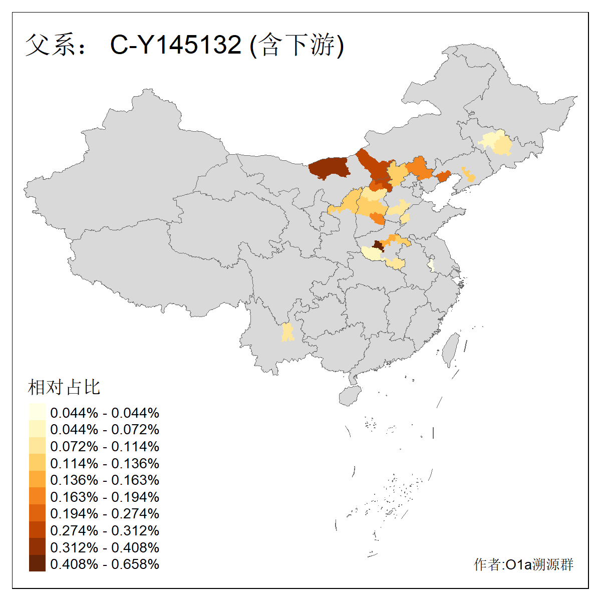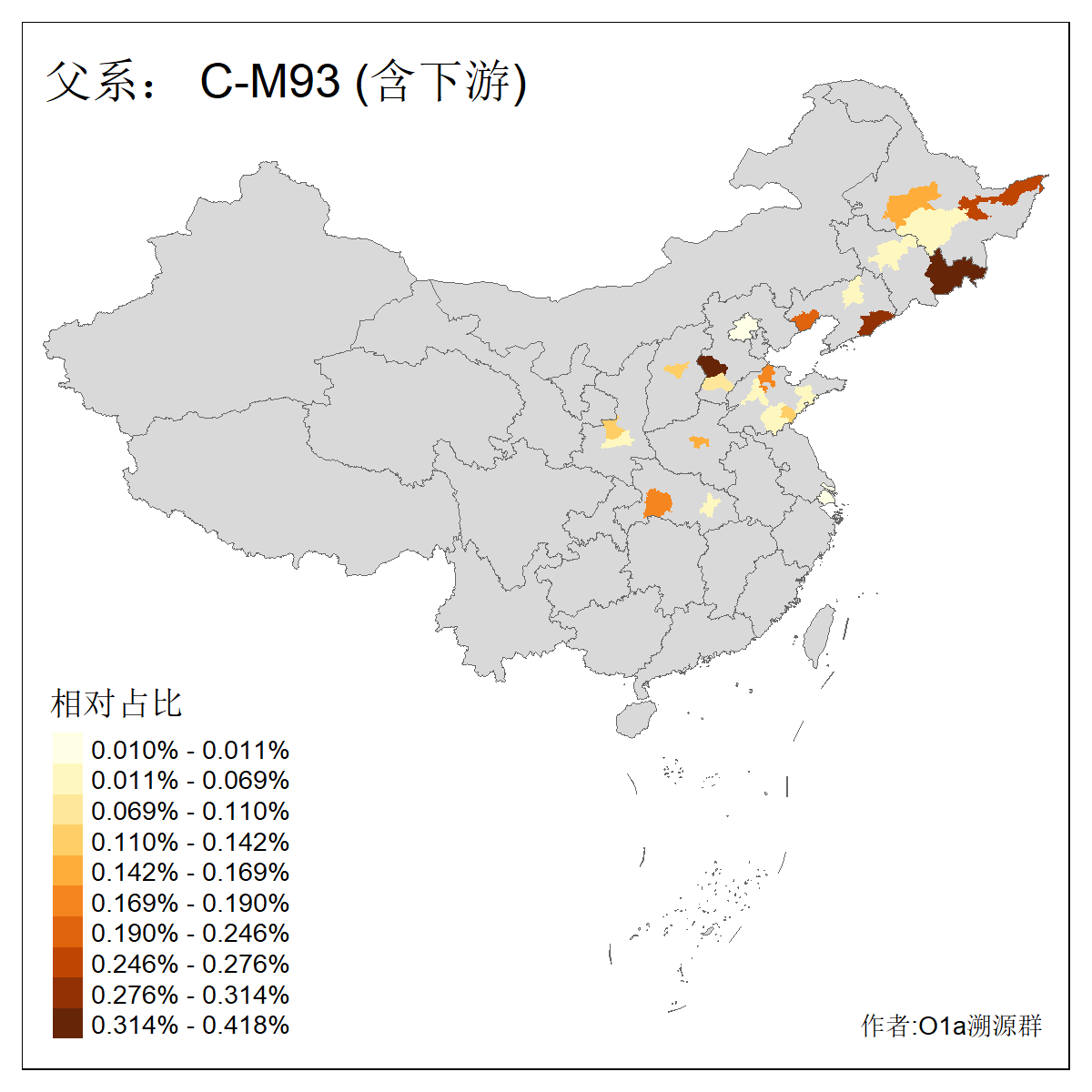 | C-M130_C-M217_C-L1373_C-F3447_C-F1699_C-Y6715_C-Y10418_C-FGC28903_C-F1756_C-F12632_C-Y10417_C-F3830 | 4820 | 0.440% | 1079人(含下游) 王:91 刘:85 张:77 李:77 赵:36 关:29 杨:25 马:24 高:19 吴:18 白:18 陈:17 孙:16 田:12 ![]() | 149人(不含下游) 李:16 张:13 刘:10 王:7 吴:5 翟:5 孙:4 于:3 白:3 陈:3 乔:2 何:2 姚:2 孟:2 ![]() |