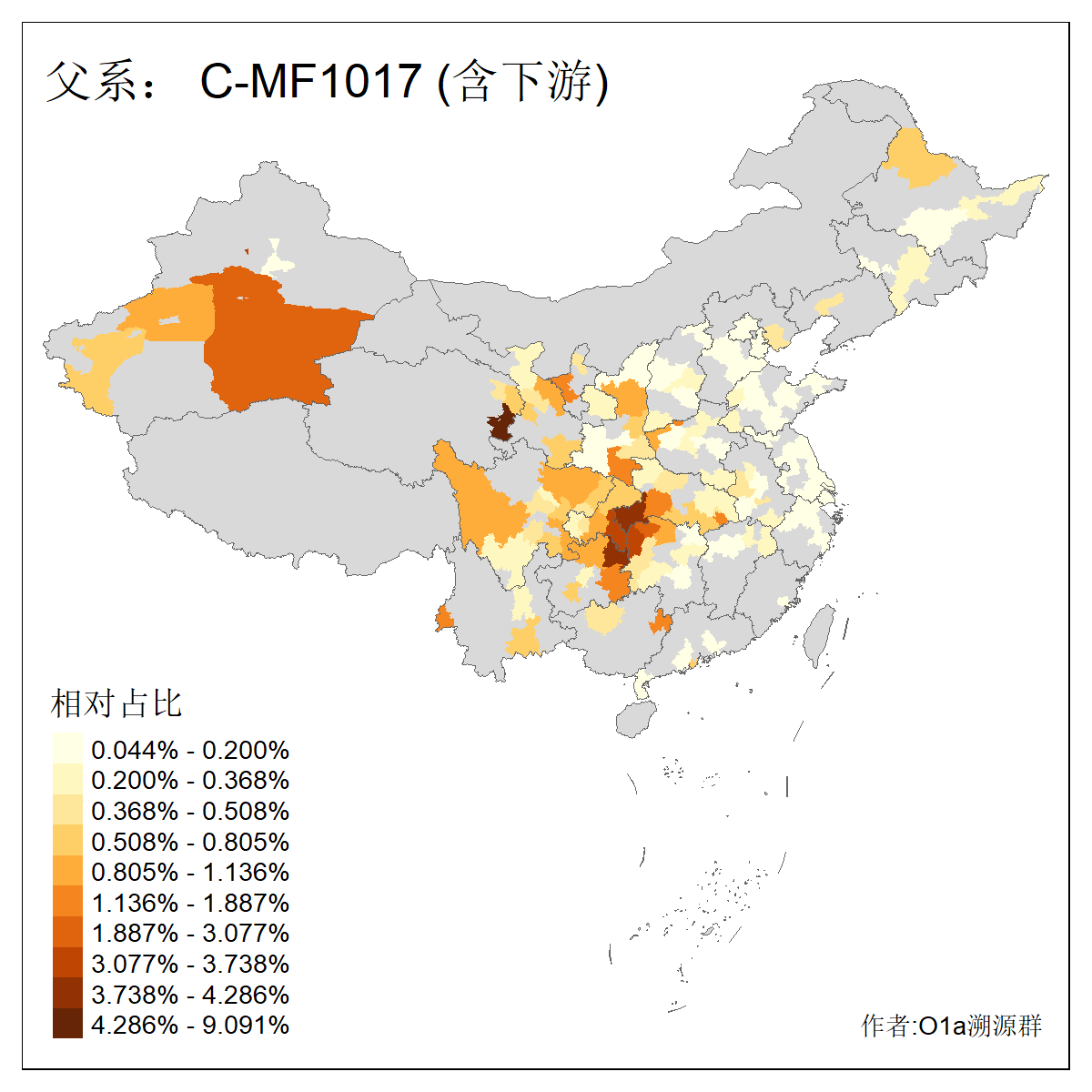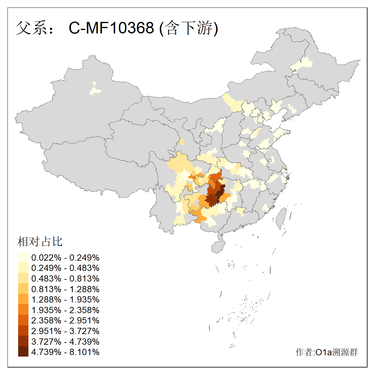 | C-M130_C-M217_C-F1067_C-CTS2_C-F978_C-F3895_C-CTS2657_C-CTS11990_C-CTS8579_C-Y25125_C-CTS8629_C-MF1028_C-F24074 | 4860 | 0.022% | 49人(含下游) 李:5 杨:4 王:4 胡:4 张:3 刘:2 朱:2 申:2 谢:2 陈:2 马:2 丁:1 万:1 卜:1 ![]() | 7人(不含下游) 李:2 王:1 申:1 舒:1 高:1 ![]() |