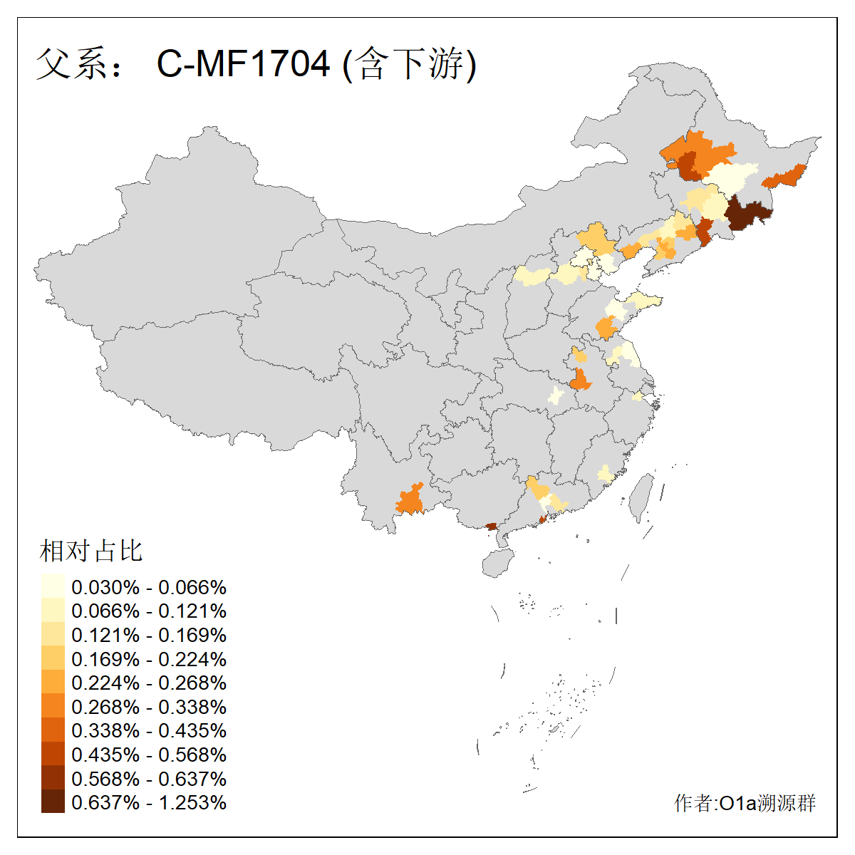 | C-M130_C-M217_C-F1067_C-CTS2_C-F978_C-F3895_C-CTS2657_C-A14901_C-MF1580 | 2610 | 0.061% | 121人(含下游) 李:15 金:11 佟:6 刘:6 王:6 高:6 程:5 郑:4 张:3 葛:3 郭:3 任:2 何:2 宋:2 ![]() | 44人(不含下游) 李:7 刘:4 张:3 王:3 葛:3 何:2 郭:2 高:2 乔:1 兰:1 冯:1 包:1 左:1 杨:1 ![]() |