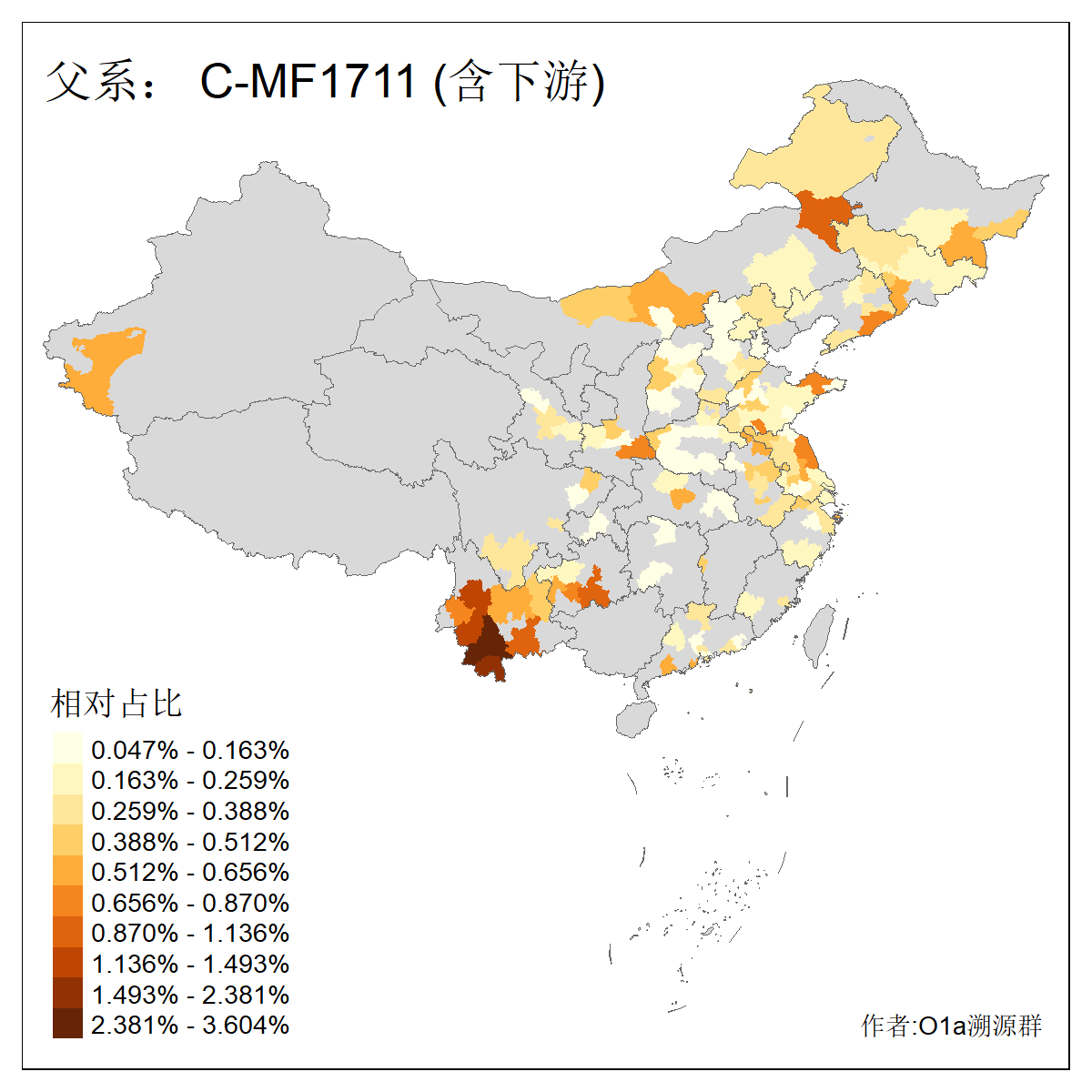 | C-M130_C-F3393_C-F1370_C-AM00694_C-AM00848 | 4310 | 0.198% | 293人(含下游) 李:26 张:17 陈:16 杨:13 梁:13 黄:13 刘:12 罗:12 王:11 赵:11 向:5 吴:5 邱:5 马:5 ![]() | 72人(不含下游) 李:10 梁:5 刘:4 陈:4 罗:3 蒙:3 马:3 高:3 张:2 潘:2 牟:2 陆:2 韦:2 余:1 ![]() |