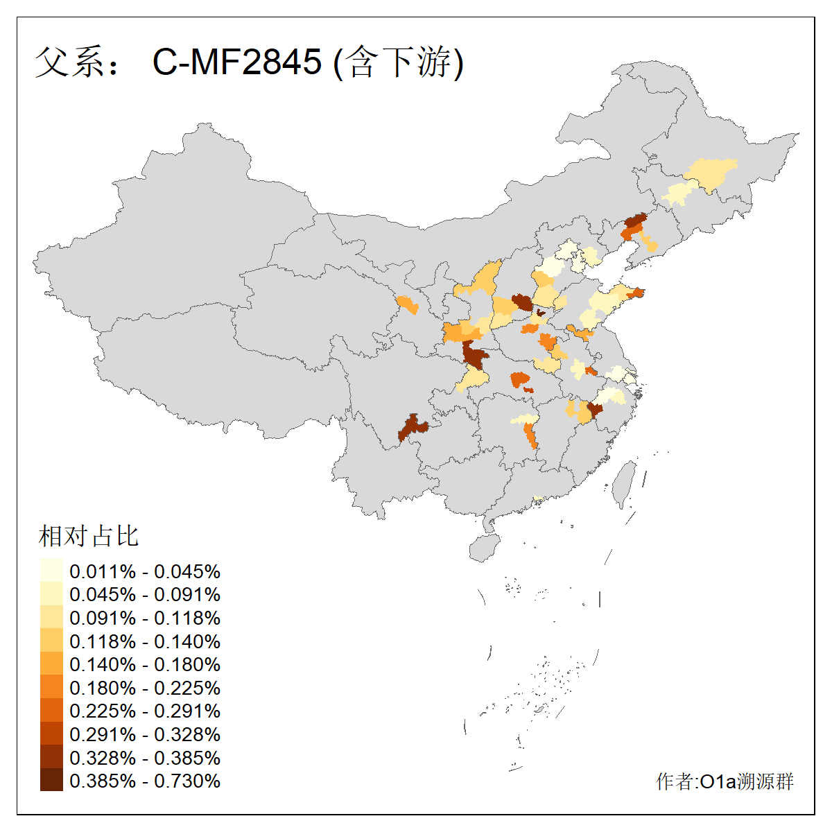 | C-M130_C-M217_C-F1067_C-CTS2_C-F978_C-F3895_C-CTS2657_C-A14901_C-A14909_C-A14908 | 7120 | 0.173% | 443人(含下游) 李:38 王:32 陈:28 张:25 刘:21 周:16 郑:16 杨:13 徐:12 吴:10 董:9 胡:8 袁:8 黄:8 ![]() | 21人(不含下游) 刘:4 周:2 高:2 严:1 凌:1 商:1 张:1 徐:1 李:1 梅:1 田:1 薛:1 贾:1 郭:1 ![]() |