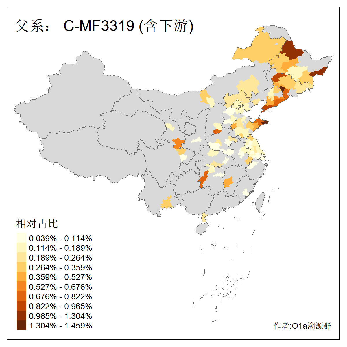 | C-M130_C-M217_C-F1067_C-CTS2_C-F978_C-F3895_C-CTS2657_C-CTS11990_C-CTS8579 | 7210 | 1.525% | 3770人(含下游) 王:355 李:279 张:269 刘:205 杨:132 陈:122 孙:82 赵:70 宋:62 周:60 吴:59 高:57 郭:51 马:51 ![]() | 108人(不含下游) 王:16 张:8 刘:4 孙:4 徐:4 陈:4 朱:3 李:3 杨:3 马:3 黄:3 周:2 姚:2 林:2 ![]() |