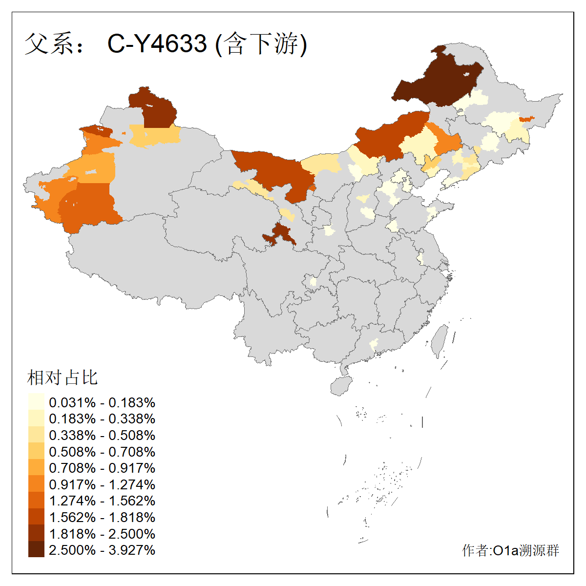 | C-M130_C-M217_C-L1373_C-F3447_C-F1699_C-Y6715_C-M504 | 8600 | 0.337% | 730人(含下游) 赵:47 李:36 张:34 关:29 王:26 吴:20 马:17 阿:16 刘:14 白:14 艾:14 何:13 巴:12 哈:11 ![]() | 10人(不含下游) 赵:3 张:1 洪:1 祖:1 肖:1 鄂:1 马:1 ![]() |