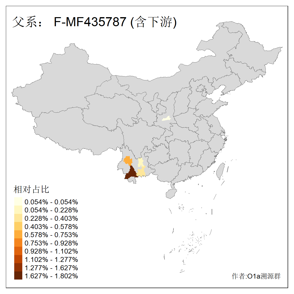 | F-M89_F-Y27277_F-M427_F-MF77117 | 3830 | 0.117% | 119人(含下游) 李:24 张:7 陈:7 杨:5 王:4 方:3 普:3 段:3 罗:3 赵:3 阿:3 刘:2 唐:2 姜:2 ![]() | 21人(不含下游) 李:6 唐:2 张:2 刘:1 可:1 姜:1 施:1 易:1 朱:1 柏:1 毕:1 法:1 邓:1 都:1 ![]() |