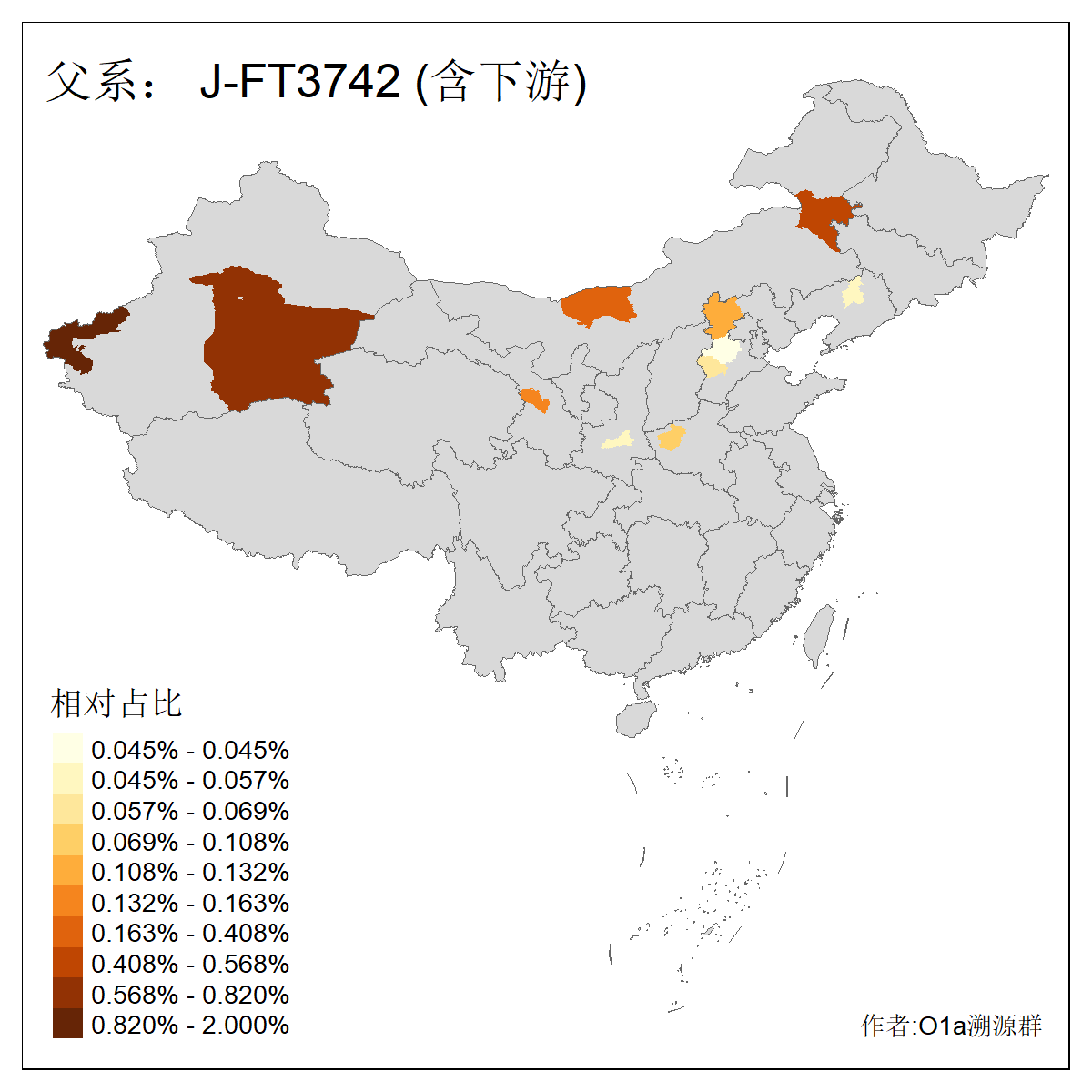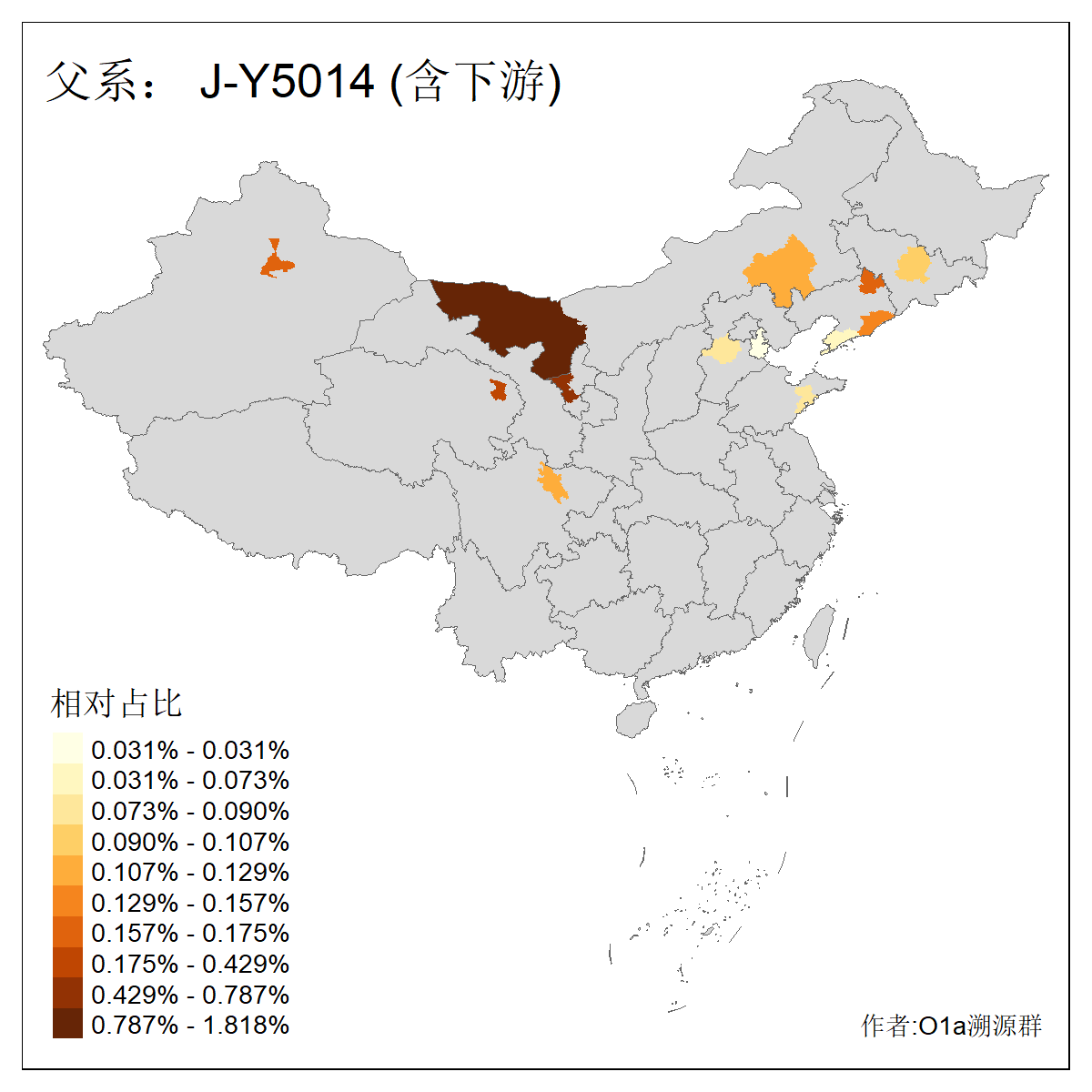 | J-M304_J-M172_J-M410_J-PF4610_J-F4326_J-PF5087_J-AM01359_J-L24_J-Z400_J-L25_J-F3133 | 8140 | 0.146% | 104人(含下游) 张:10 程:9 陈:7 刘:6 王:6 杨:5 李:4 崔:3 钟:3 马:3 何:2 吴:2 姚:2 安:2 ![]() | 43人(不含下游) 刘:4 张:4 杨:4 何:2 安:2 李:2 王:2 程:2 马:2 魏:2 丛:1 余:1 包:1 向:1 ![]() |