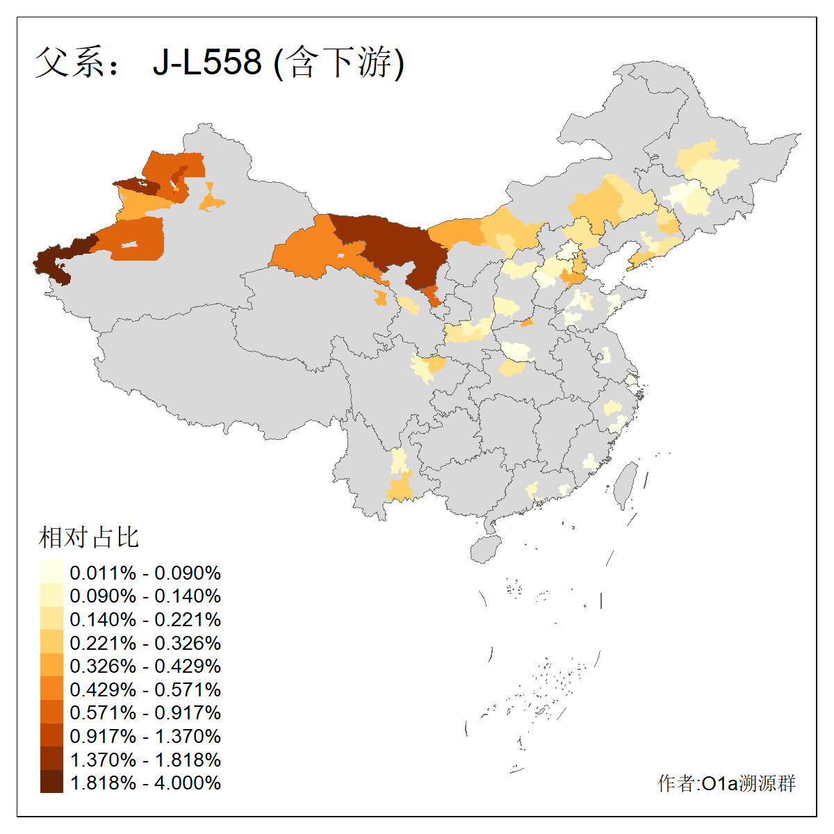 | J-M304_J-M172_J-M410_J-PF4610_J-F4326_J-PF5087_J-PF5125_J-PF5119_J-L558_J-M67 | 11740 | 0.041% | 80人(含下游) 尹:10 刘:7 戴:7 李:5 王:4 马:4 侯:3 韦:3 何:2 崔:2 艾:2 董:2 赵:2 黄:2 ![]() | 10人(不含下游) 刘:2 李:2 王:2 侯:1 路:1 郭:1 黄:1 ![]() |