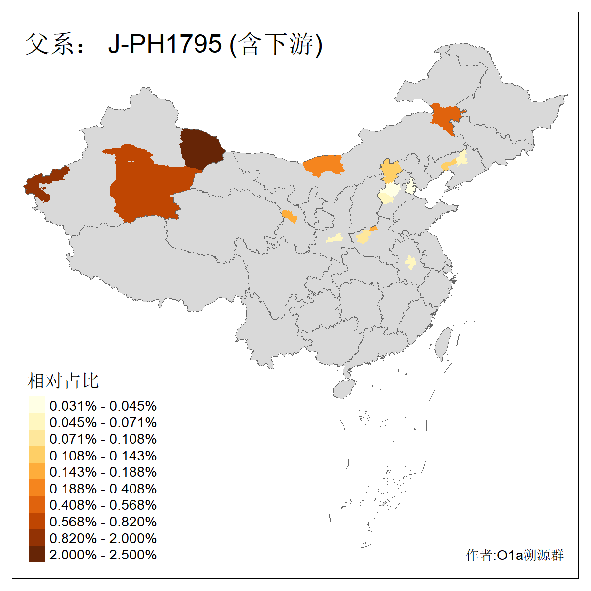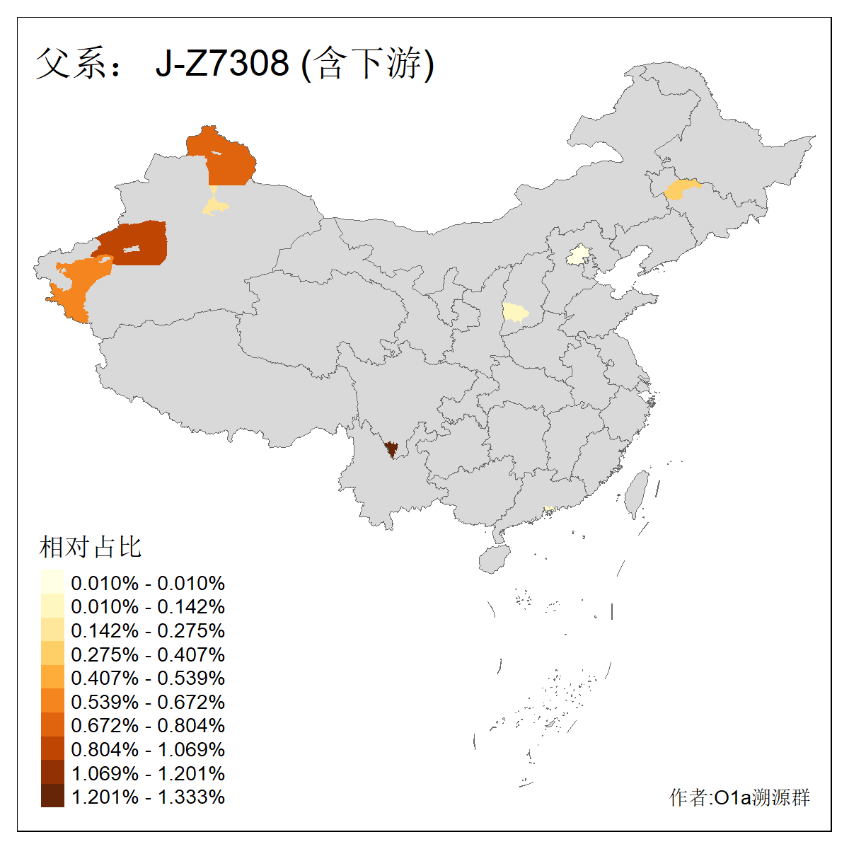 | J-M304_J-M172_J-M410_J-PF4610_J-F4326_J-PF5087_J-AM01359_J-L24 | 12880 | 0.184% | 242人(含下游) 张:25 王:18 刘:14 李:11 杨:10 程:10 马:10 陈:9 何:7 贺:5 吴:4 田:4 石:4 赵:4 ![]() | 1人(不含下游) 罗:1 ![]() |