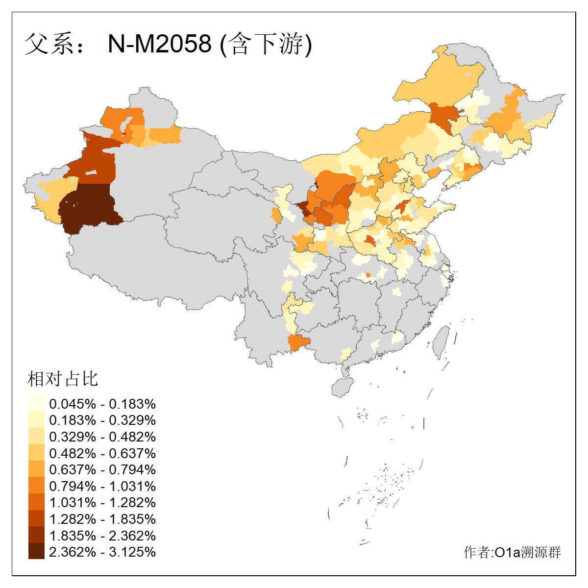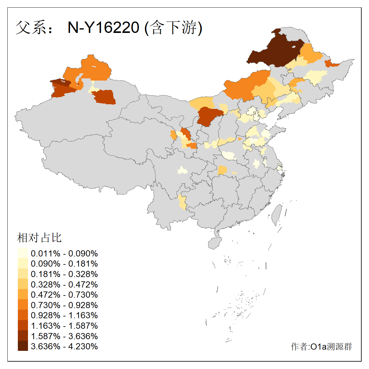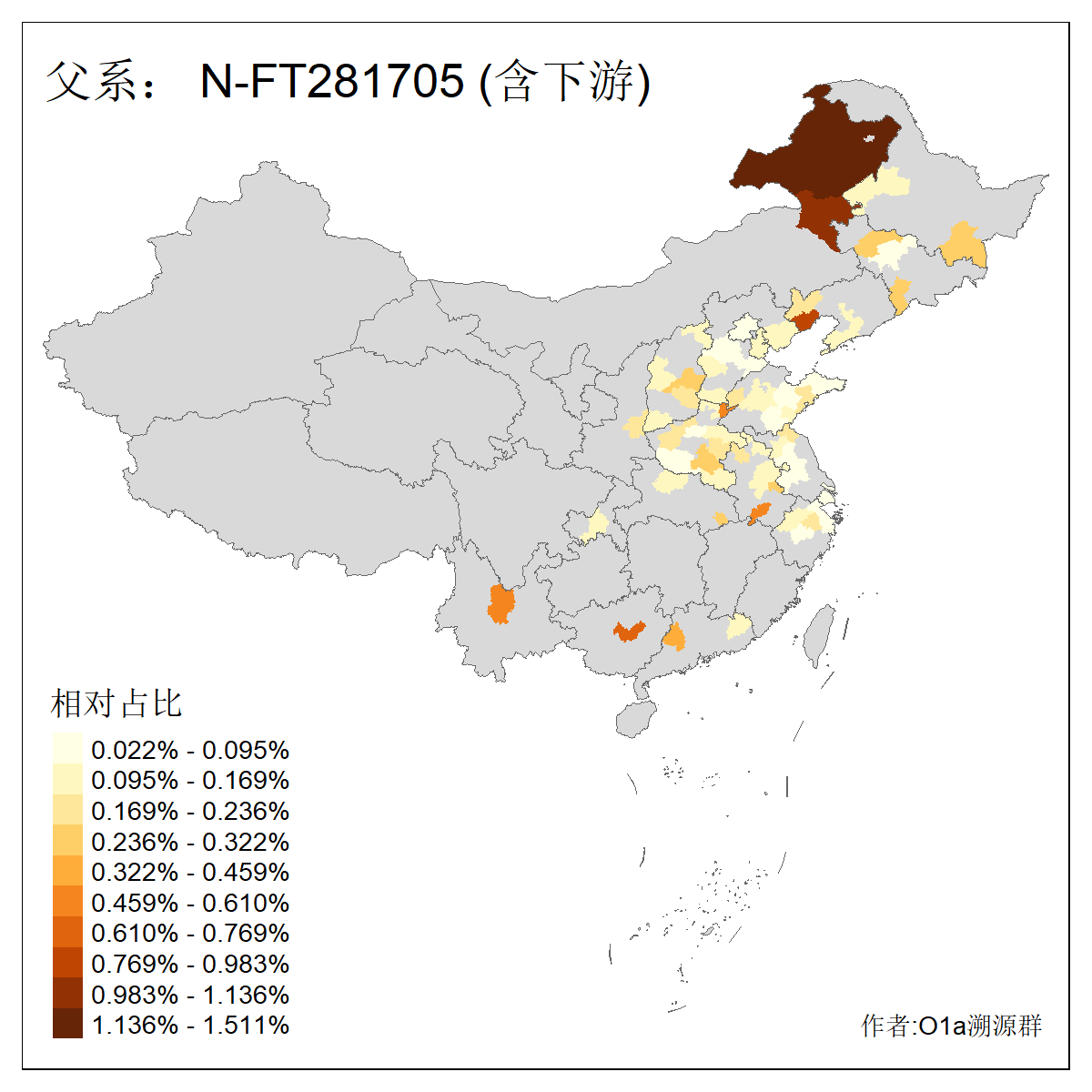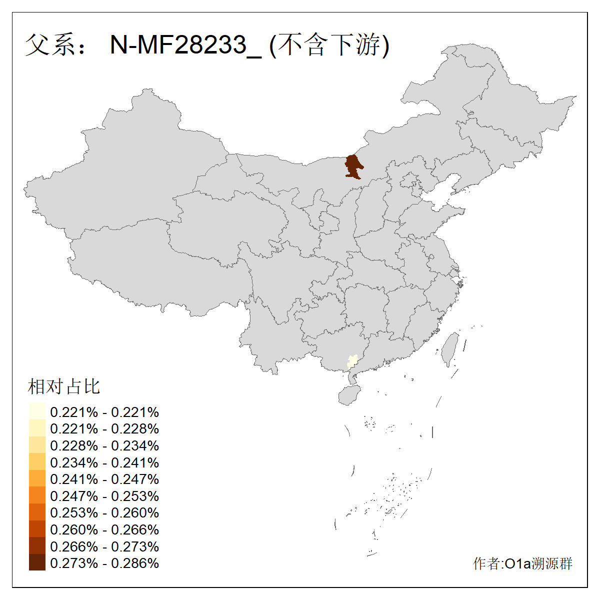| N-M231_N-CTS833_N-F963_N-F1206_N-F2584_N-M46_N-CTS6128_N-Z1957_N-M2126_N-CTS11808 | 6340 | 0.100% | 201人(含下游) 张:16 刘:13 李:9 杨:8 王:8 白:8 高:7 关:4 赵:4 韩:4 吴:3 许:3 郭:3 陈:3 ![]() | 18人(不含下游) 李:3 党:2 雷:2 何:1 吾:1 张:1 朱:1 杨:1 武:1 王:1 艾:1 薛:1 许:1 阿:1 ![]() |
