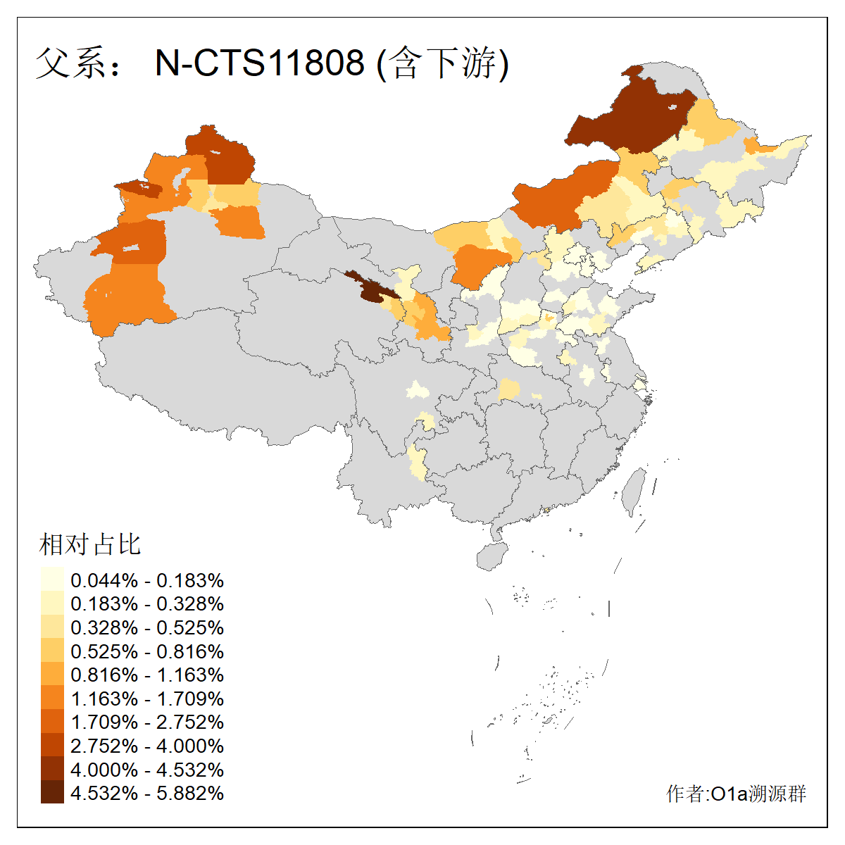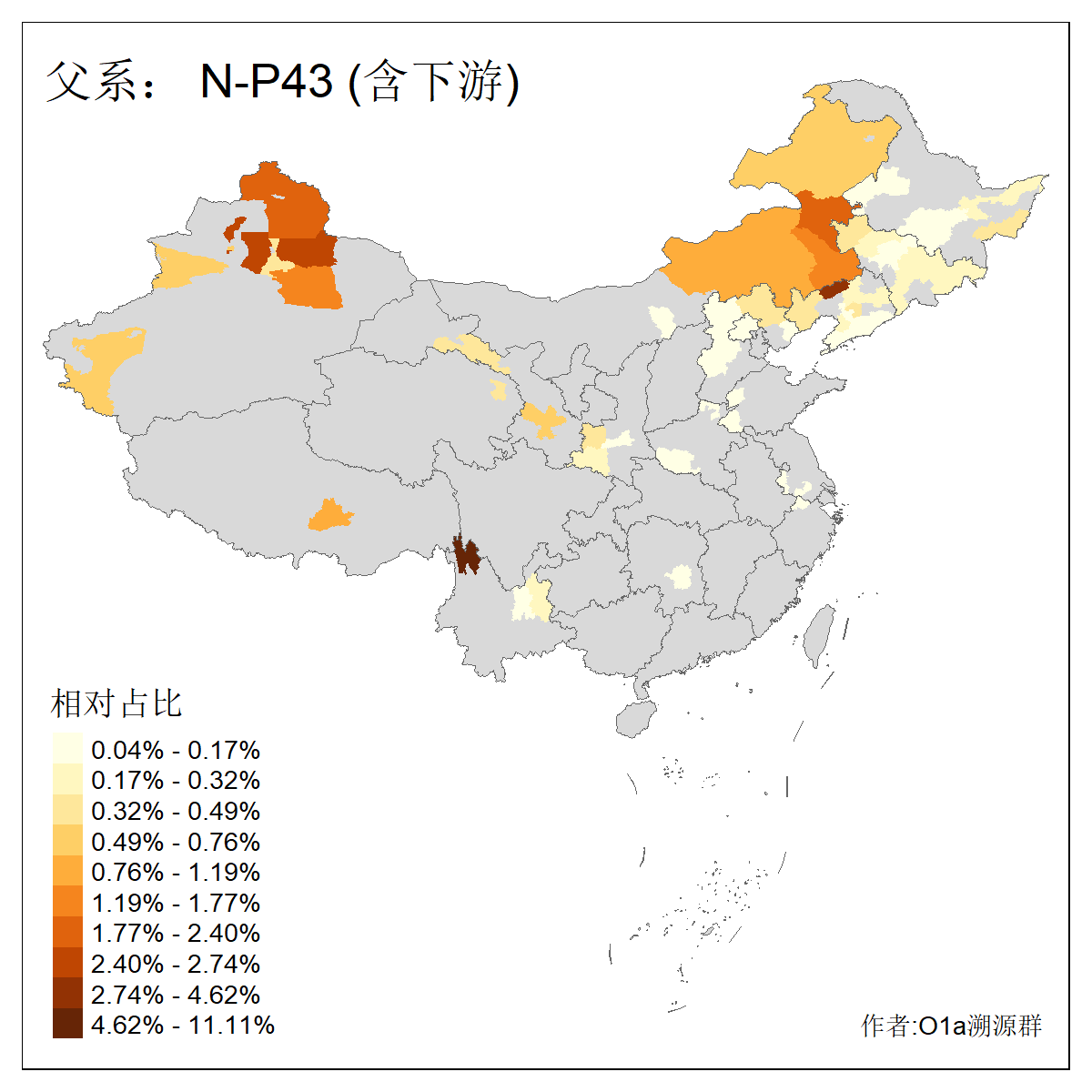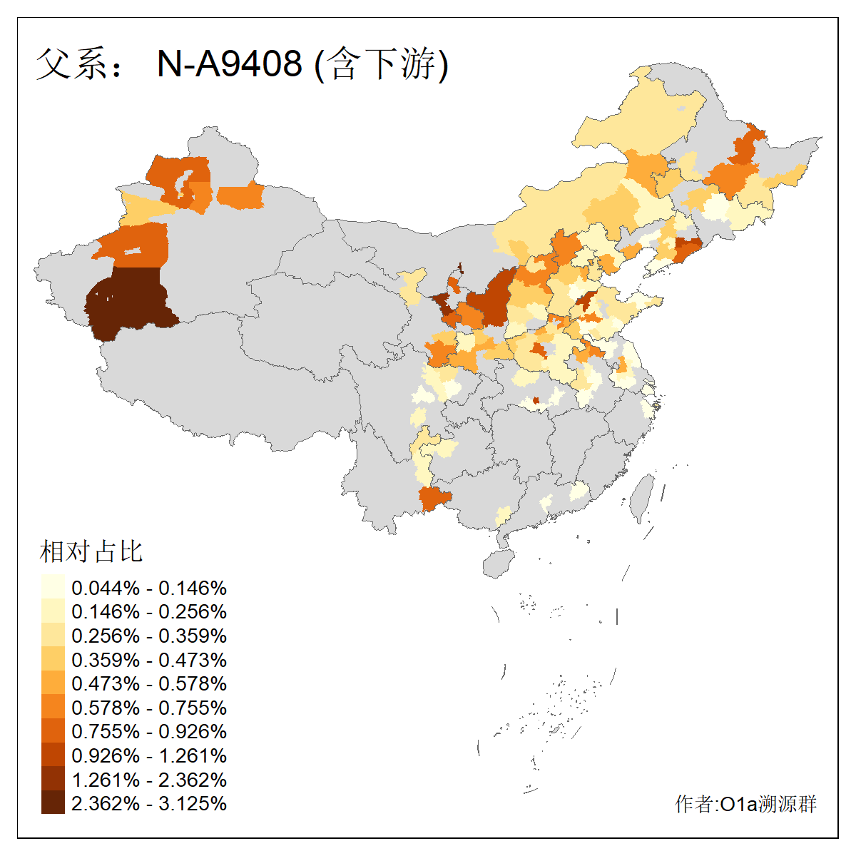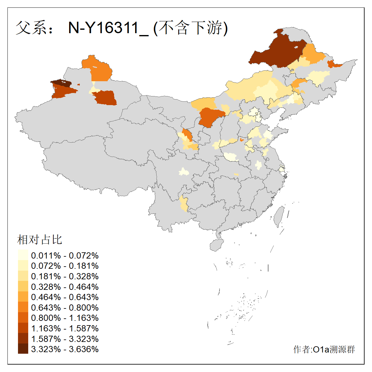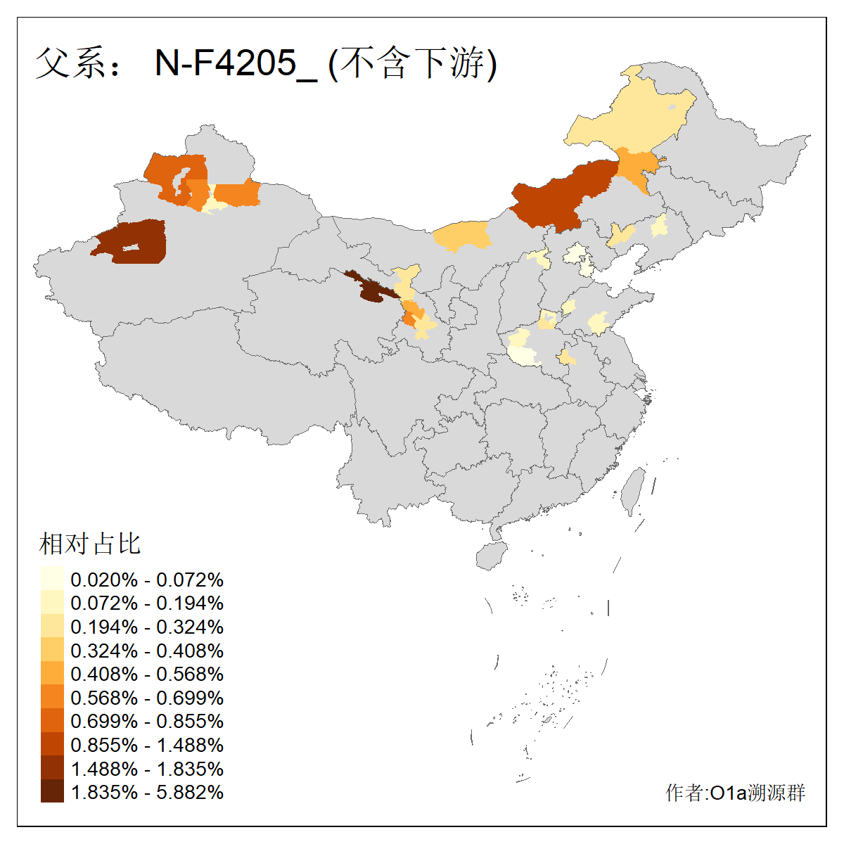 | N-M231_N-CTS833_N-F963_N-F1206_N-F2584_N-M46_N-CTS6128_N-Z1957_N-M2126_N-CTS11808 | 6340 | 0.100% | 201人(含下游) 张:16 刘:13 李:9 杨:8 王:8 白:8 高:7 关:4 赵:4 韩:4 吴:3 许:3 郭:3 陈:3 ![]() | 18人(不含下游) 李:3 党:2 雷:2 何:1 吾:1 张:1 朱:1 杨:1 武:1 王:1 艾:1 薛:1 许:1 阿:1 ![]() |