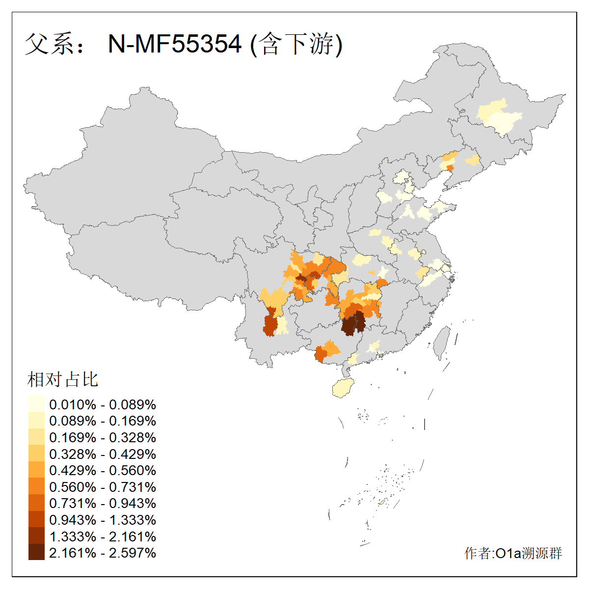| N-M231_N-CTS833_N-F963_N-F1206_N-F2584_N-M46_N-F4063_N-Y125666_N-MF16681_N-MF15811 | 5480 | 0.568% | 1295人(含下游) 王:106 张:105 李:89 黄:60 刘:55 曹:40 陈:38 薛:31 杨:30 赵:30 孙:20 马:20 周:18 郭:17 ![]() | 2人(不含下游) 王:1 马:1 ![]() |