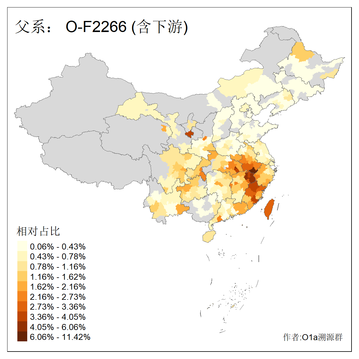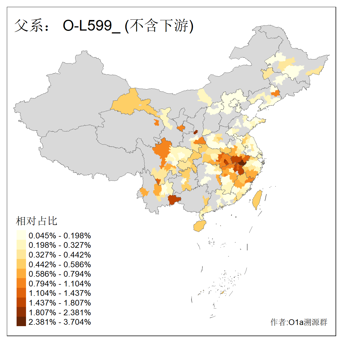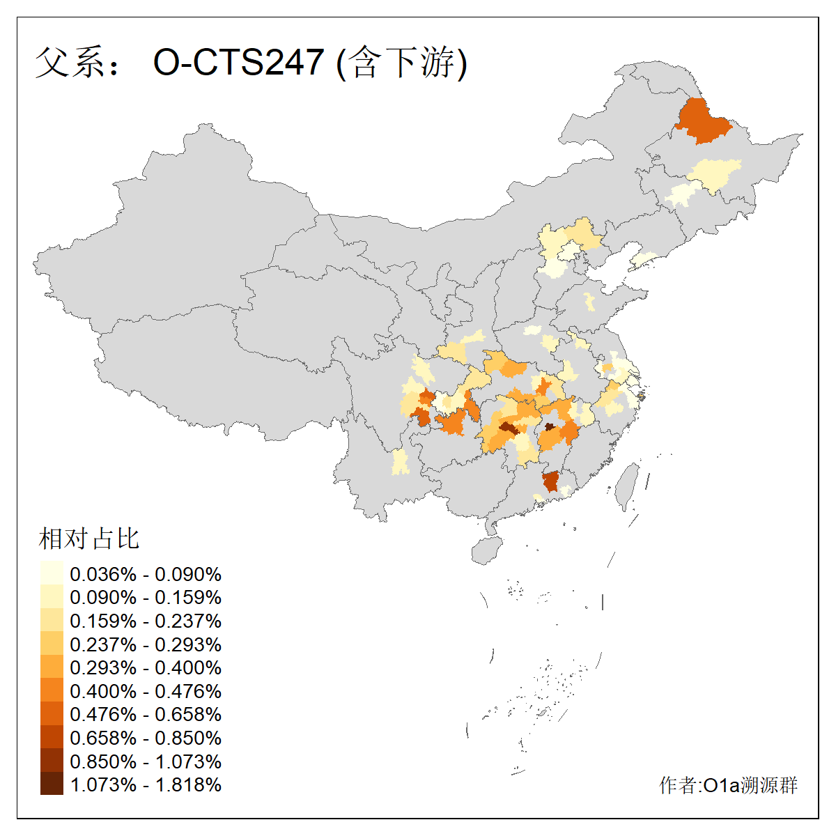 | O-F1876_O-F2159_O-F1867_O-F852_O-F2266_O-F16011_O-CTS247 | 3960 | 0.074% | 151人(含下游) 李:18 张:10 刘:8 陈:7 夏:6 谢:6 朱:5 钟:5 吴:4 徐:4 熊:4 周:3 姚:3 杨:3 ![]() | 19人(不含下游) 姚:2 李:2 沙:2 卢:1 周:1 左:1 徐:1 施:1 杨:1 柳:1 梁:1 沈:1 陆:1 陈:1 ![]() |