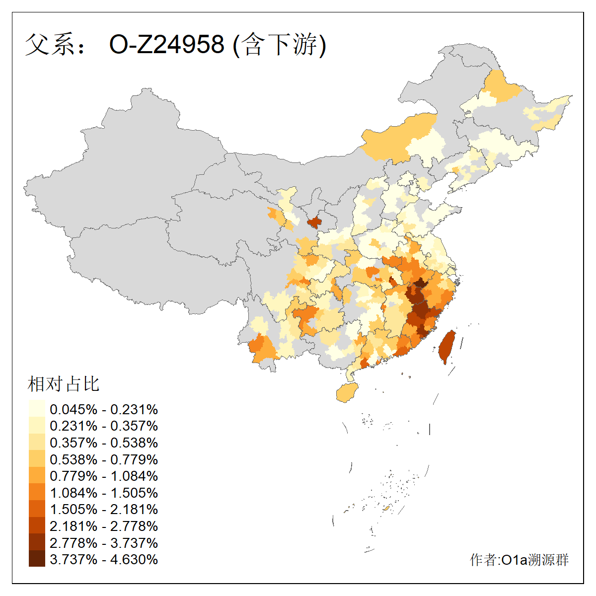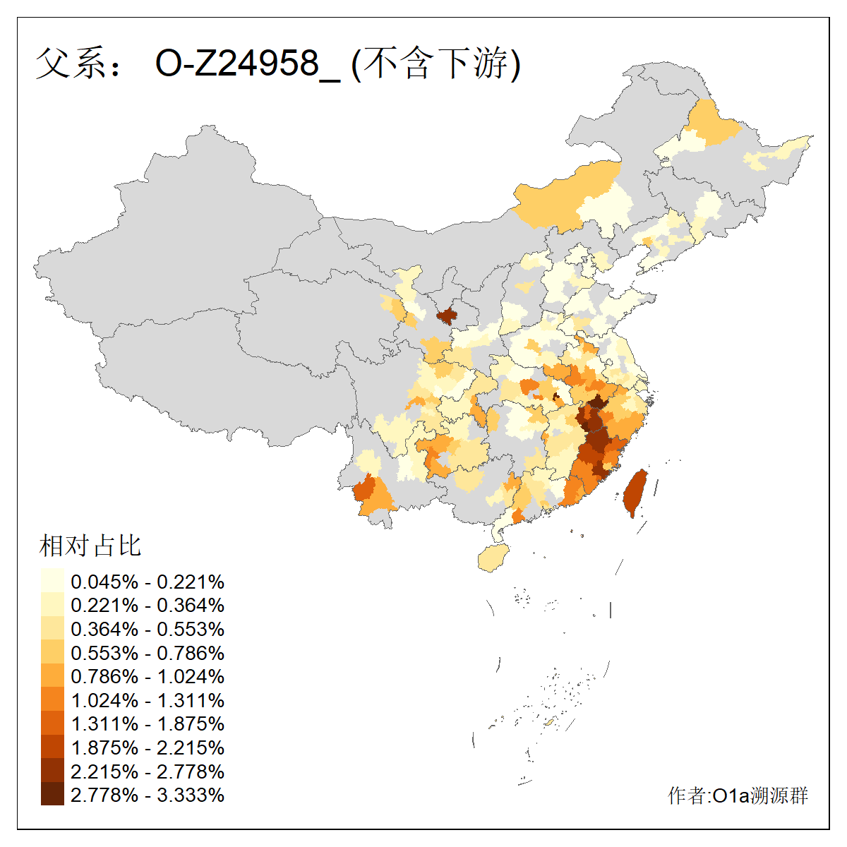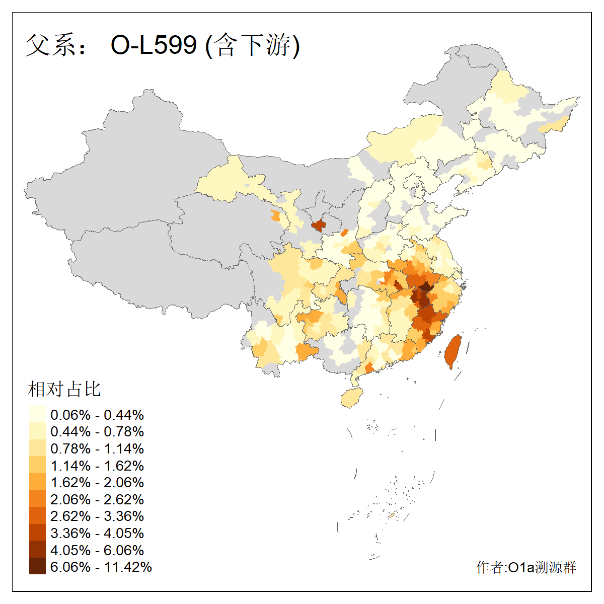 | O-F1876_O-F2159_O-F1867_O-F852_O-F2266_O-F16011_O-CTS247 | 3960 | 0.074% | 151人(含下游) 李:18 张:10 刘:8 陈:7 夏:6 谢:6 朱:5 钟:5 吴:4 徐:4 熊:4 周:3 姚:3 杨:3 ![]() | 19人(不含下游) 姚:2 李:2 沙:2 卢:1 周:1 左:1 徐:1 施:1 杨:1 柳:1 梁:1 沈:1 陆:1 陈:1 ![]() |
